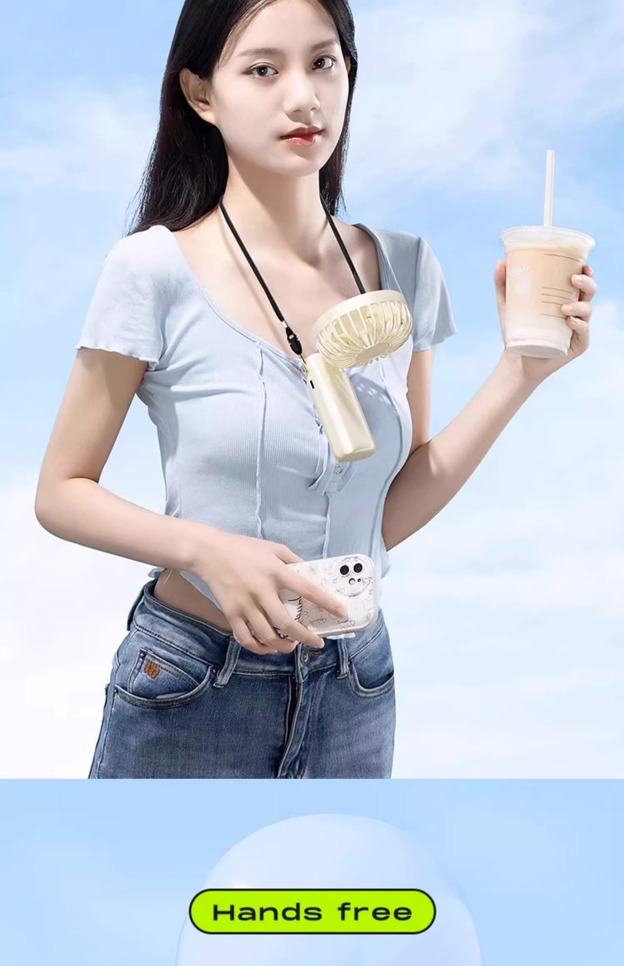 • [귀로 접힌 상태] 하늘색❄️시원한 전신 [20,000M-5단계 조절 가능]
