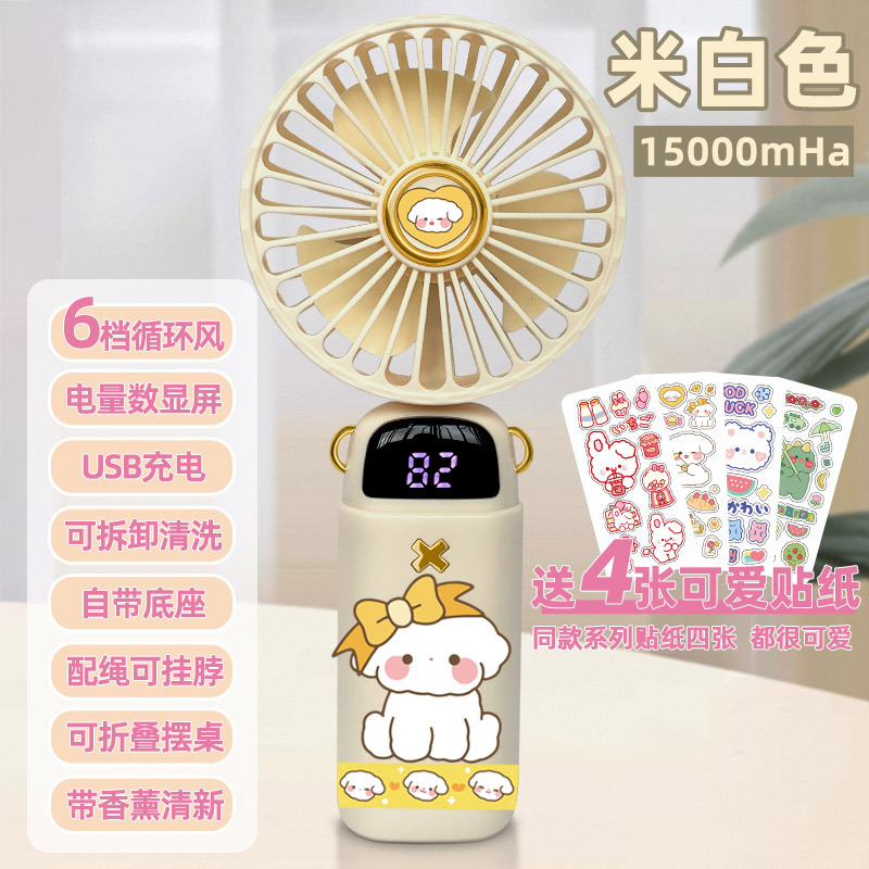 • [스티커 4개 무료] 라이트 베이지 화이트 도그 - 5단계 순환 바람 - [20,000mHA/데스크탑 사용 가능/