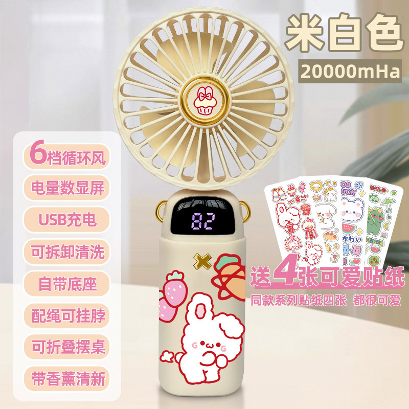 • [스티커 4개 무료] 라이트 베이지 화이트 래빗 - 5단계 순환 바람 - [20,000mHA/데스크탑 사용 가능/