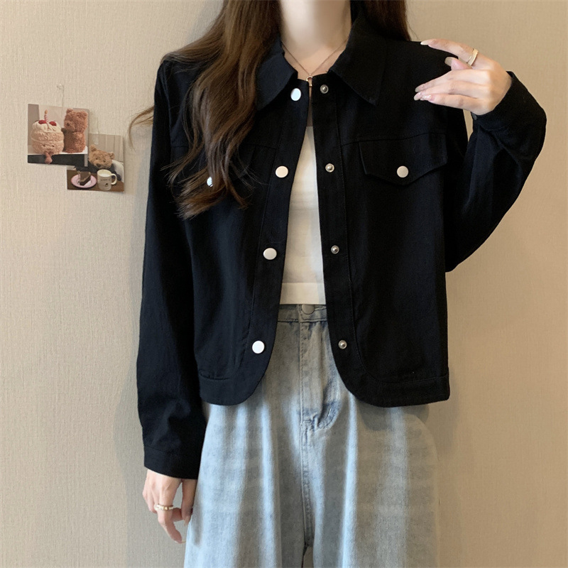 플러스 사이즈 블랙 짧은 작업 코트 여성의 봄 2024 새로운 통통녀 넓은 느슨한 어깨 미국 재킷 탑