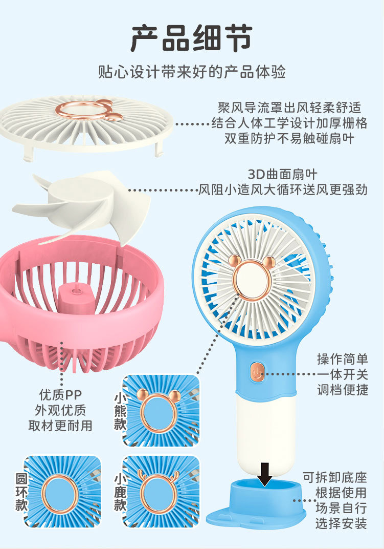 만화 미니 귀여운 동물 팬 휴대용 2 기어 USB 충전 라이트 작은 팬 어린이 학생 선물스토어 가기