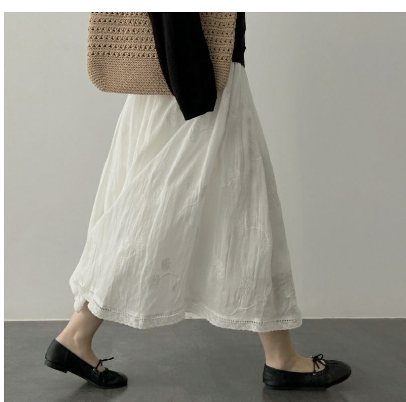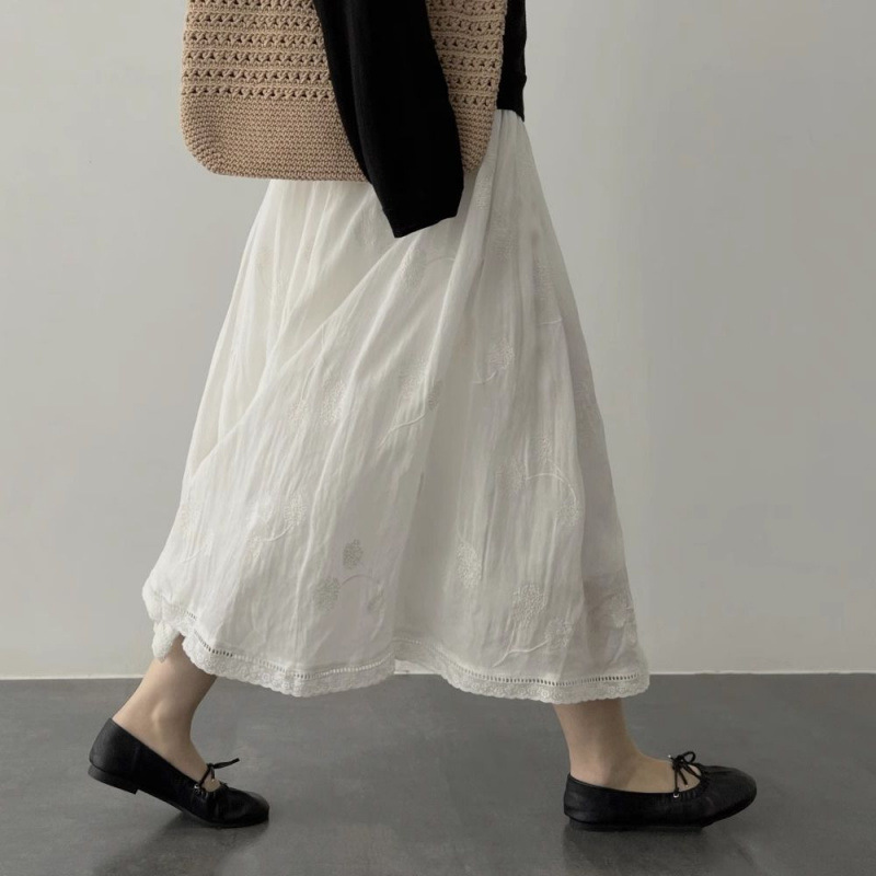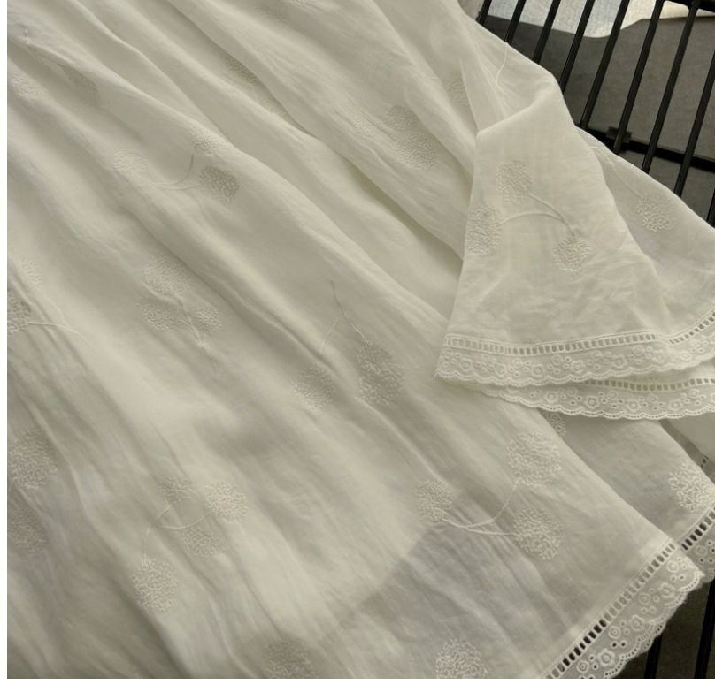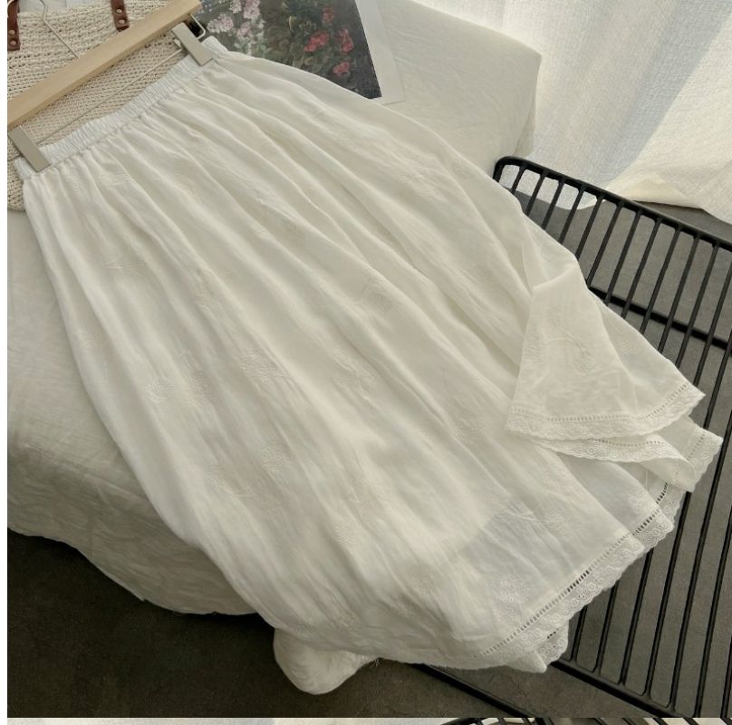 티 브레이크 프렌치 자수 화이트 코튼 및 리넨 A-라인 스커트 여성 중장 엉덩이 커버 슬리밍 플리밍 캐주얼 우산 스커트 여름스토어 가기