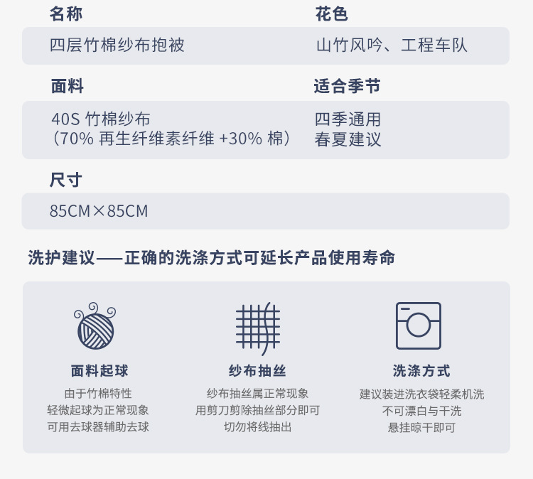 • 4겹 거즈 이불 - 옌화파 [권장 온도 24℃위에]