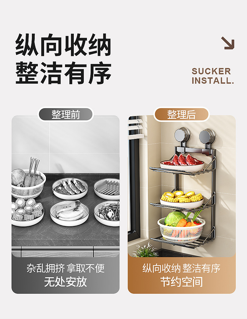석션 컵 야채 저장 랙 주방 벽 매달려 다기능 접시 접이식 다층 과일 및 야채 유물 옷걸이스토어 가기