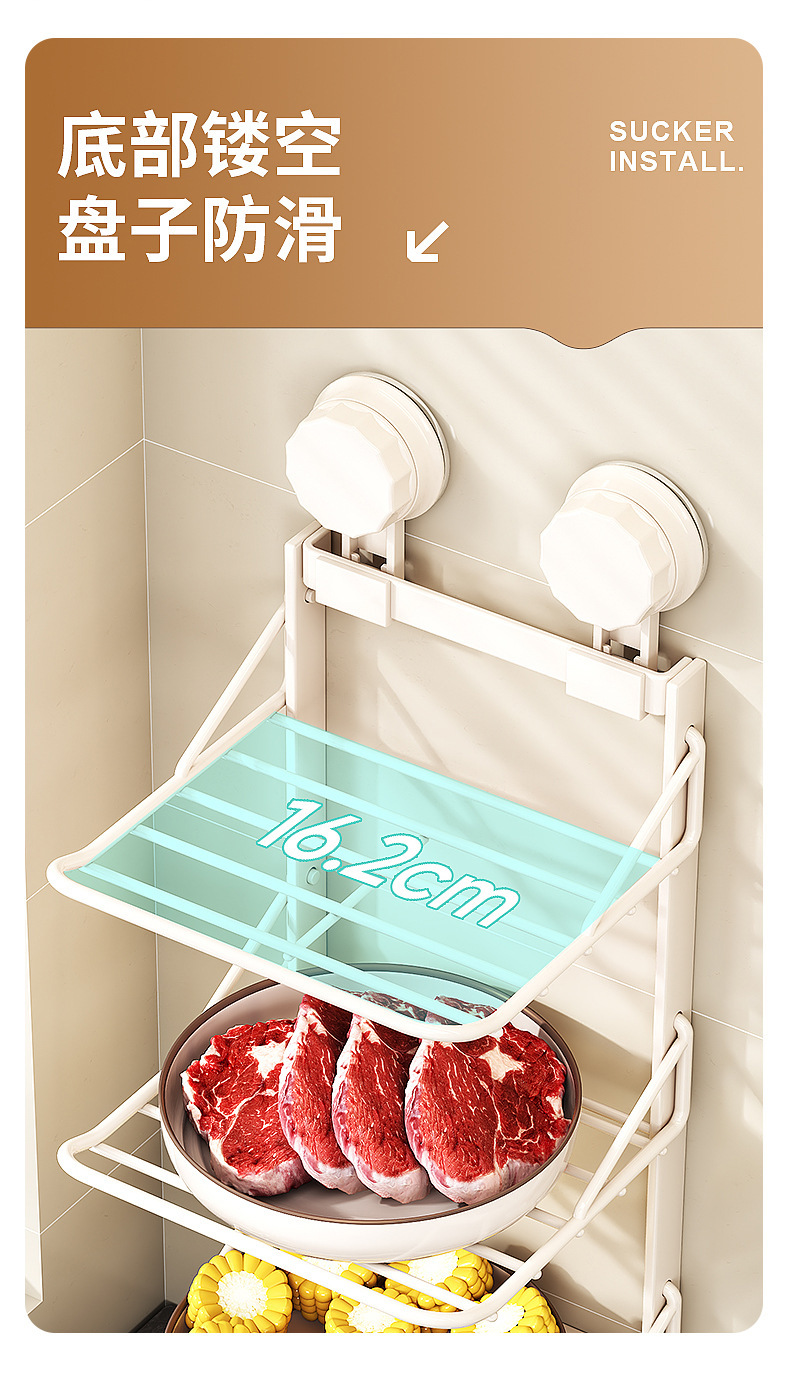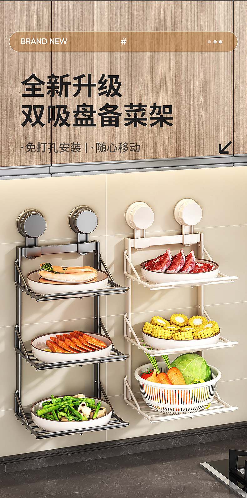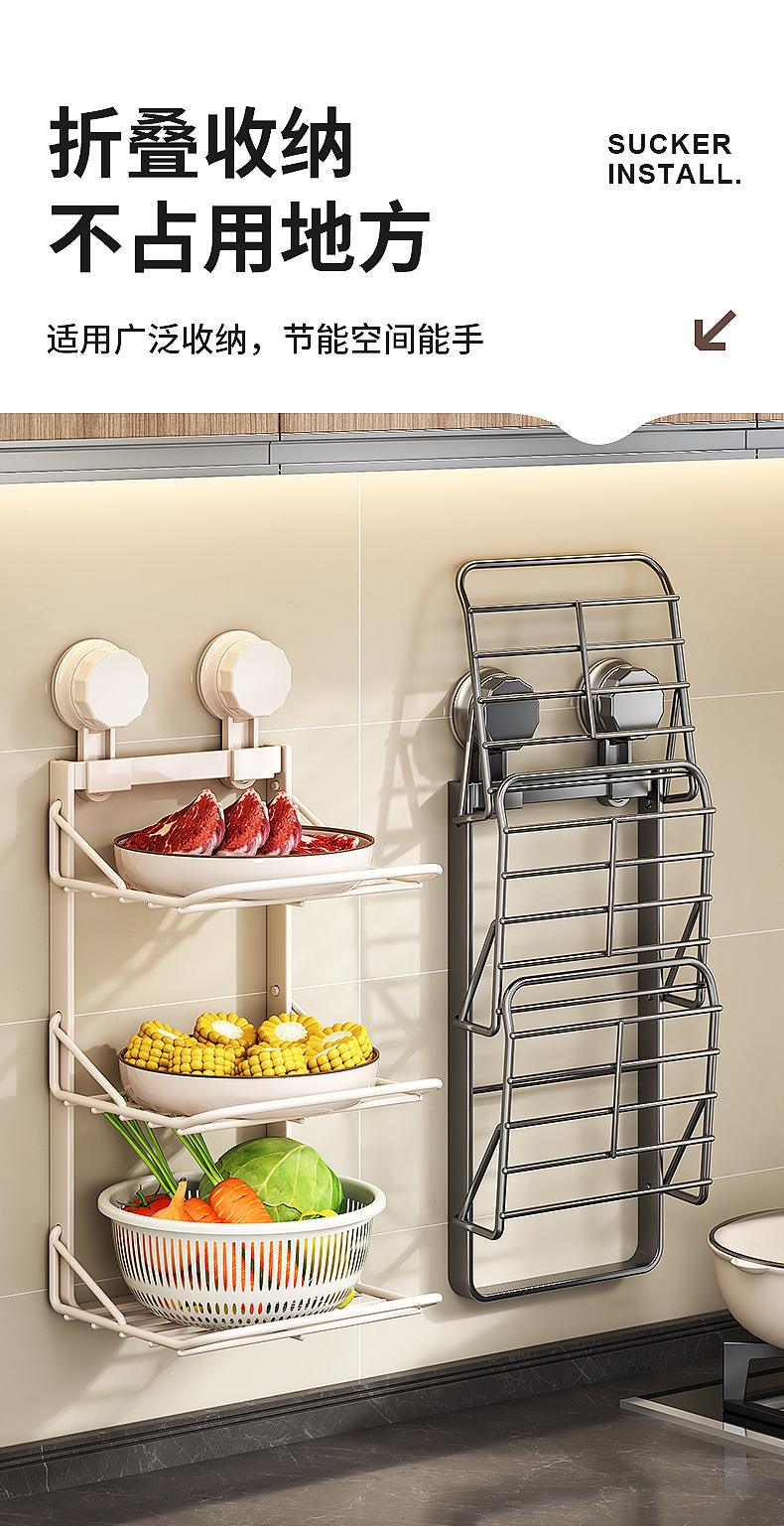석션 컵 야채 저장 랙 주방 벽 매달려 다기능 접시 접이식 다층 과일 및 야채 유물 옷걸이