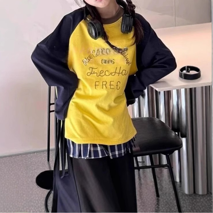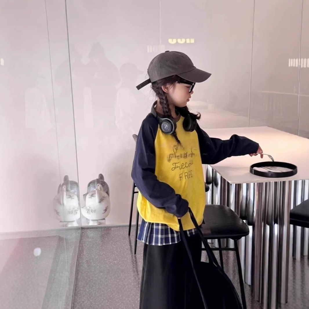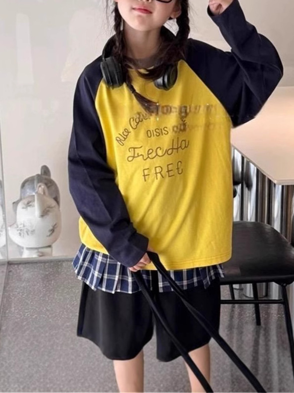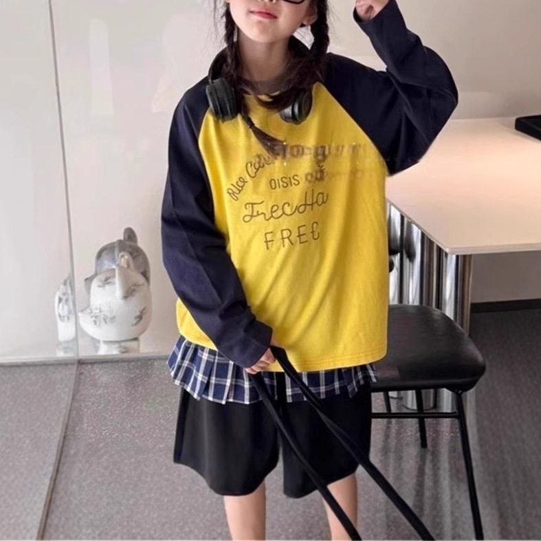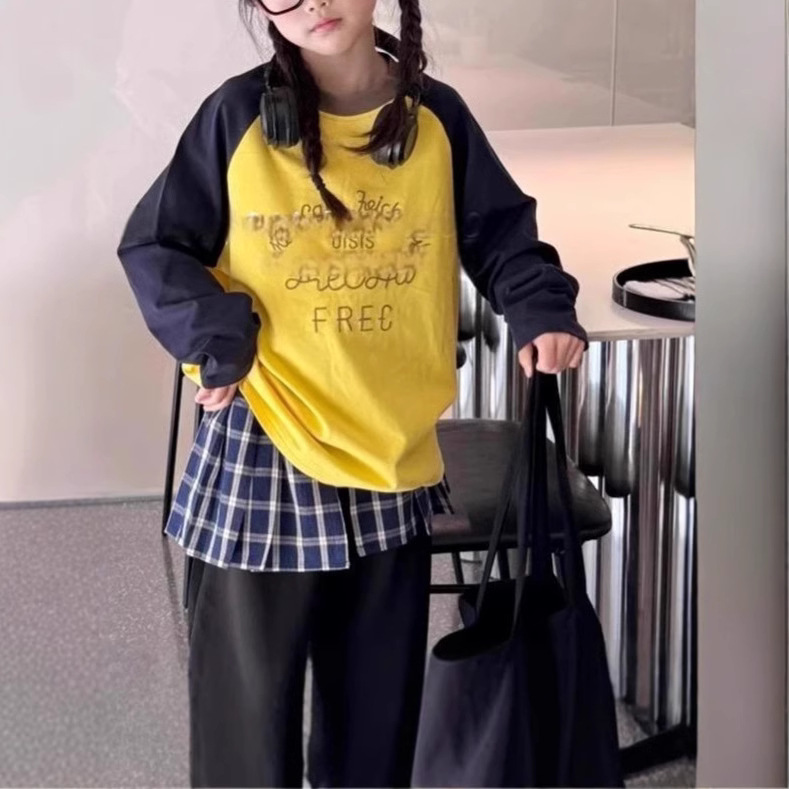 여자 티셔츠 긴 소매 봄과 가을 2025 새로운 스타일 여자 서양식 탑 셔츠 어린이 봄 착용 한국 스타일 착용스토어 가기