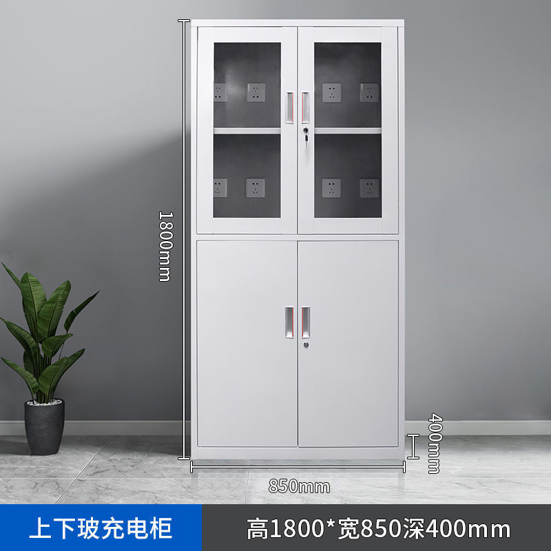 • 유리 상부 및 하부 철 충전 캐비닛(회색 및 흰색)