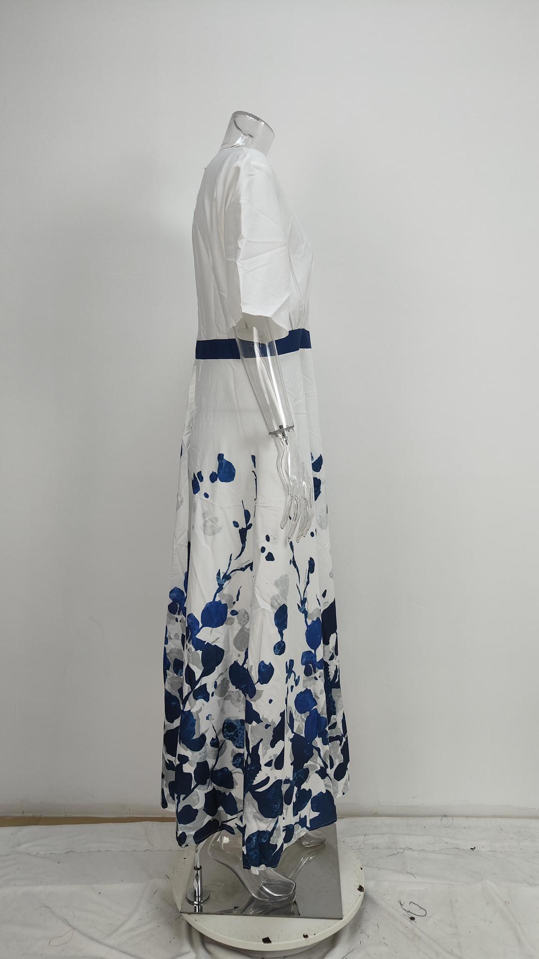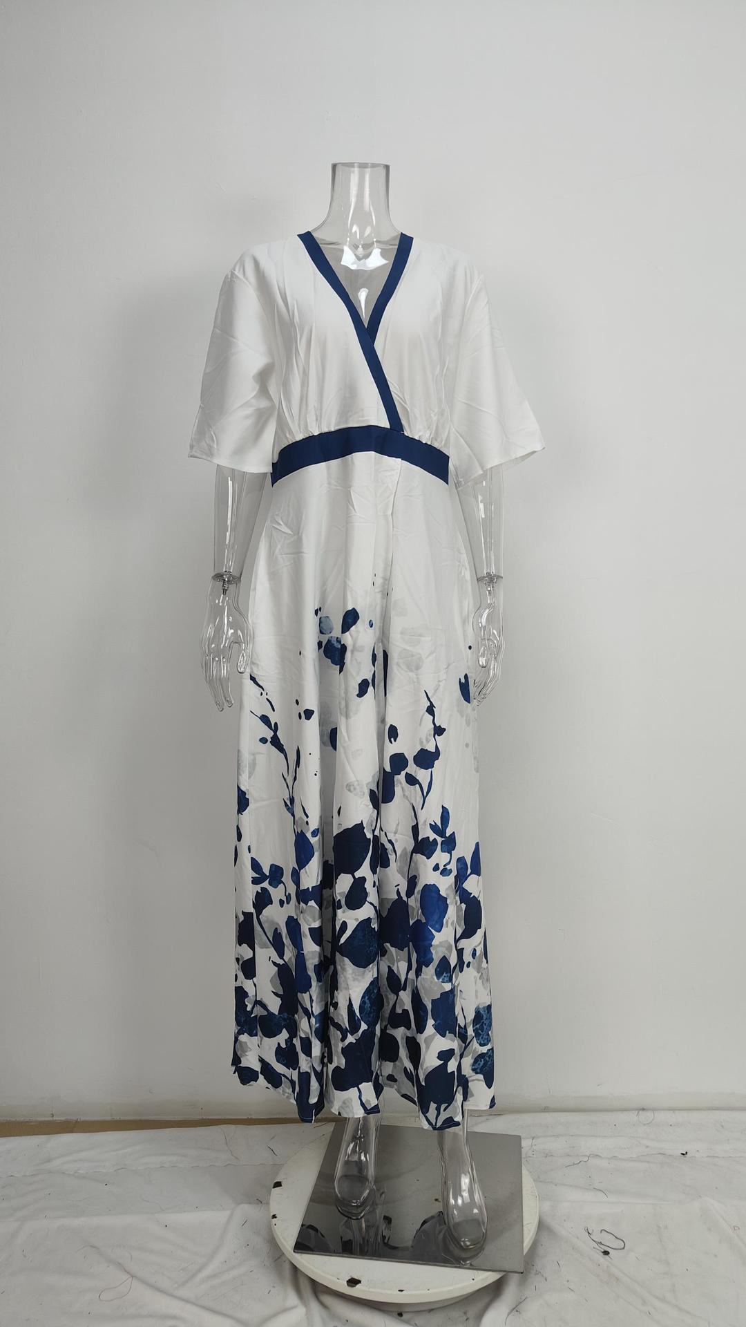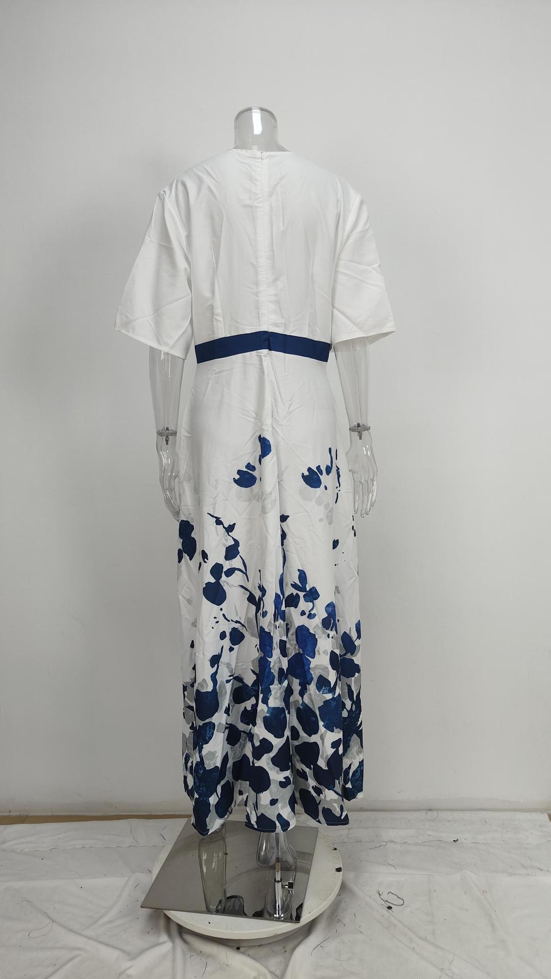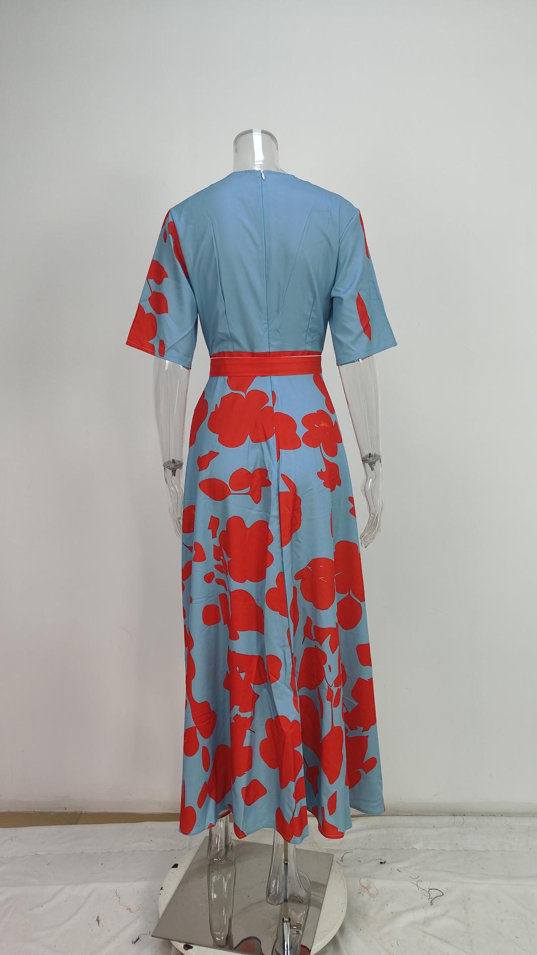 2025 아마존 유럽과 미국 여성의 새로운 패션 우아한 우아한 V-Neck 인쇄 레이스 업 대형 스커트 원피스스토어 가기