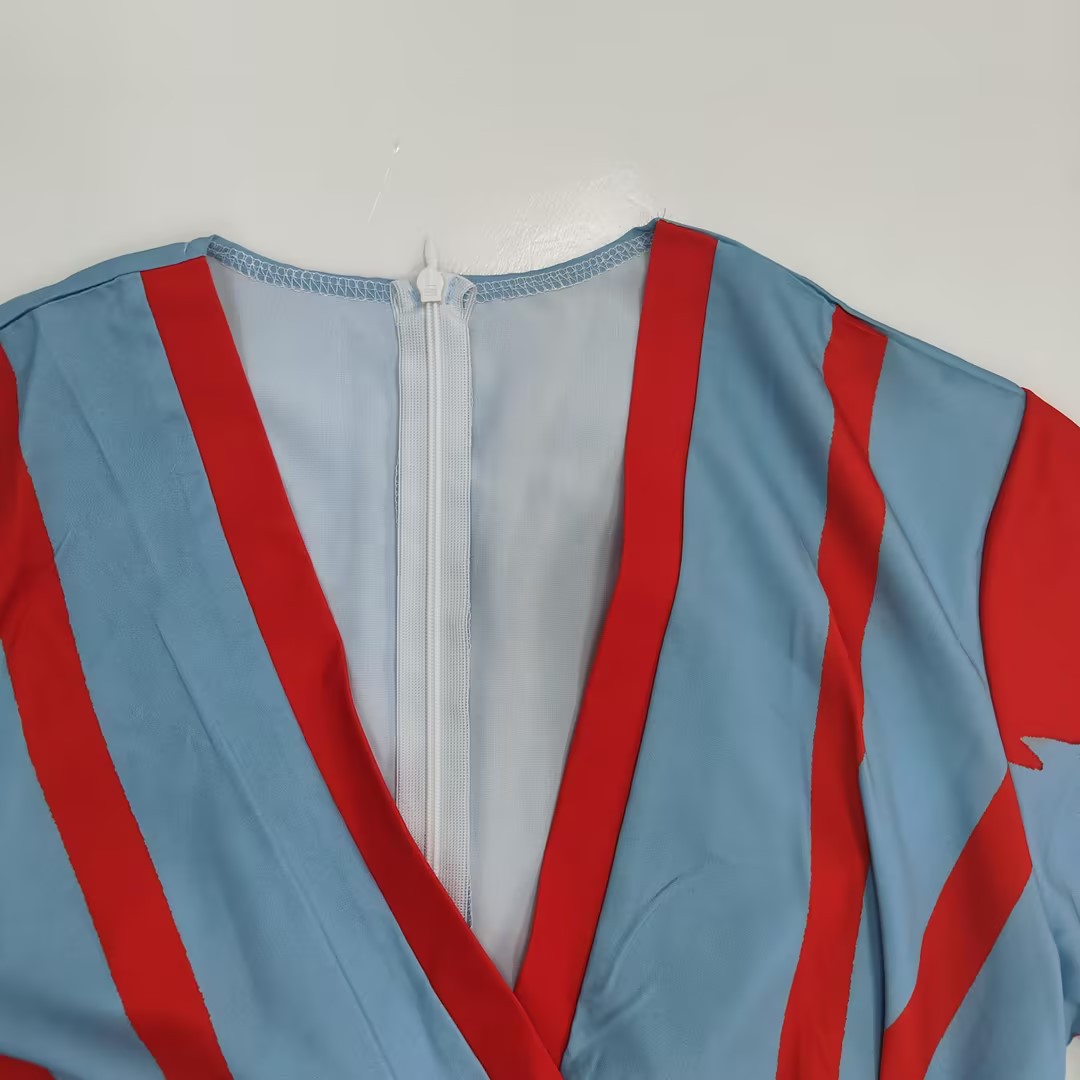 2025 아마존 유럽과 미국 여성의 새로운 패션 우아한 우아한 V-Neck 인쇄 레이스 업 대형 스커트 원피스