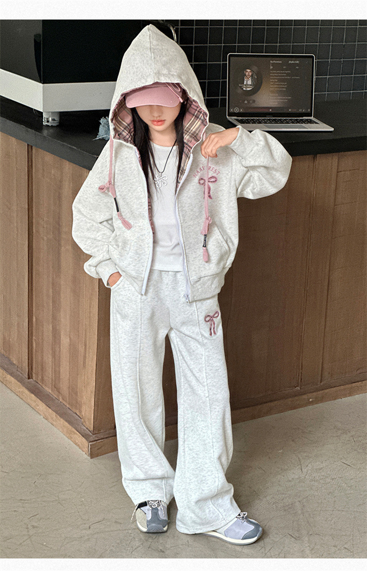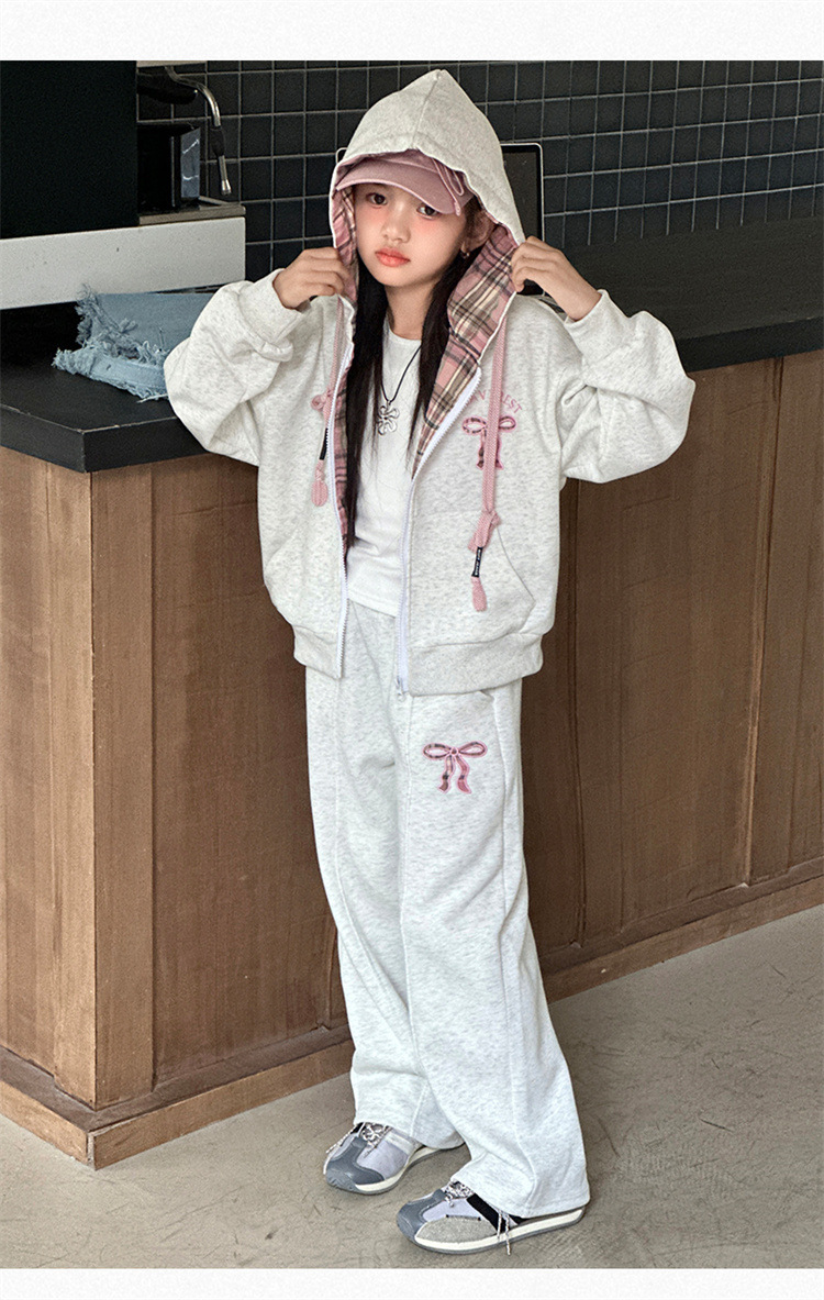 소녀 세트 봄 유행 세트 어린이 큰 소녀의 활 후드 재킷 캐주얼 봄과 가을 투피스 세트스토어 가기