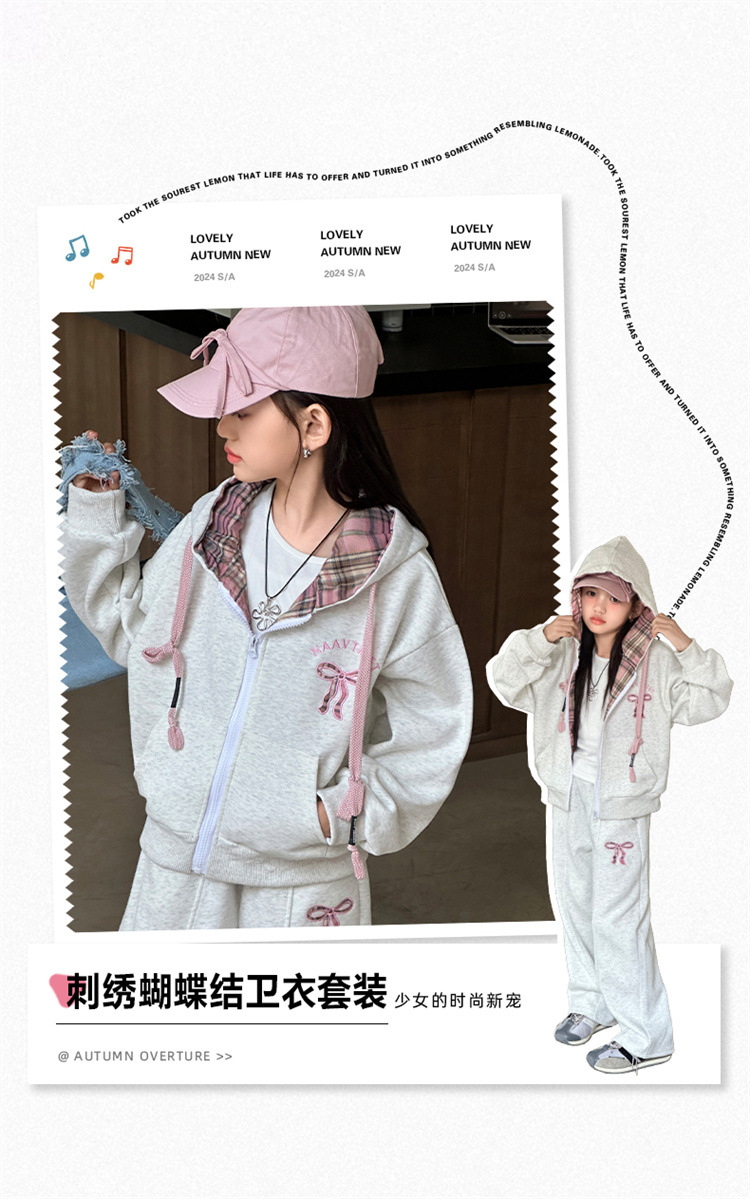 소녀 세트 봄 유행 세트 어린이 큰 소녀의 활 후드 재킷 캐주얼 봄과 가을 투피스 세트