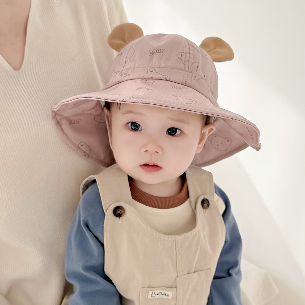 카투 곰 귀 분지 모자 어린이 어부 모자 봄과 가을 귀여운 아기 차양 분지 캡 자외선 차단제 외국 스타일 모자스토어 가기