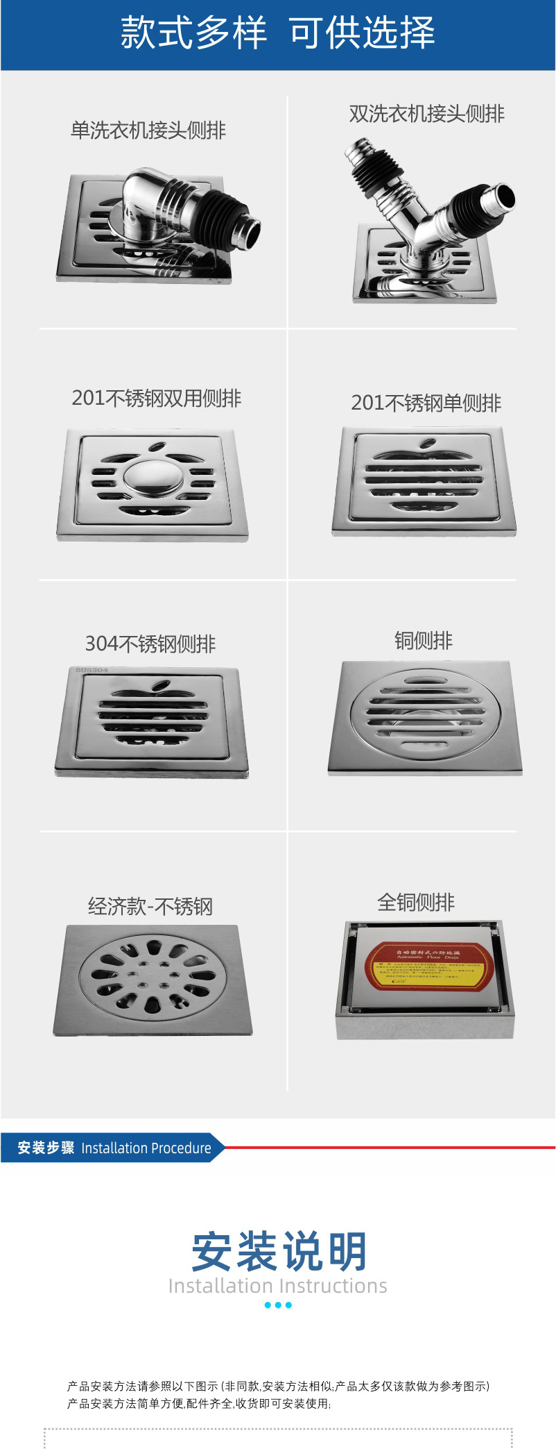 냄새 방지 바닥 배수 304 스테인레스 스틸 세탁기 모든 구리 사이드 행 욕실 발코니 보편적 인 오버 플로우 방지
