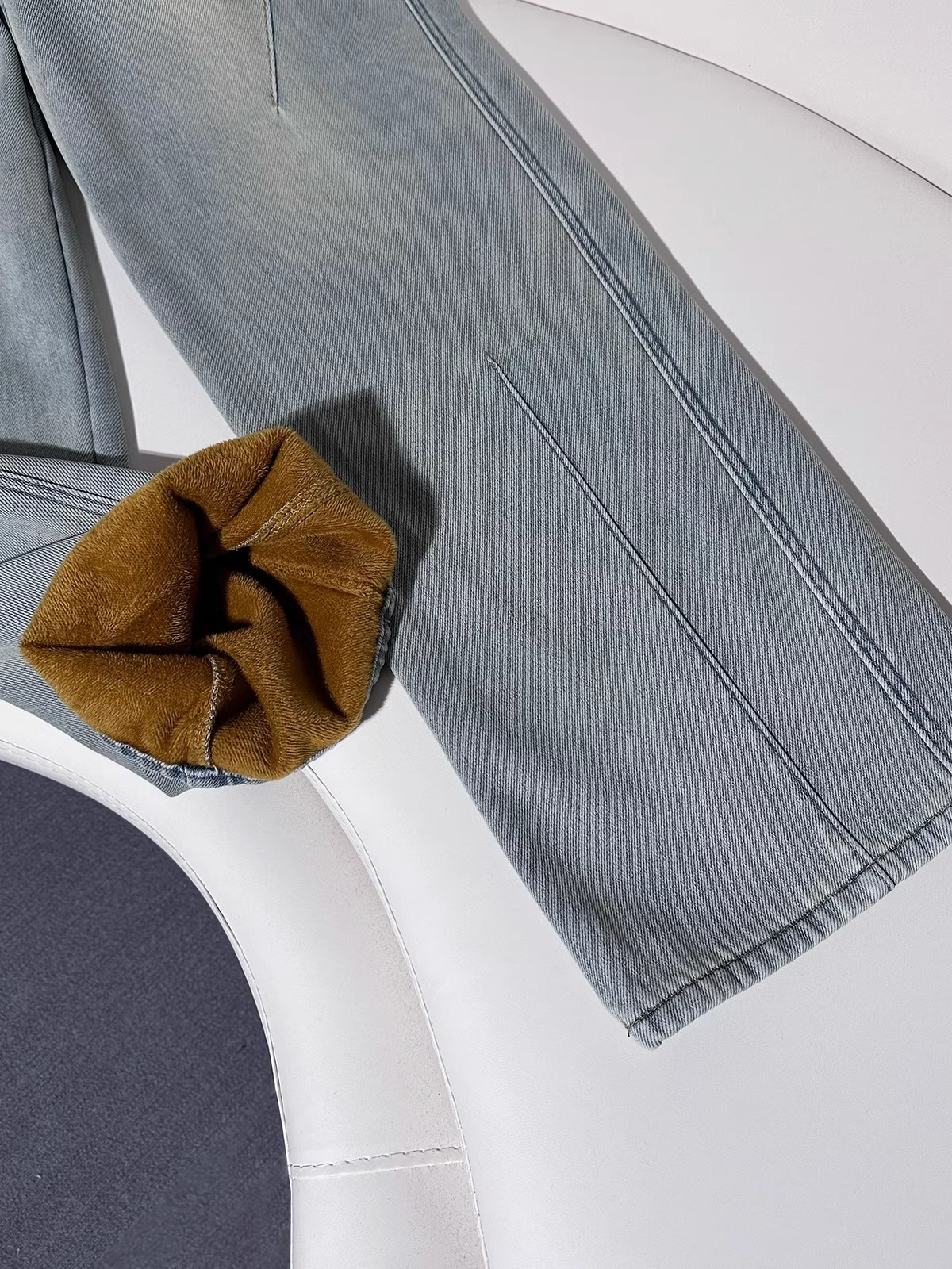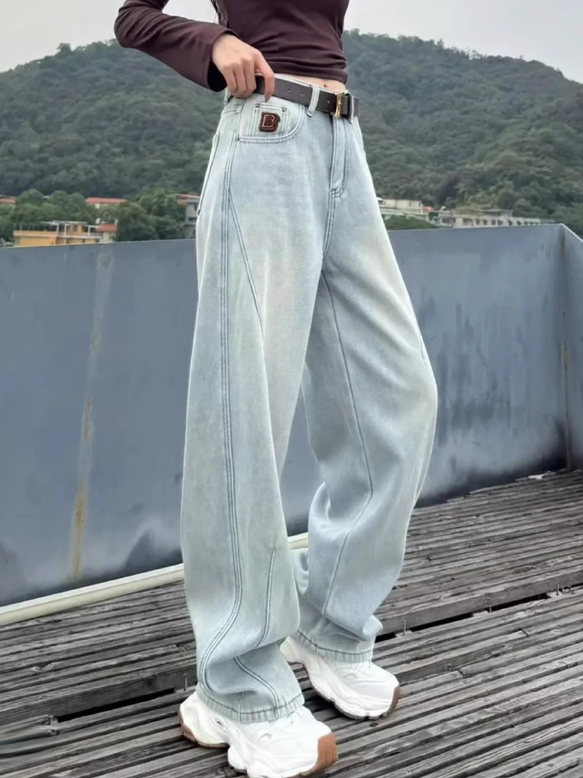 플러스 사이즈 라이트 블루 청바지 여자 2025 년 겨울 새 통통녀 느슨한 세척 캐주얼 와이드 다리 바지 슬리밍 걸레 바지스토어 가기