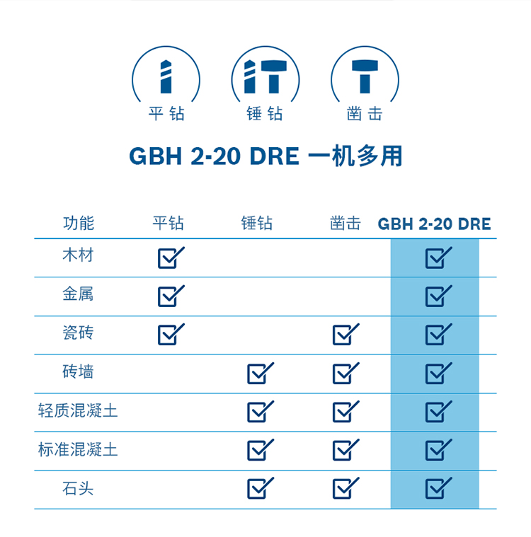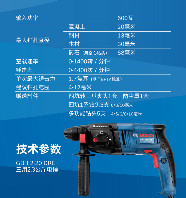 전기 해머 전기 픽 충격 드릴 가정용 다기능 산업용 고출력 콘크리트 공구 GBH2-20DRE