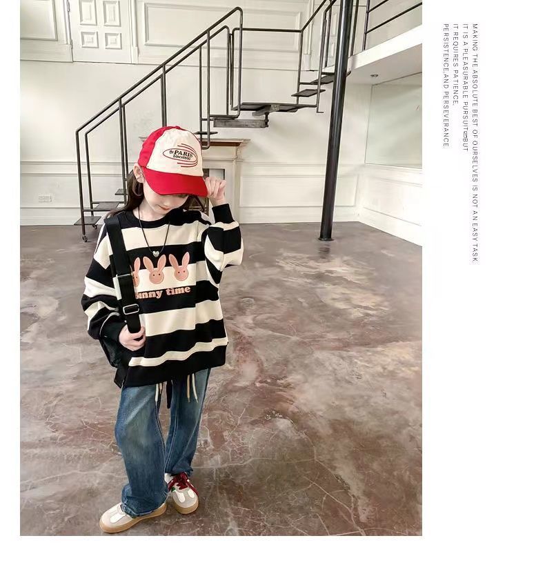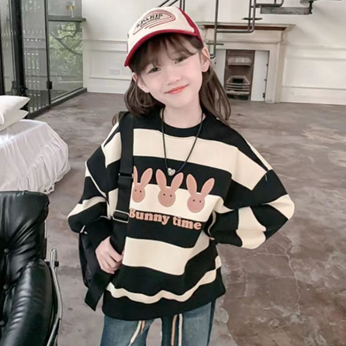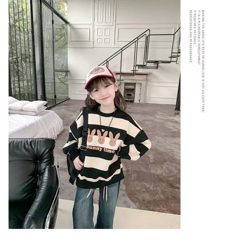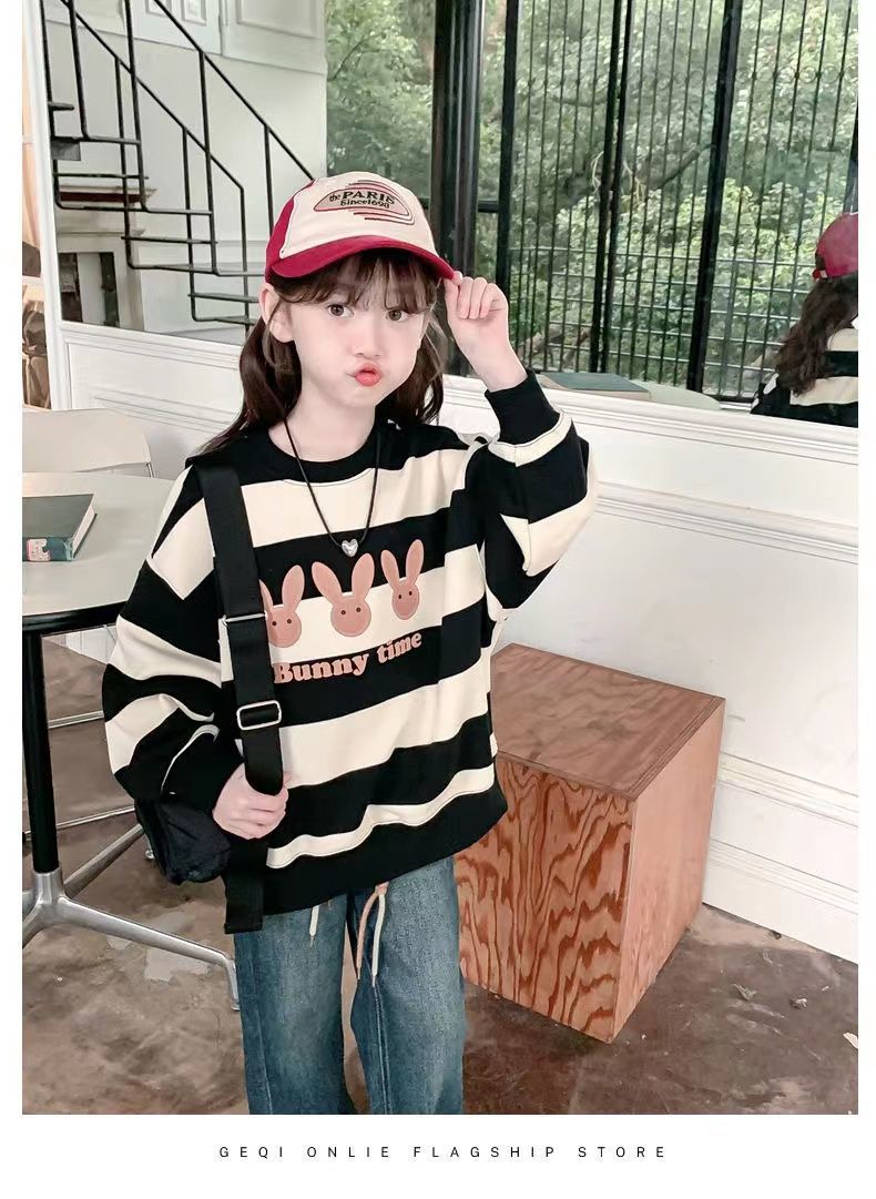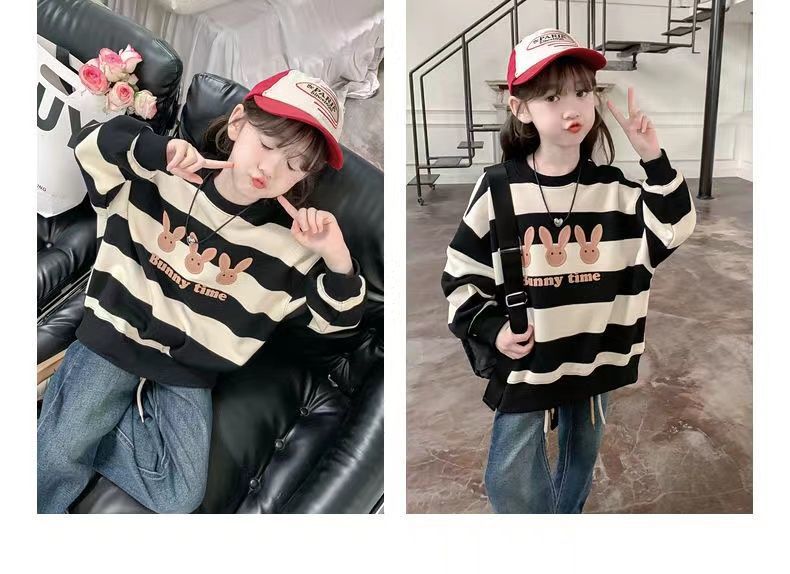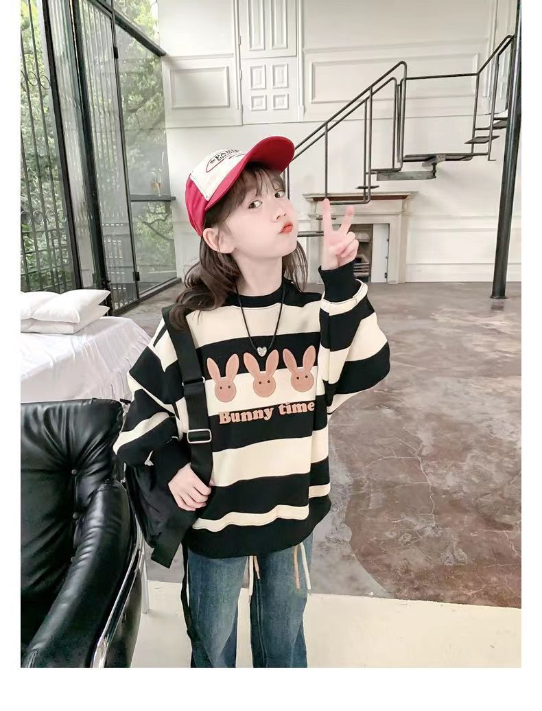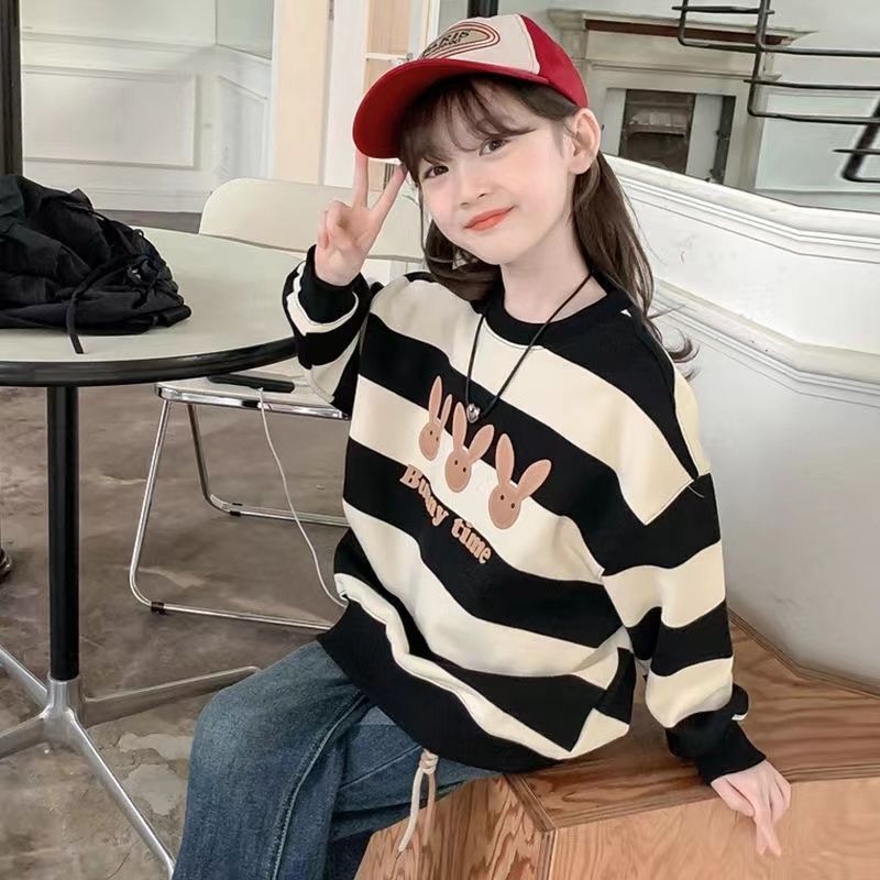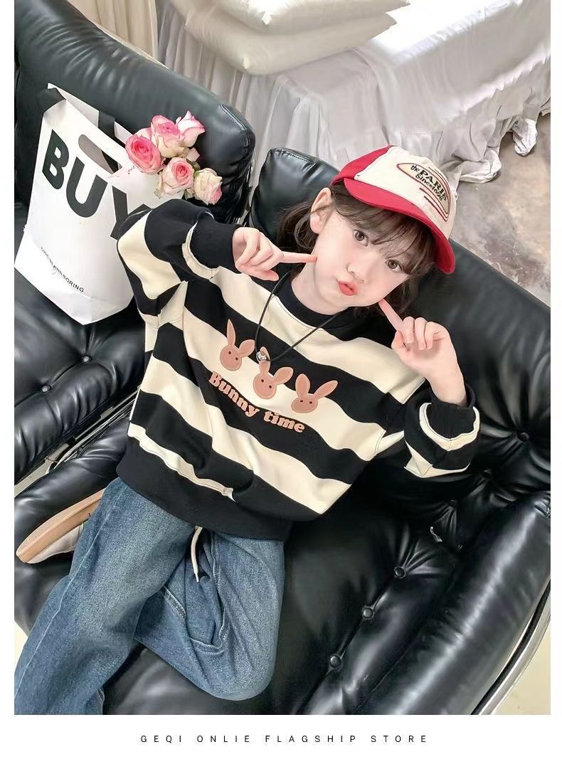 여자 땀 기모 2025 새로운 서양식 어린이 겨울 옷 어린 소녀 겨울 루스 탑