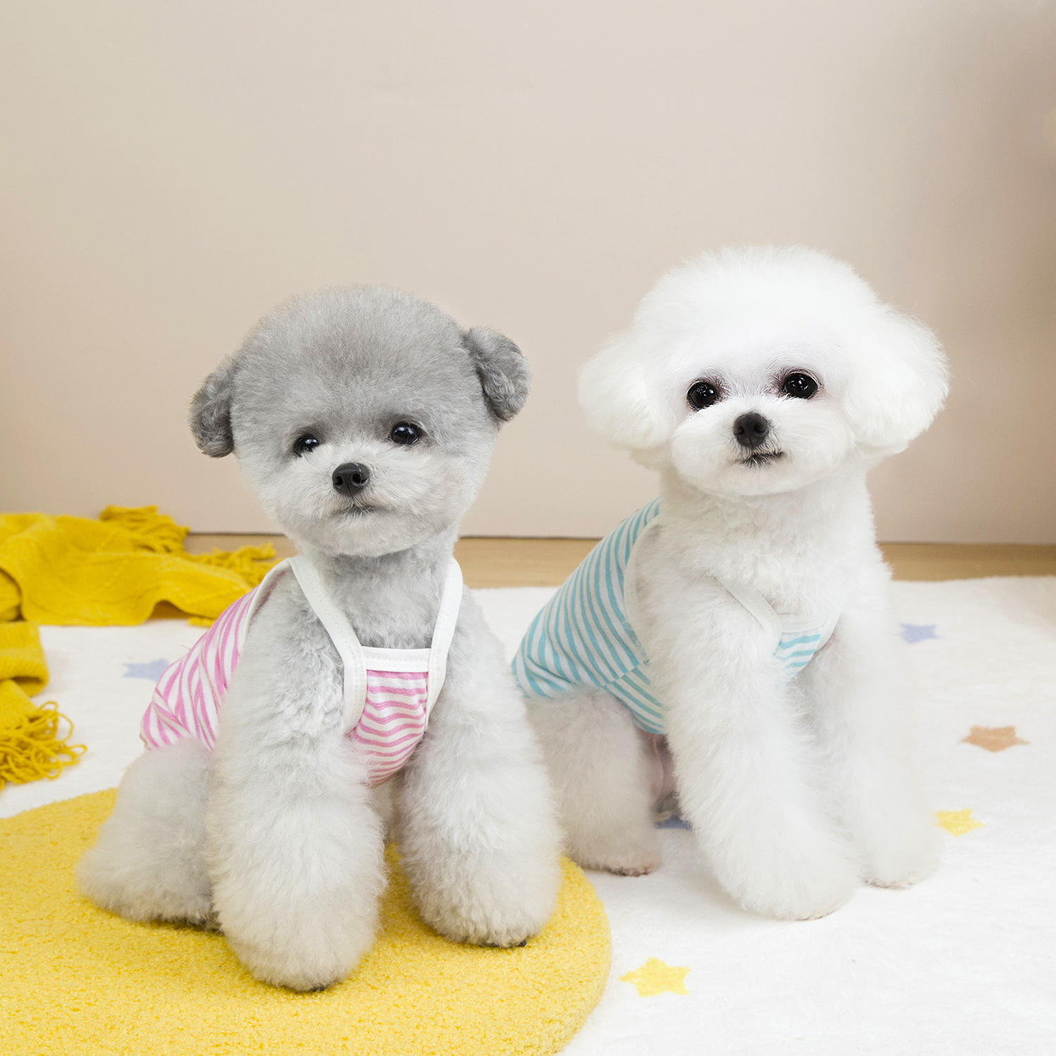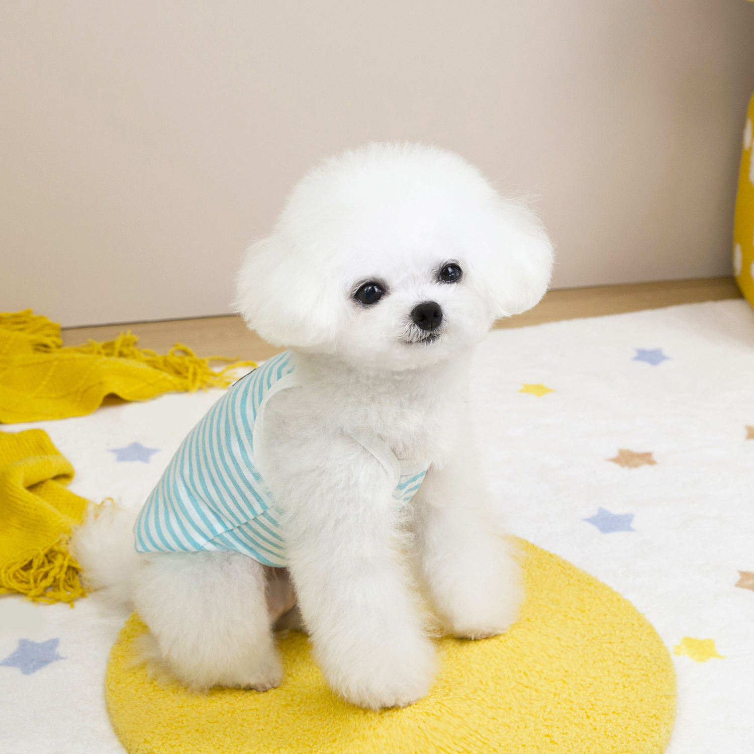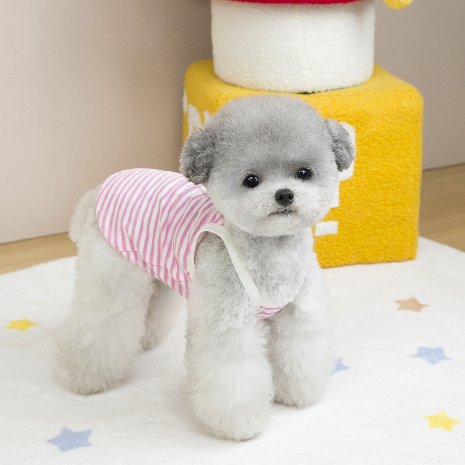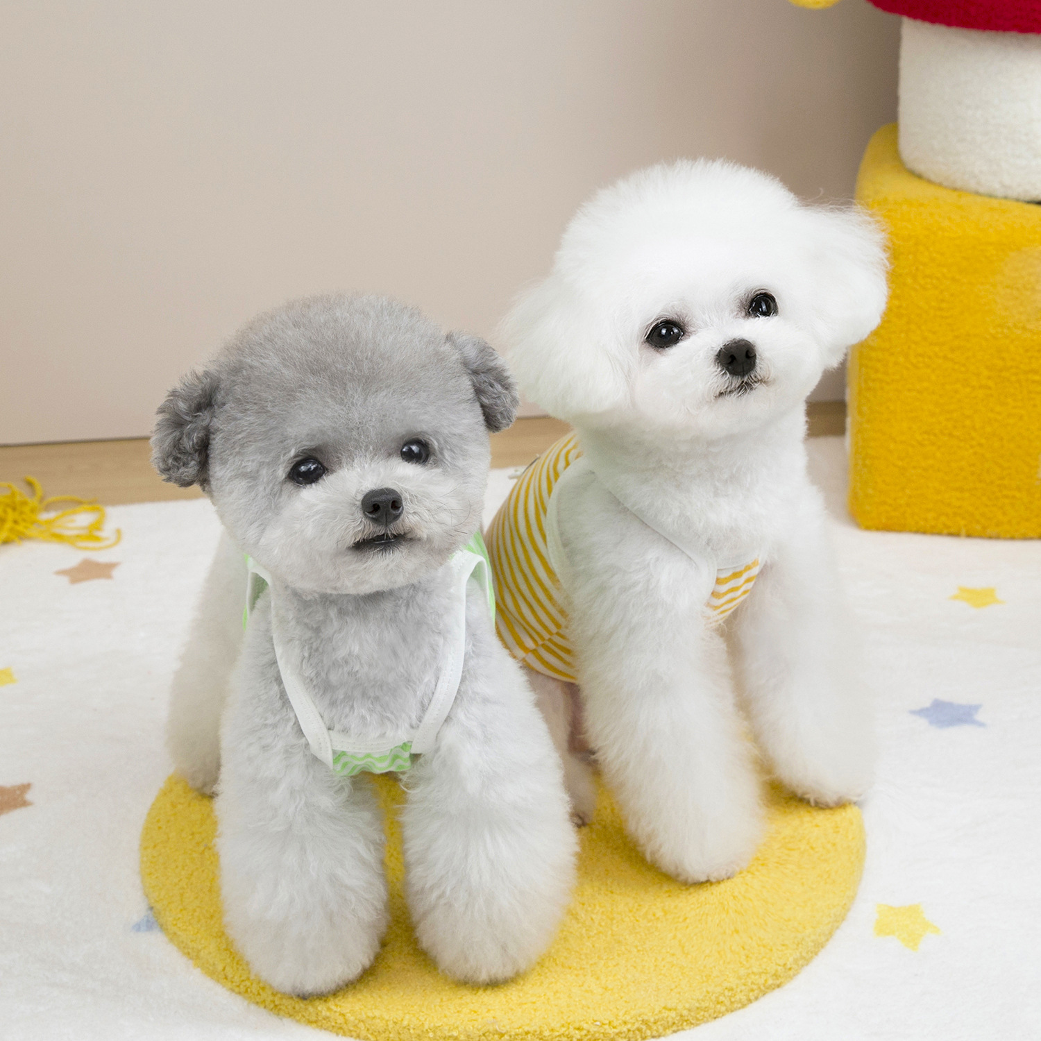 강아지 옷 여름용 얇은 조끼형 멜빵 소형견용 목줄 고리 포함 비숑 테디 25 얇은 거즈 스트라이프 멜빵스토어 가기
