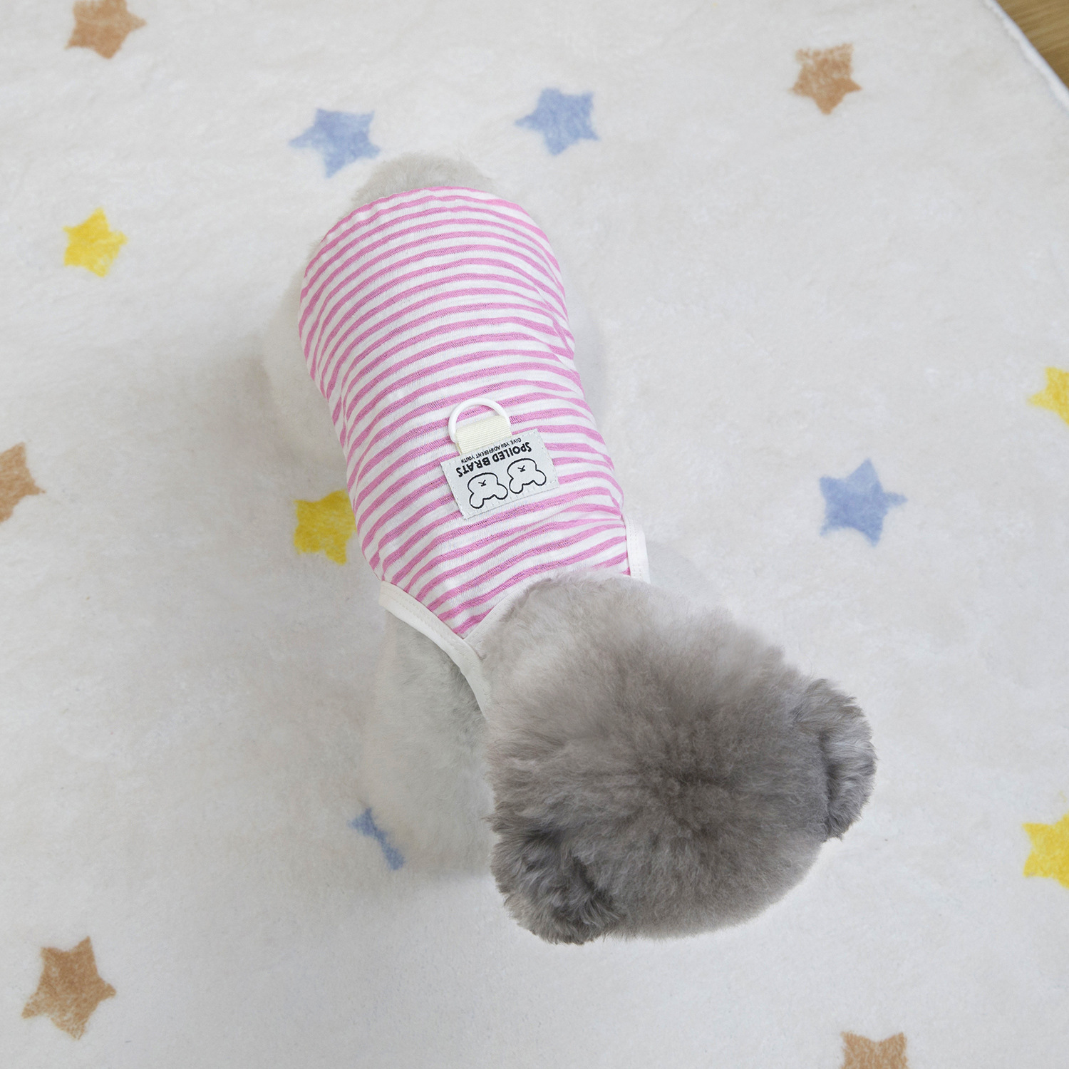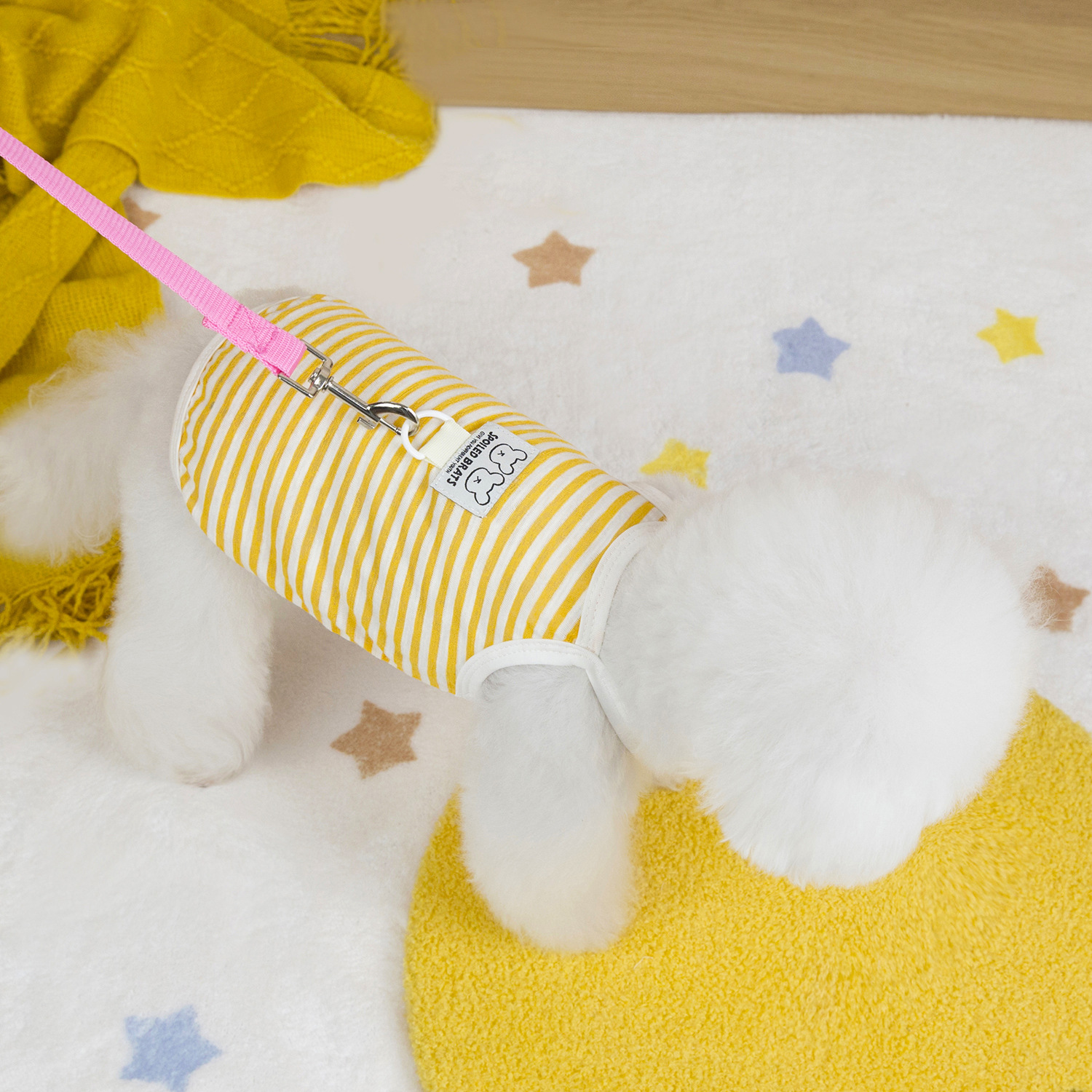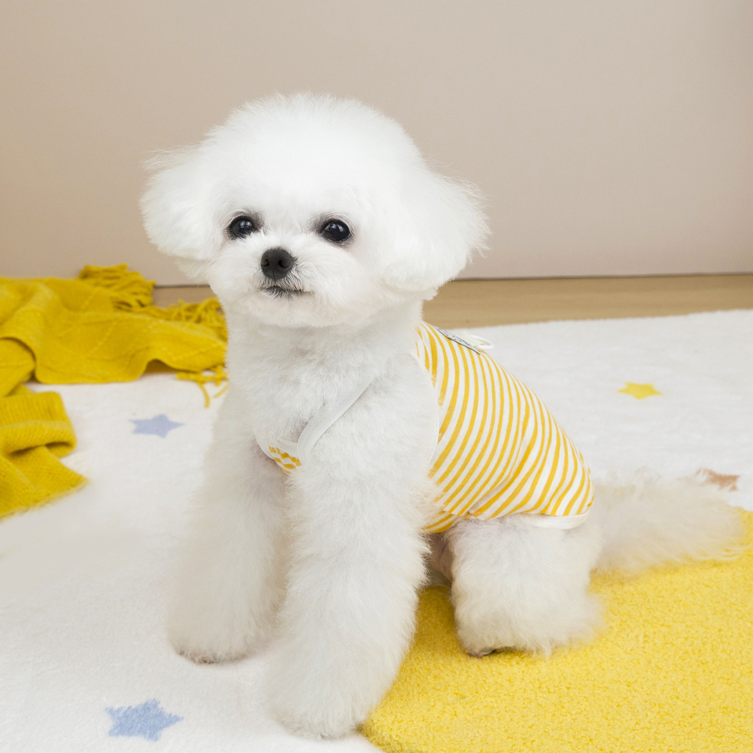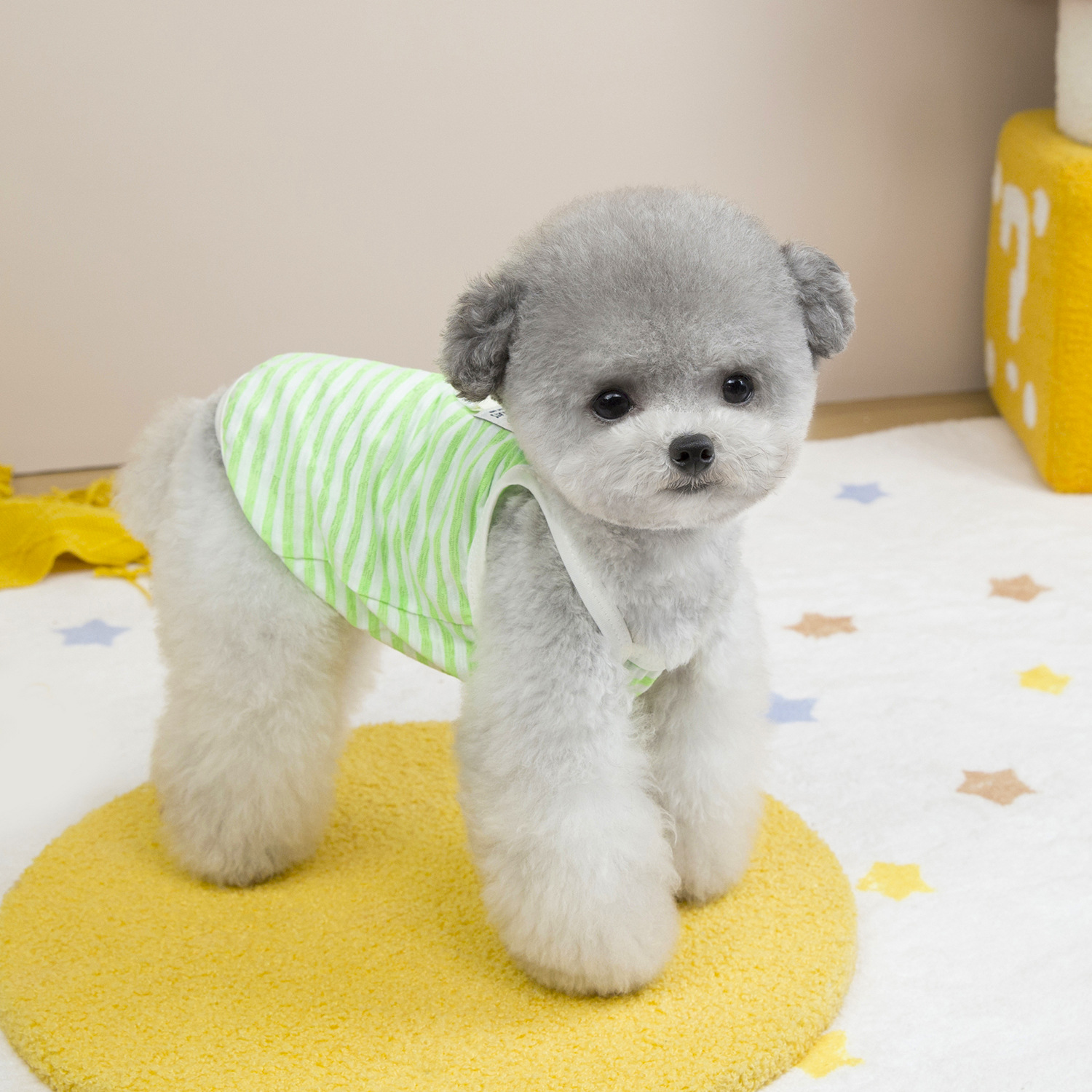 강아지 옷 여름용 얇은 조끼형 멜빵 소형견용 목줄 고리 포함 비숑 테디 25 얇은 거즈 스트라이프 멜빵스토어 가기