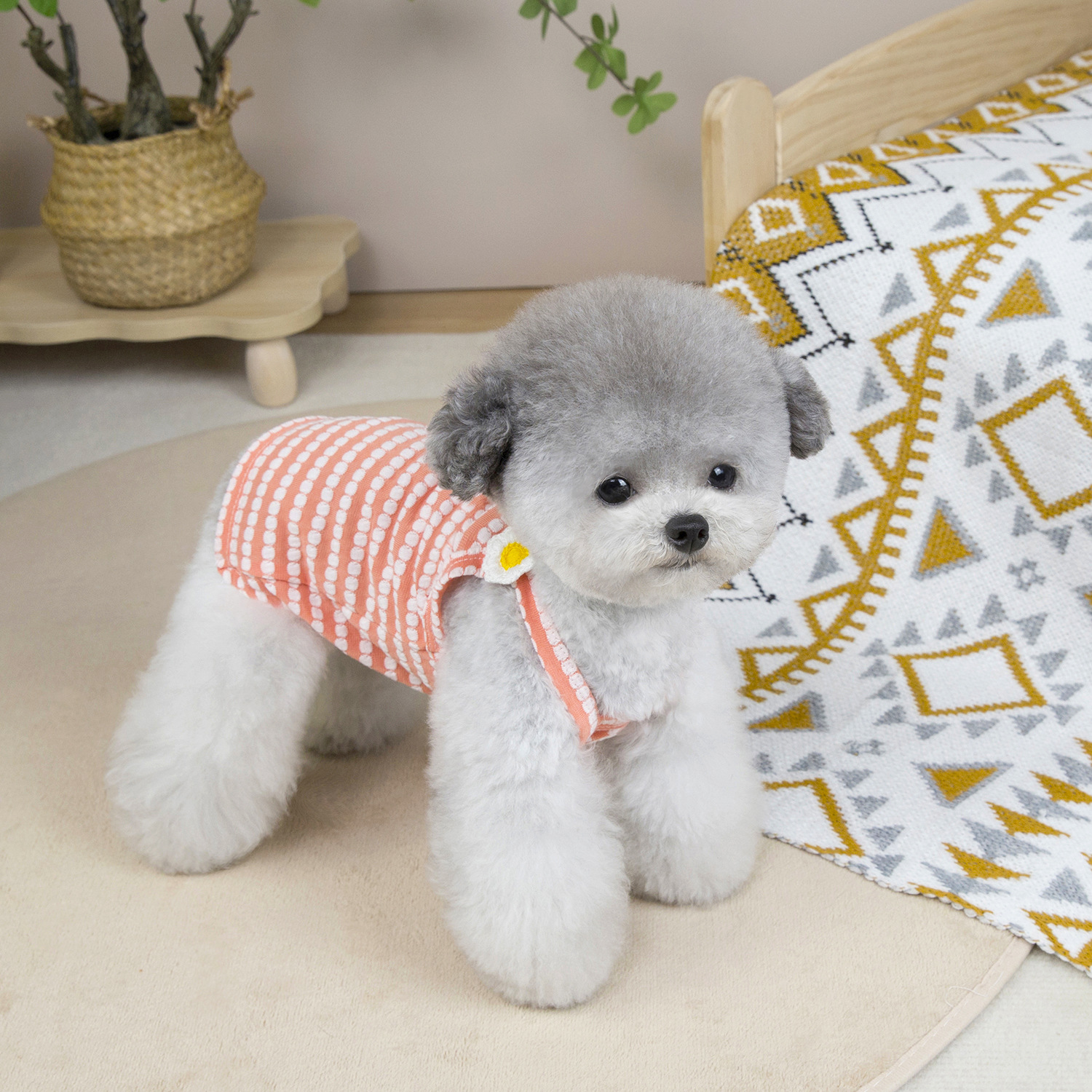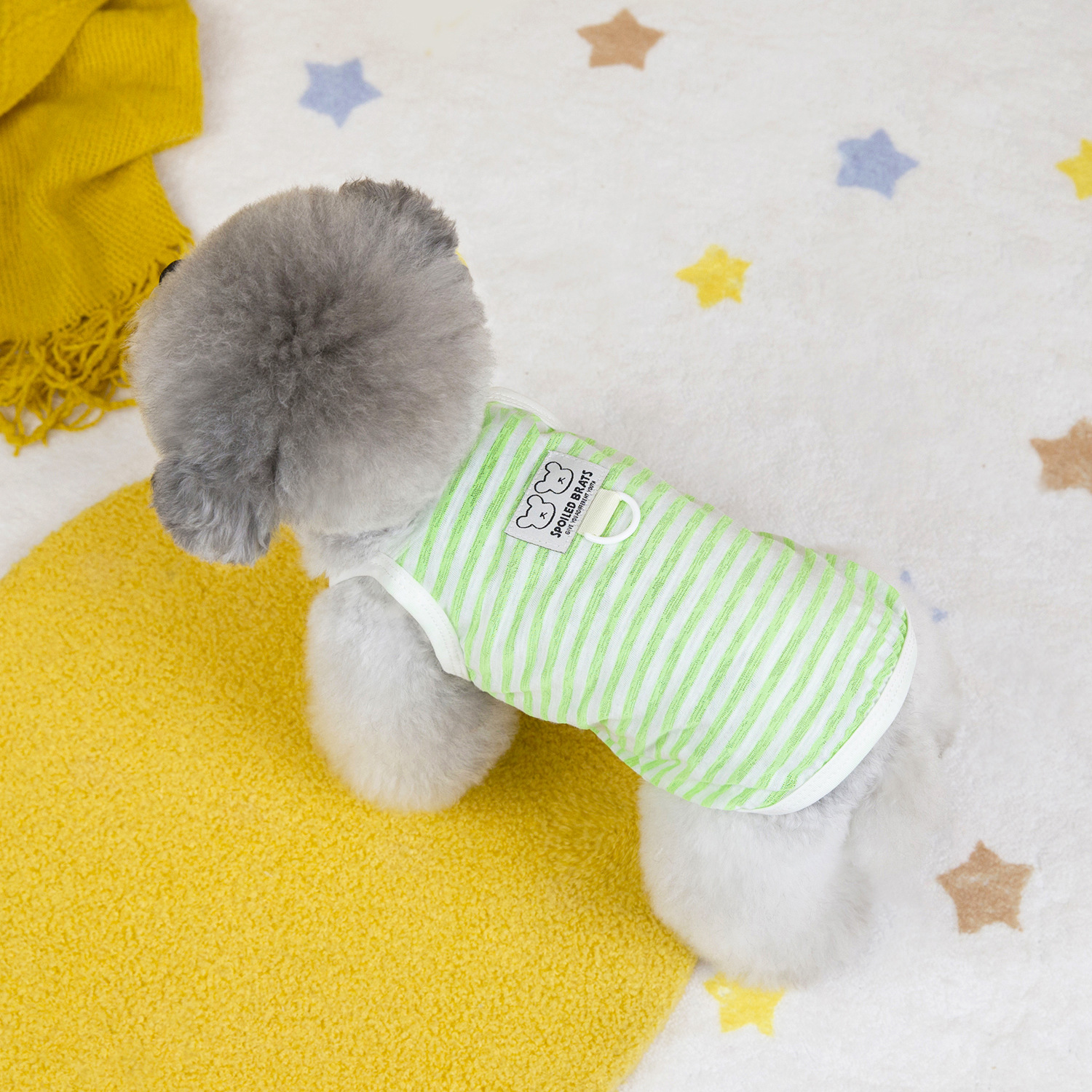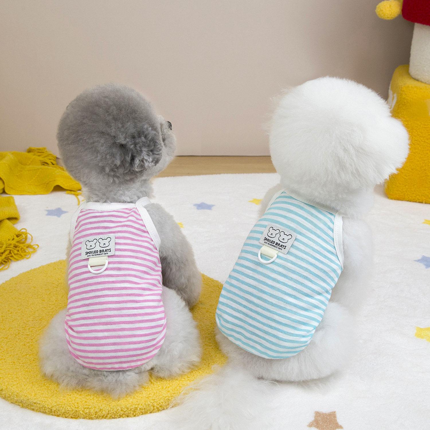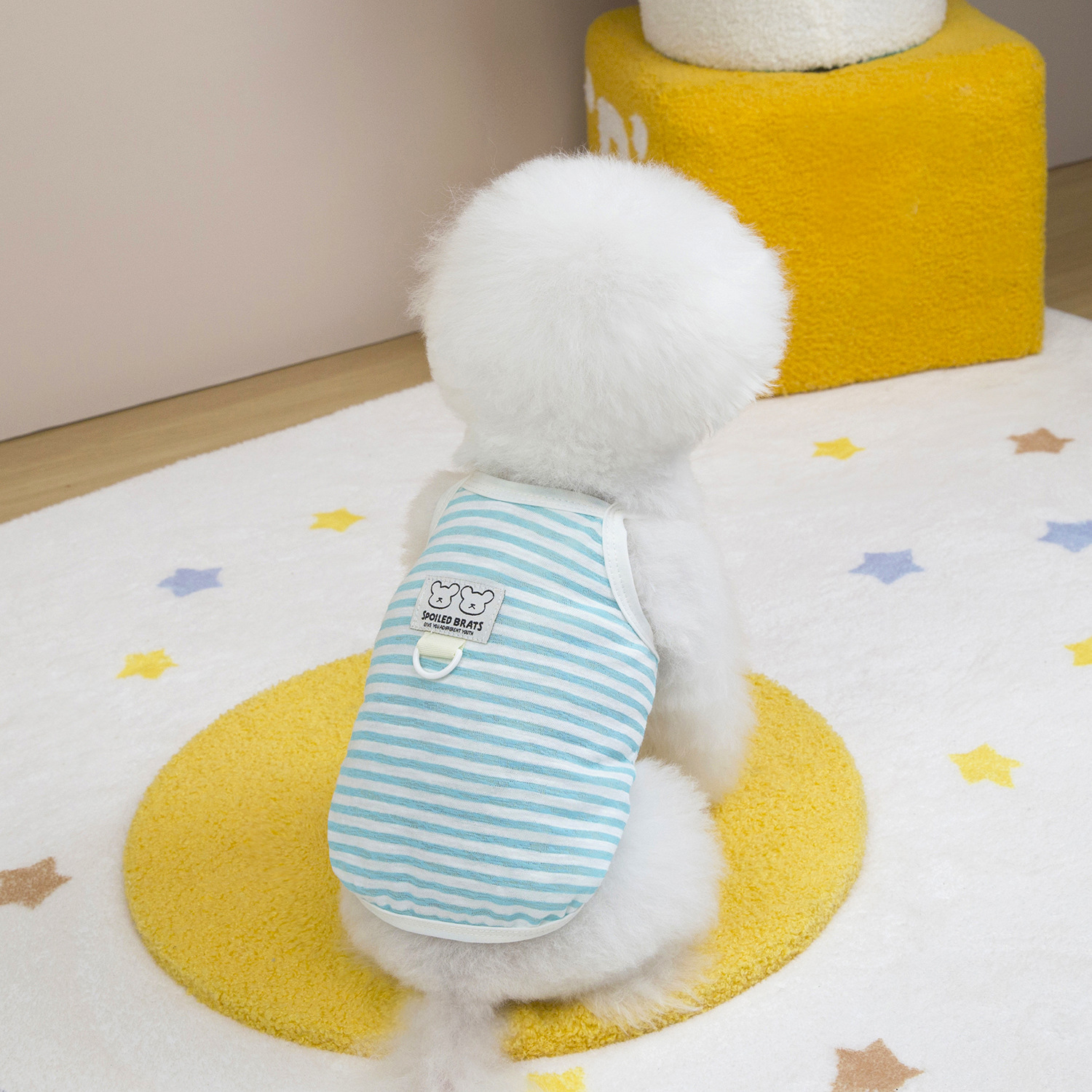 강아지 옷 여름용 얇은 조끼형 멜빵 소형견용 목줄 고리 포함 비숑 테디 25 얇은 거즈 스트라이프 멜빵