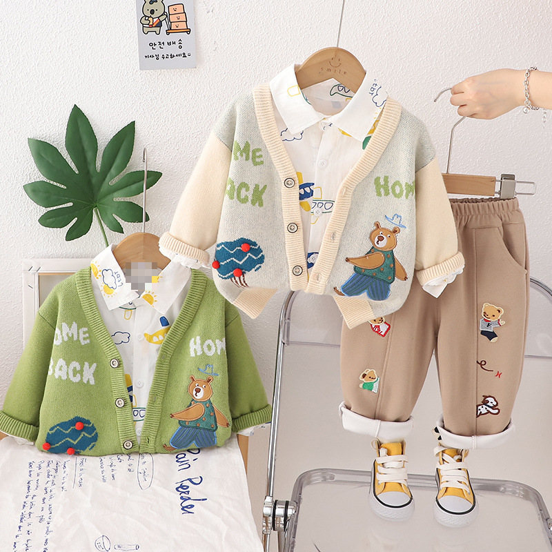 아기의 가을 옷 2025 세트 소년의 새로운 서양식 잘 생긴 봄과 가을 카디건 조끼 3 피스 아기 옷스토어 가기