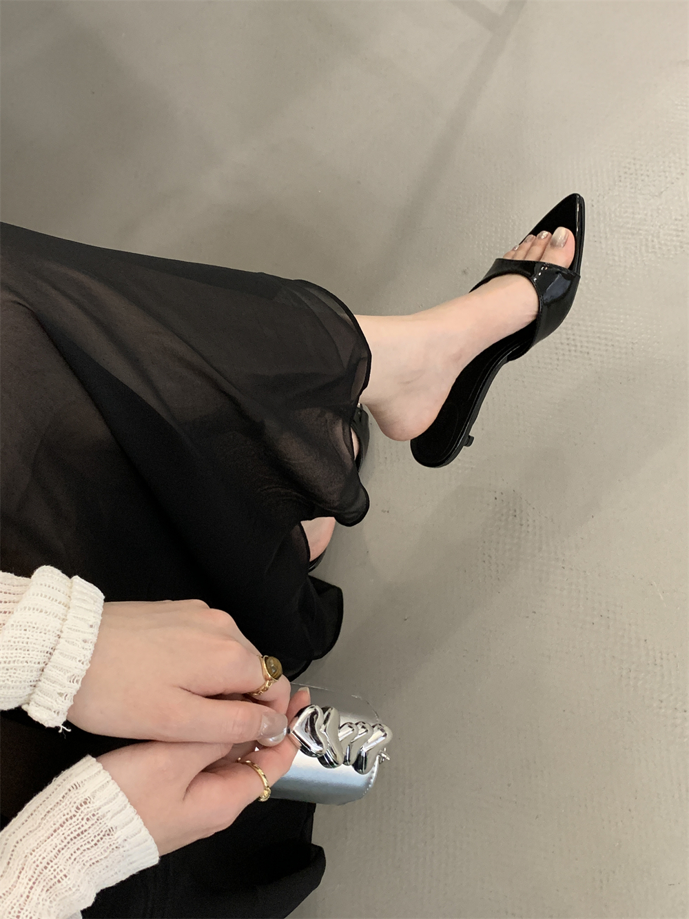 한국 스타일 디자인 피쉬 입 오픈 발가락 슬리퍼 여성 아우터웨어 여름 새로운 도착 유행 올매치 포인팅 발가락 얇은 뒤꿈치 샌들 2025 년스토어 가기