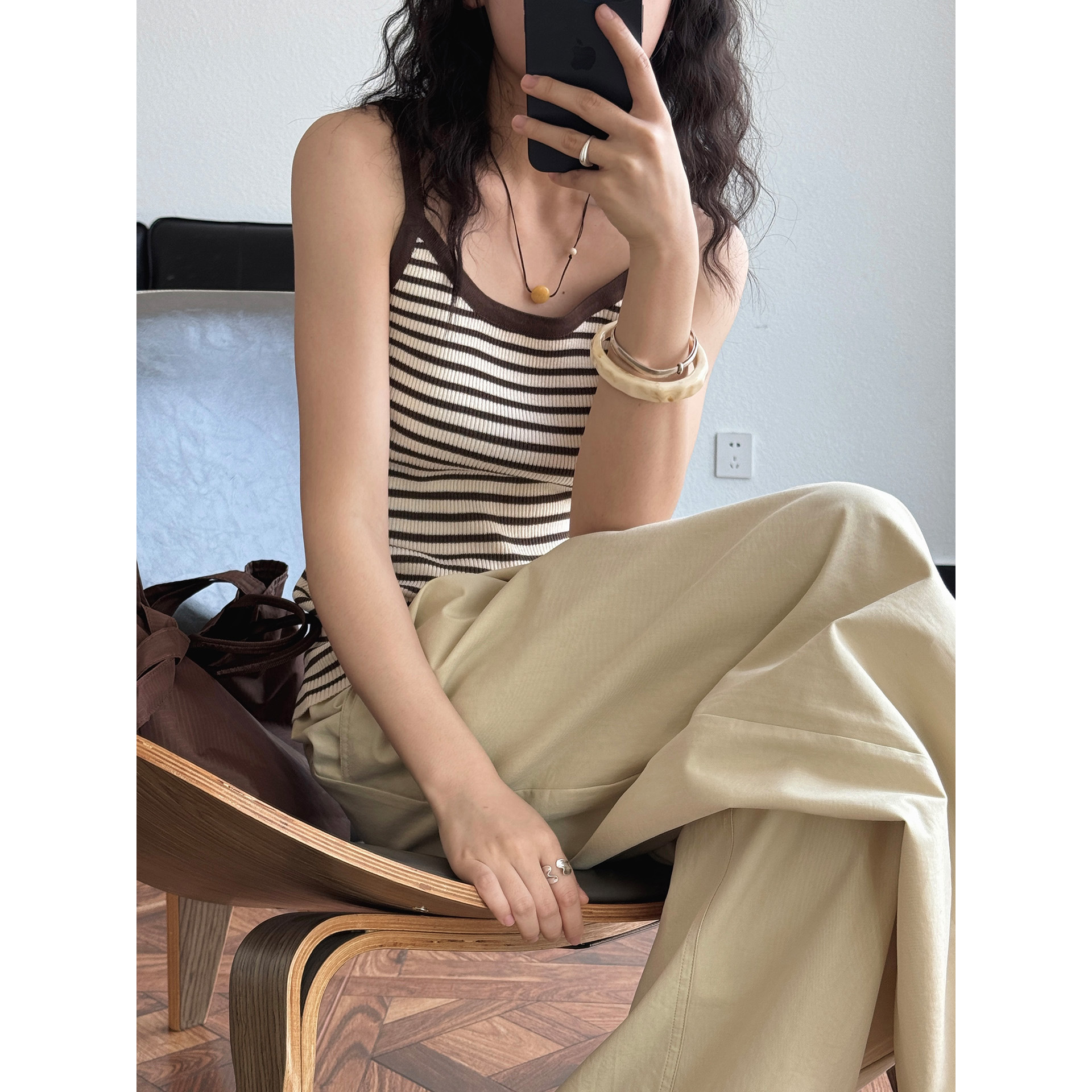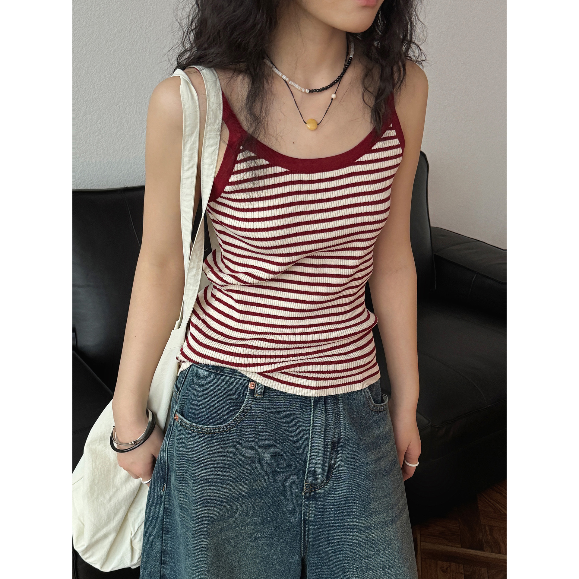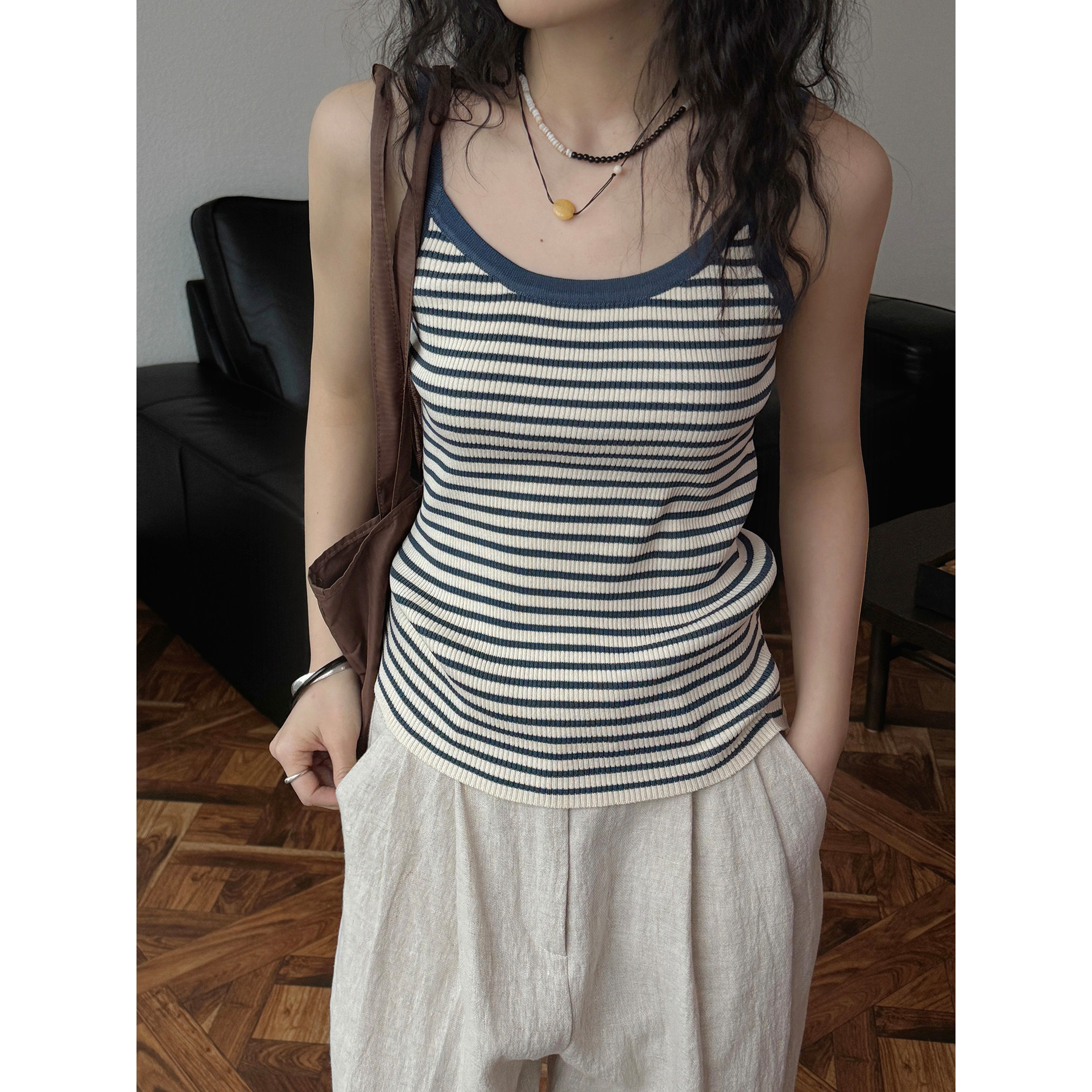 루푸 봄과 여름 새로운 한국식 게으른 복고풍 대조 컬러 슬링 슬림 핏 슬리밍 내부 니트 조끼스토어 가기