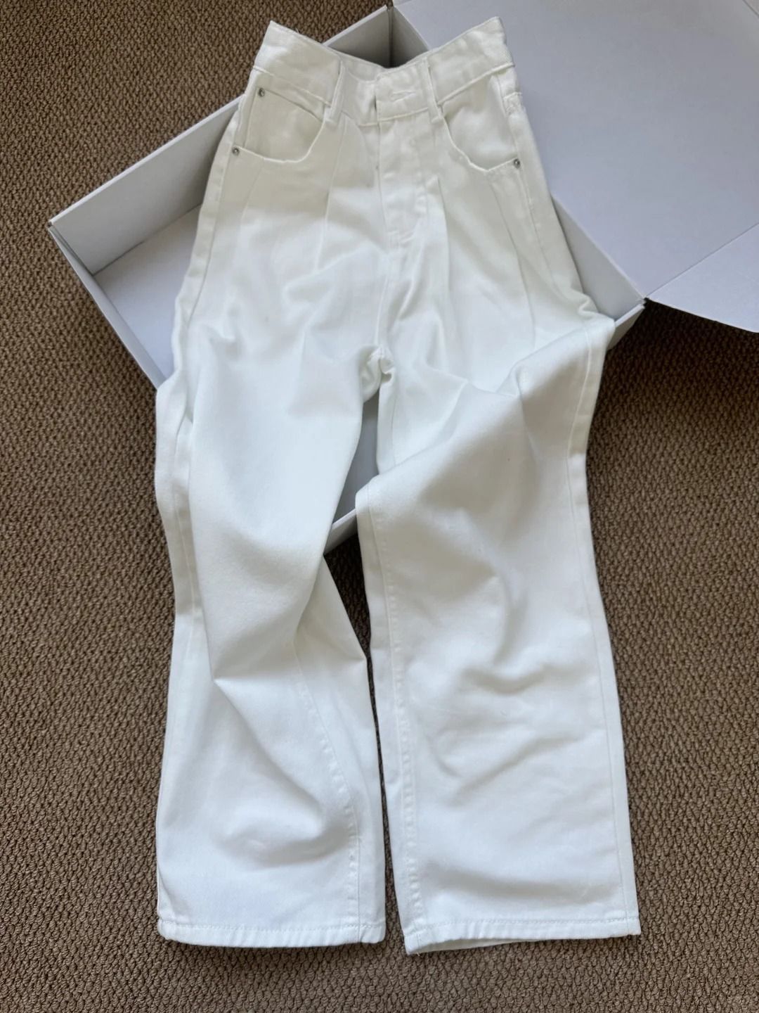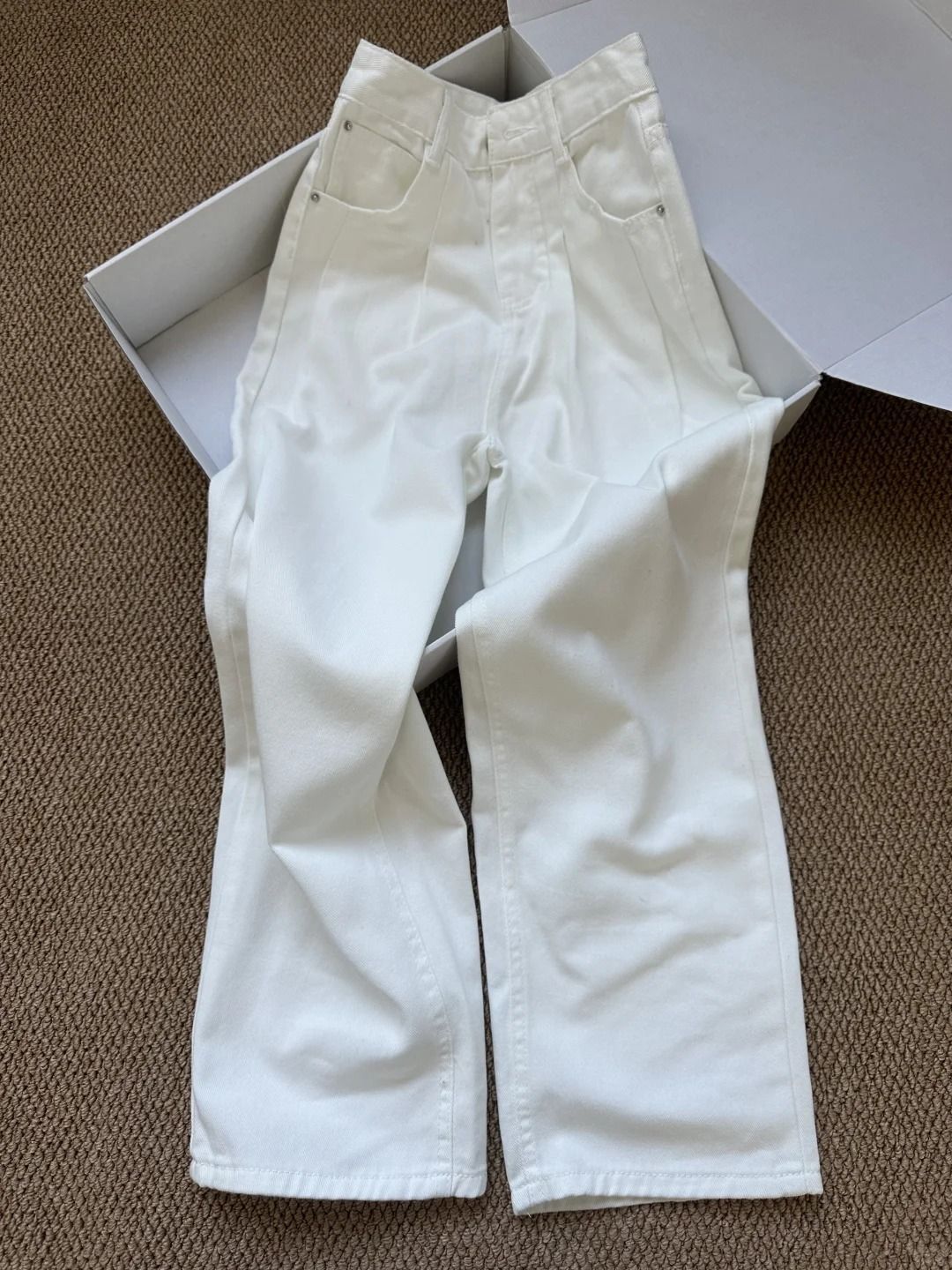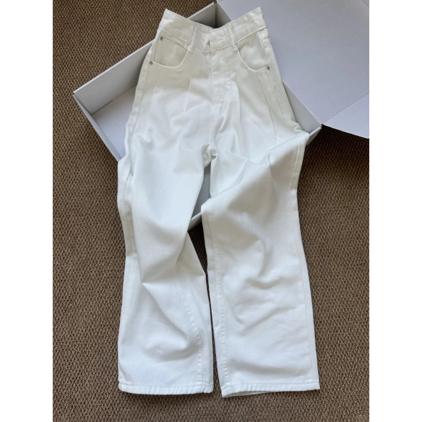 2025 새로운 주름 고관절을 덮는 스트레이트 청바지 여자 봄 높은 허리 슬리밍 올 매치 화이트 와이드 다리 바지스토어 가기