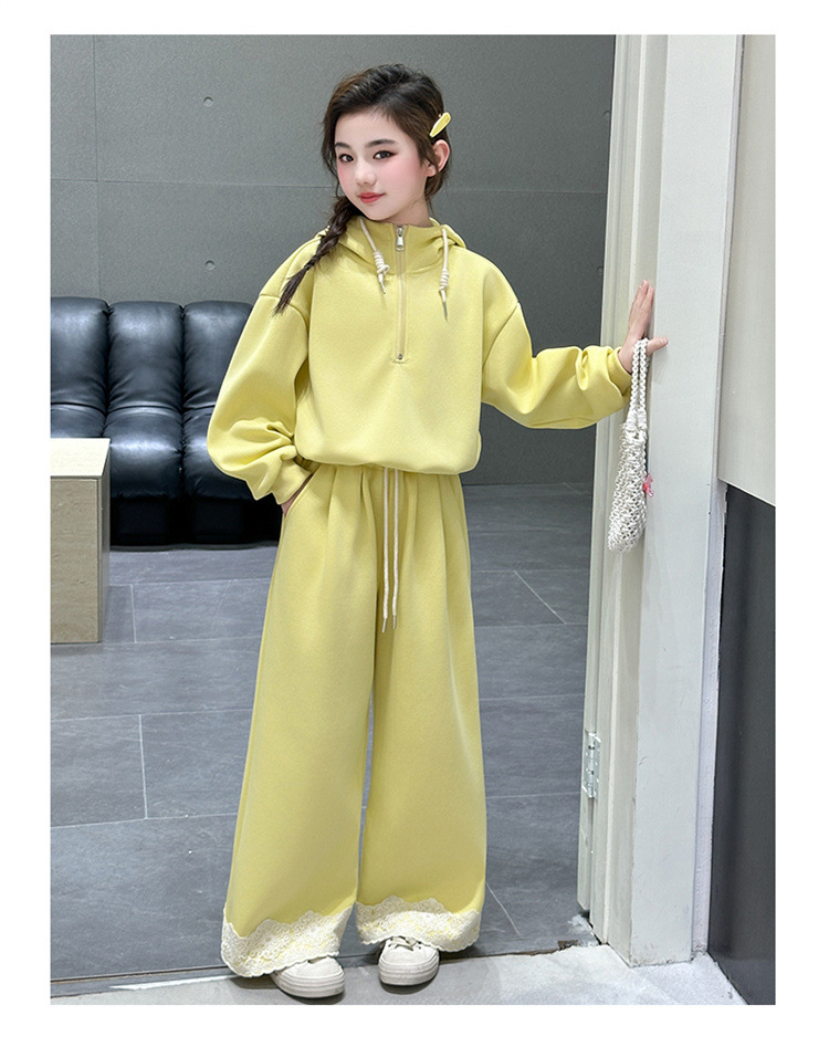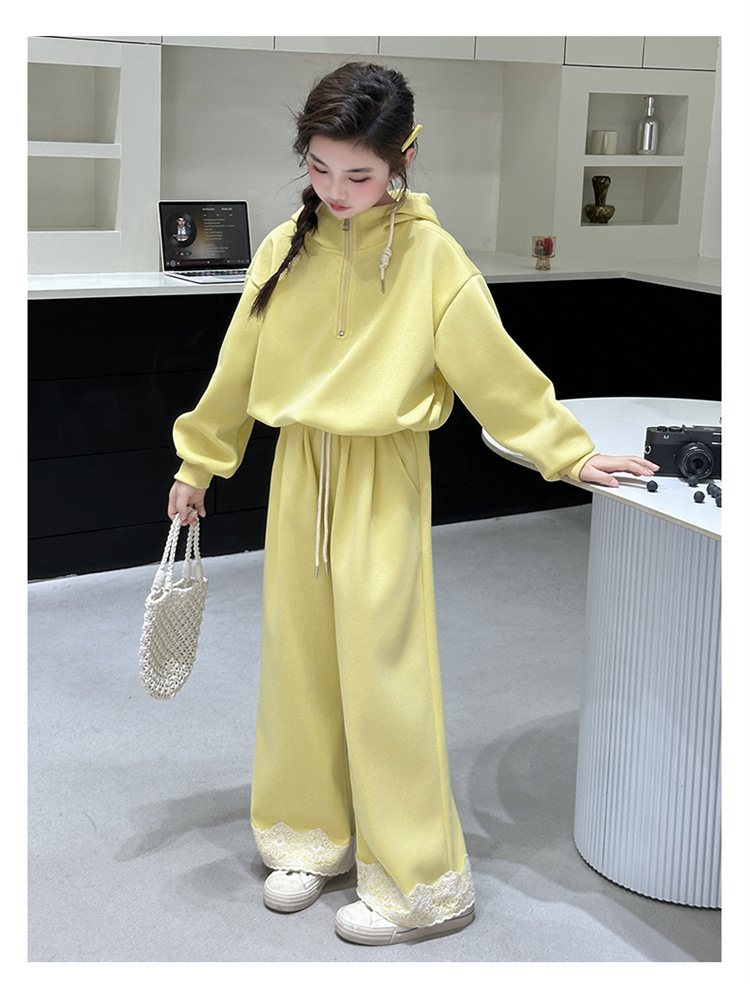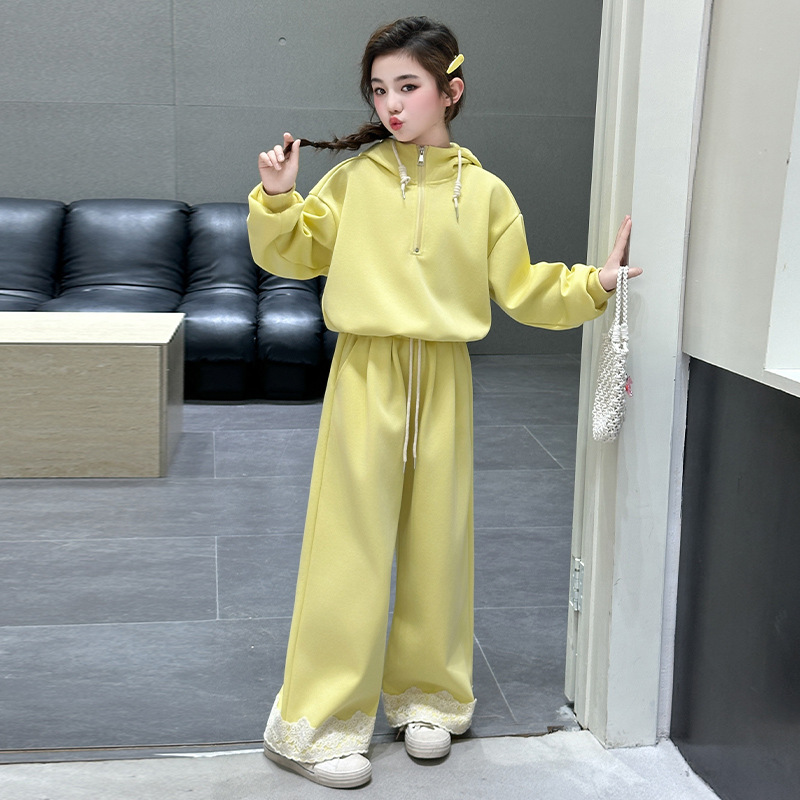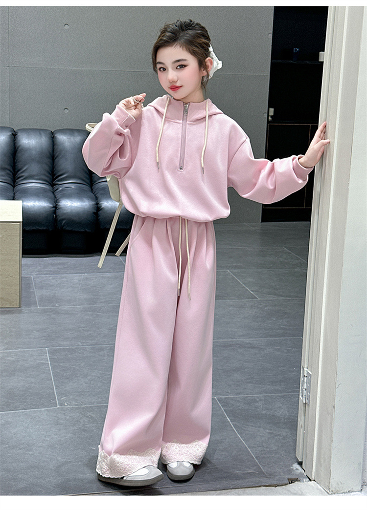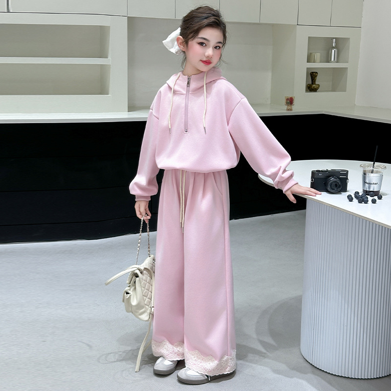 소녀의 큰 소년의 봄과 가을 캐주얼 세트 2025 새로운 스타일 피트 레이스 바지 소녀의 후드 스웨터 2 피스 세트