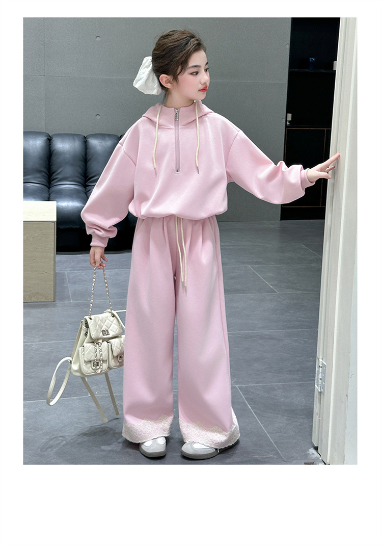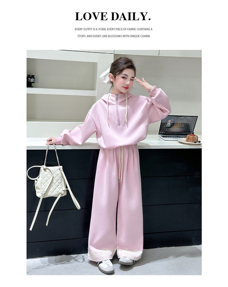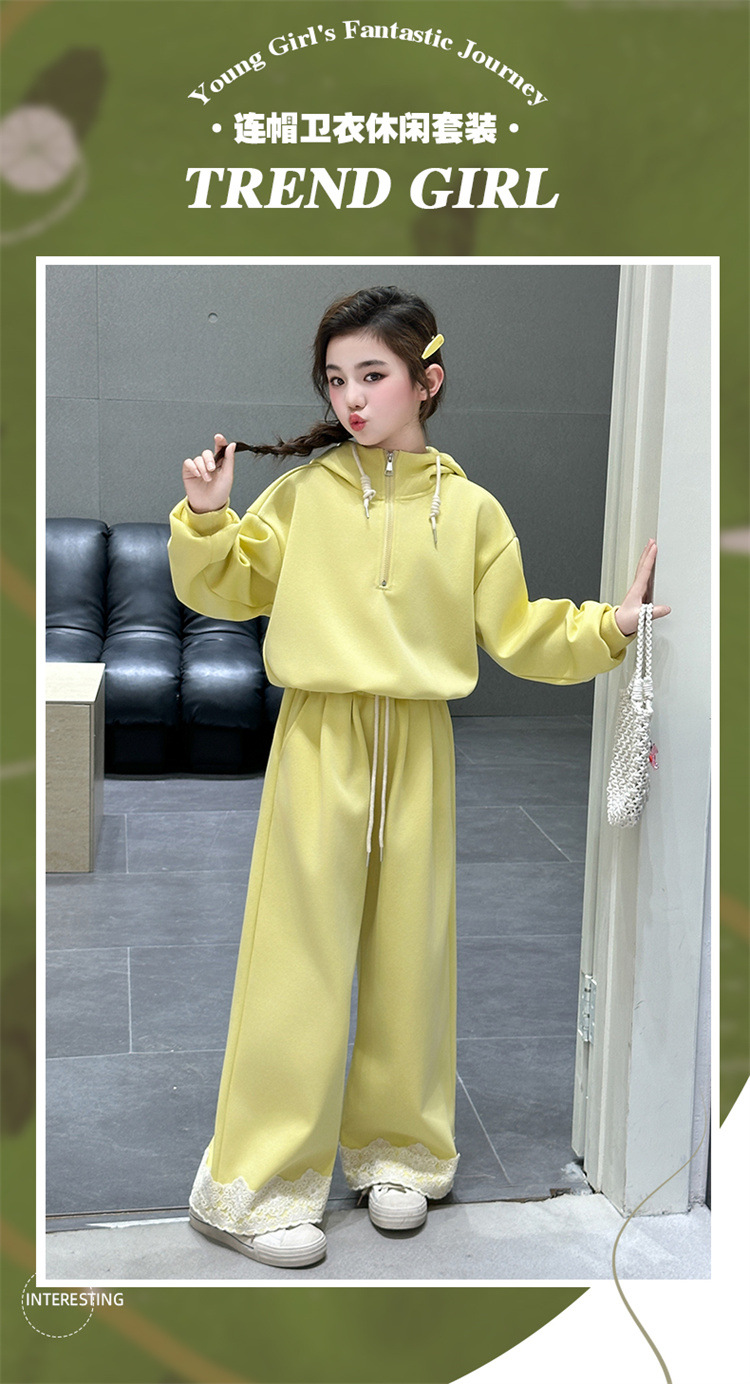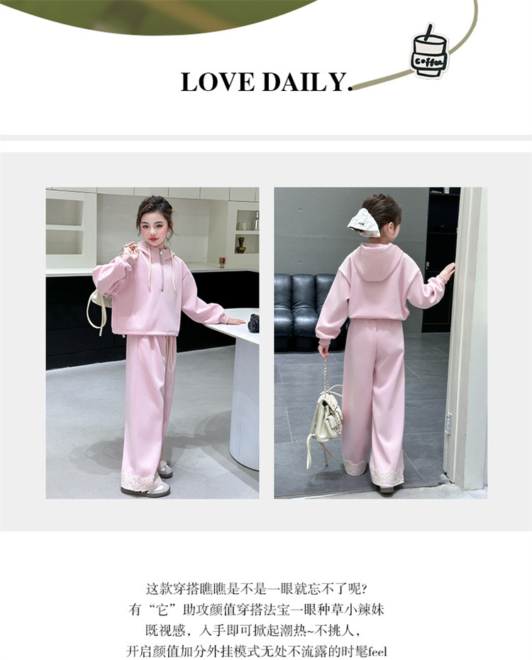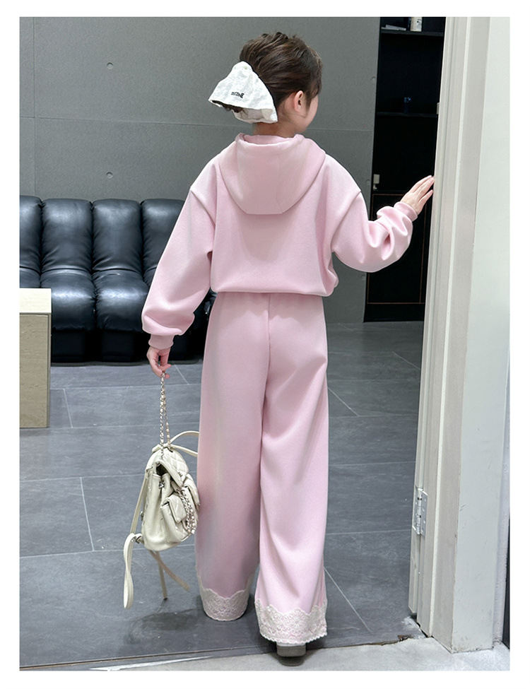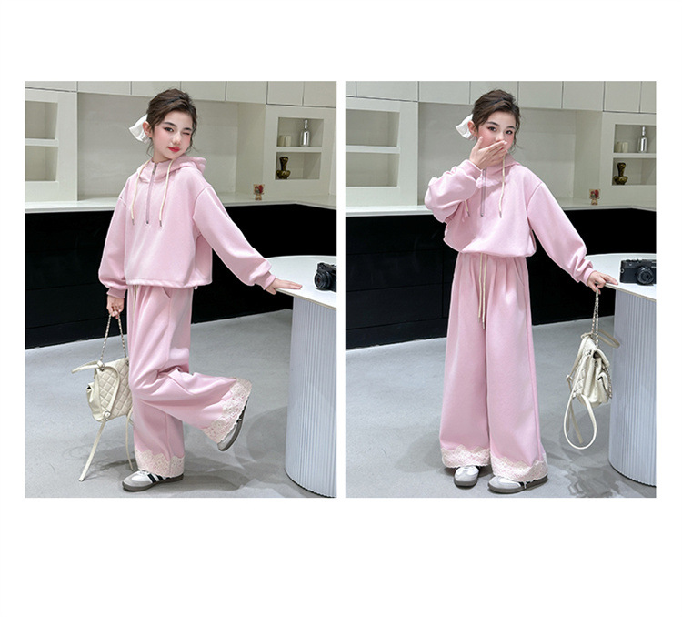 소녀의 큰 소년의 봄과 가을 캐주얼 세트 2025 새로운 스타일 피트 레이스 바지 소녀의 후드 스웨터 2 피스 세트스토어 가기