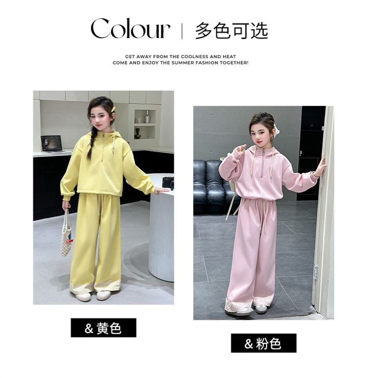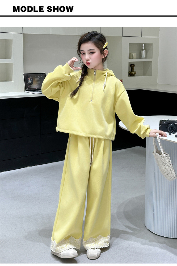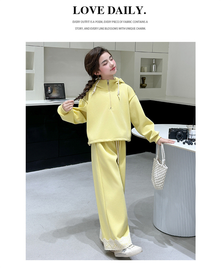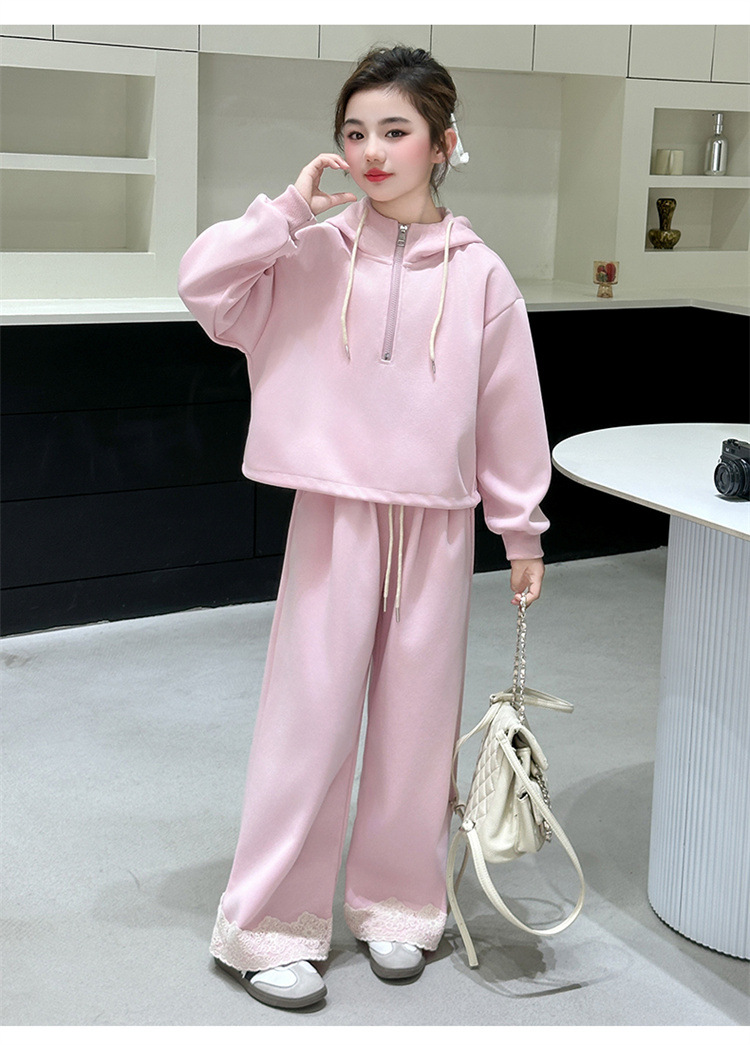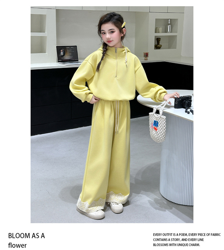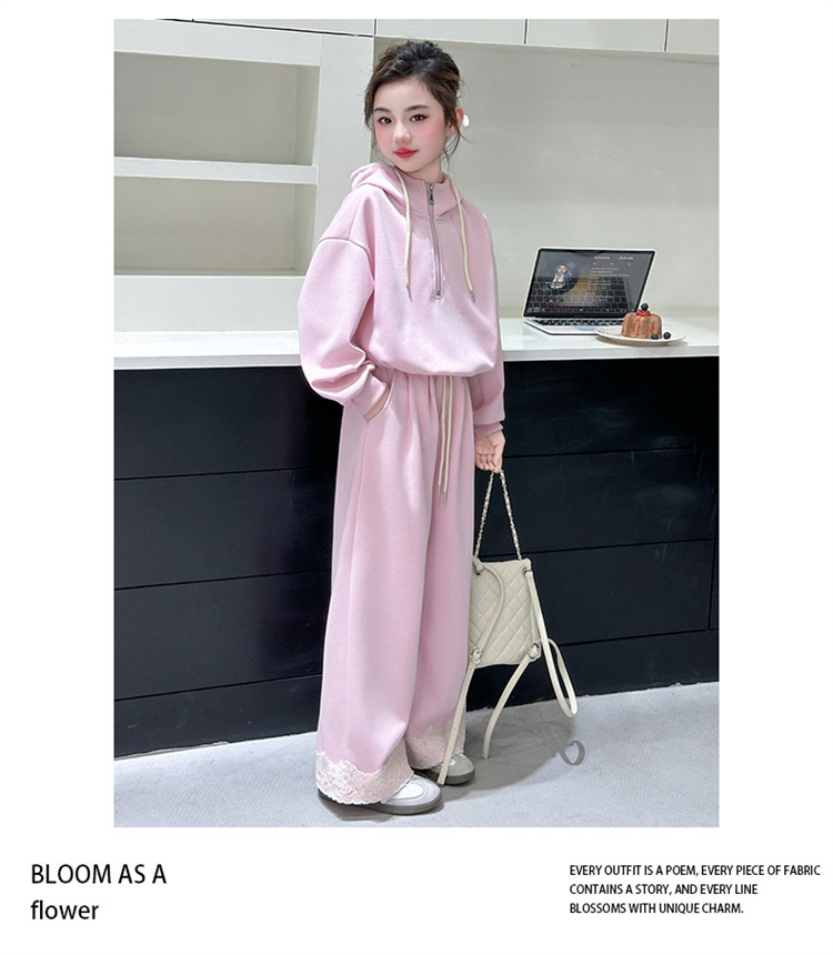 소녀의 큰 소년의 봄과 가을 캐주얼 세트 2025 새로운 스타일 피트 레이스 바지 소녀의 후드 스웨터 2 피스 세트스토어 가기