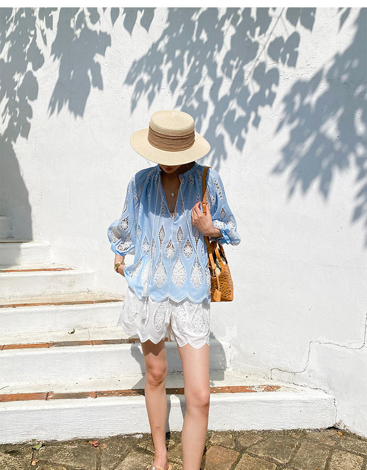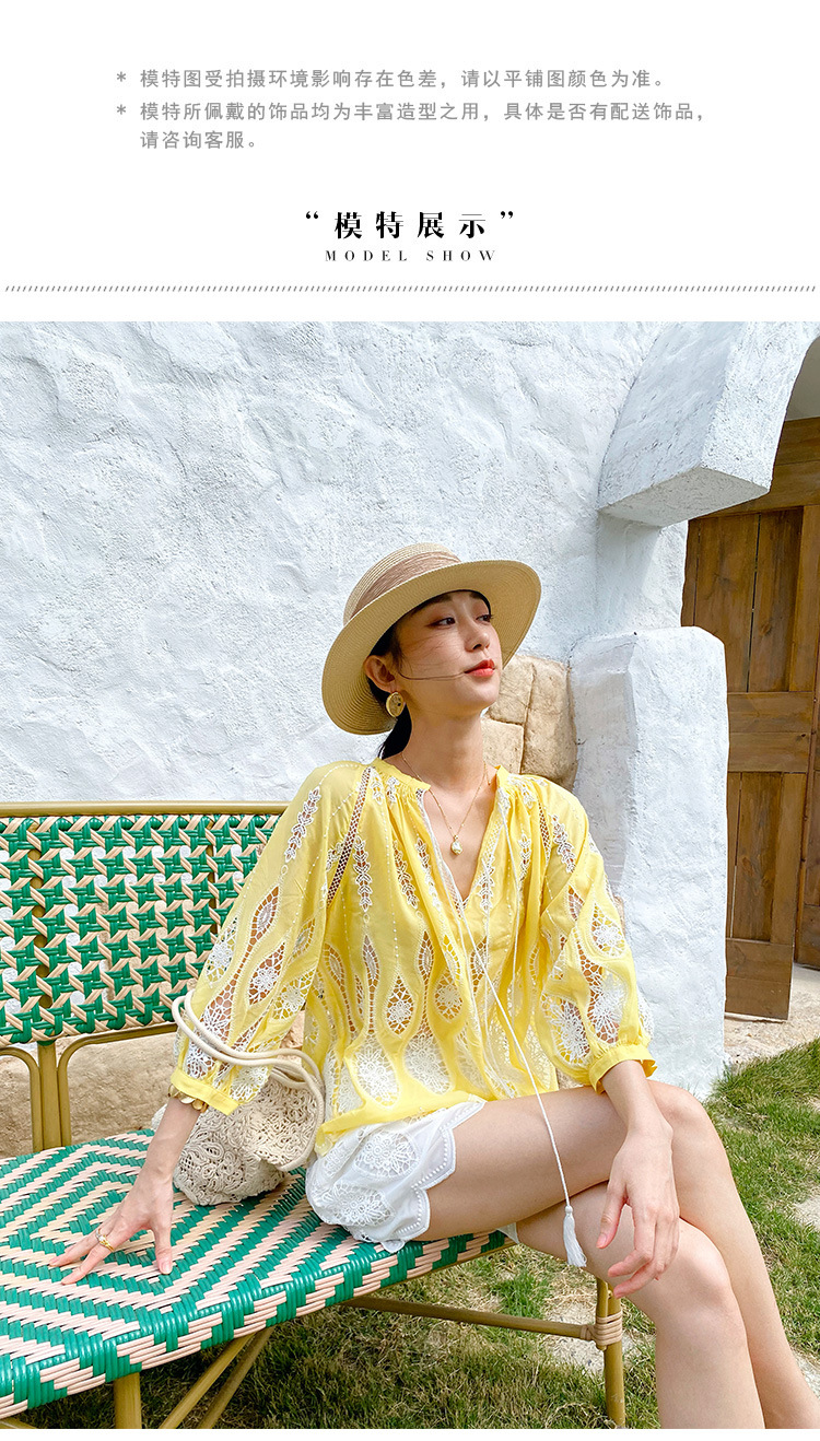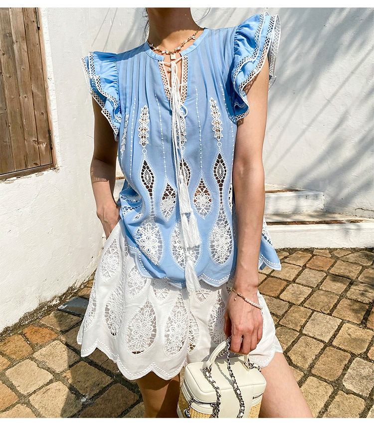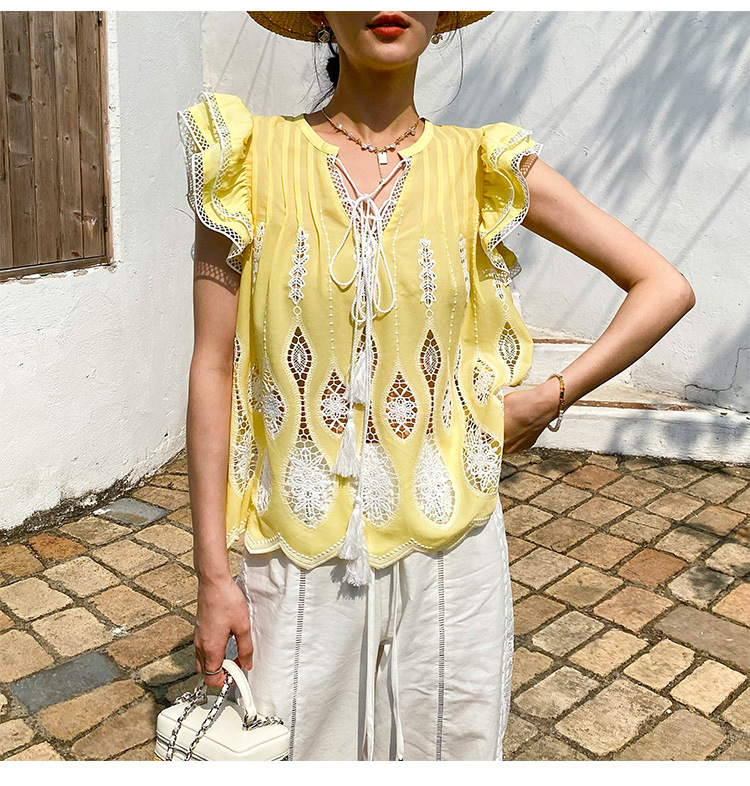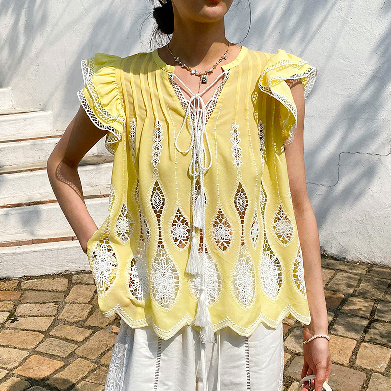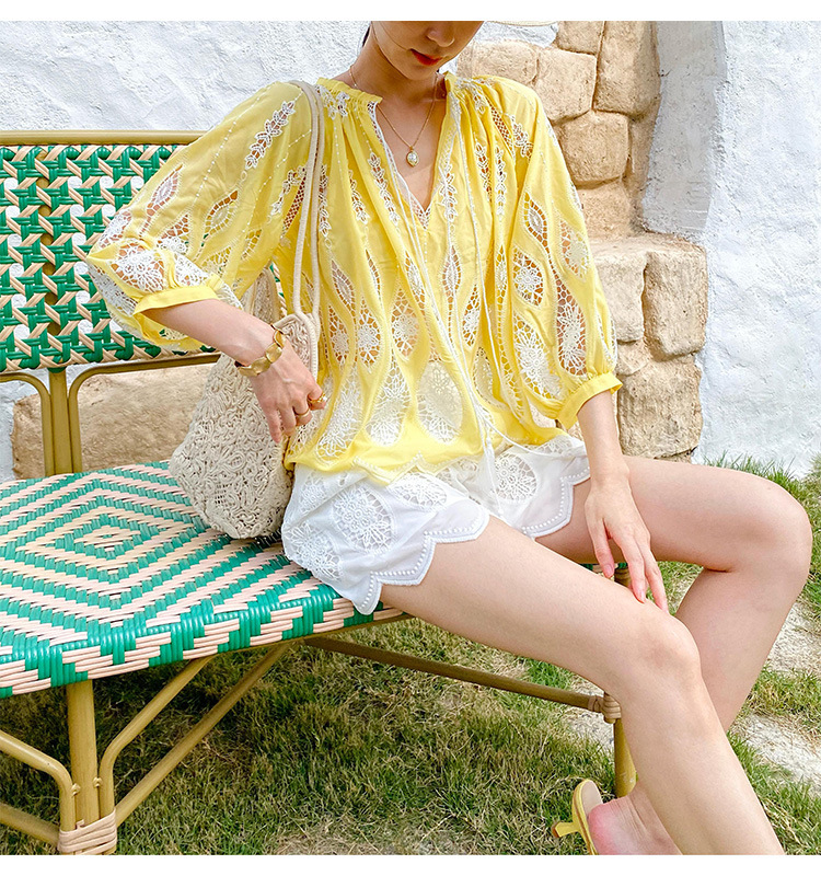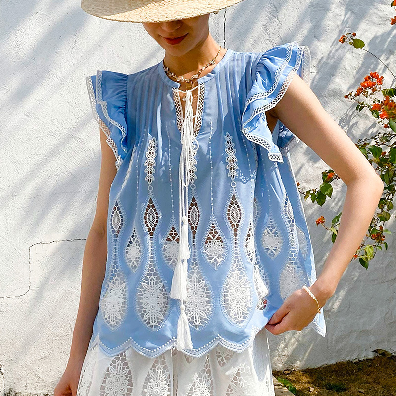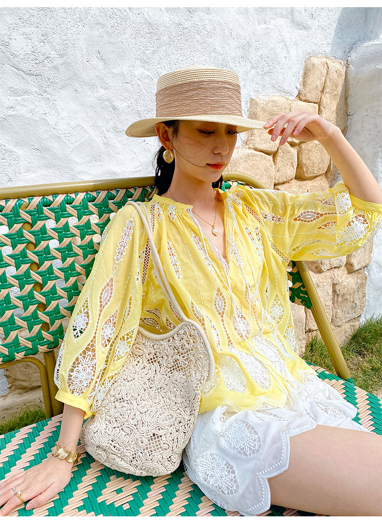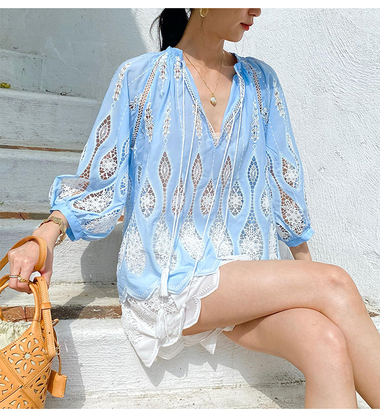 2025 여름 여성 리조트 스타일 프랑스 자수 탑 해변 휴가 셔츠 심천 Nanyou 셔츠 여성 여름 착용