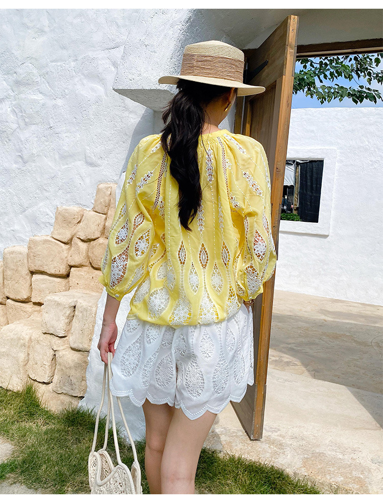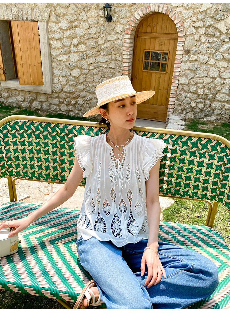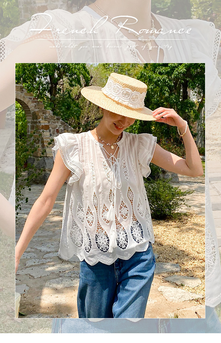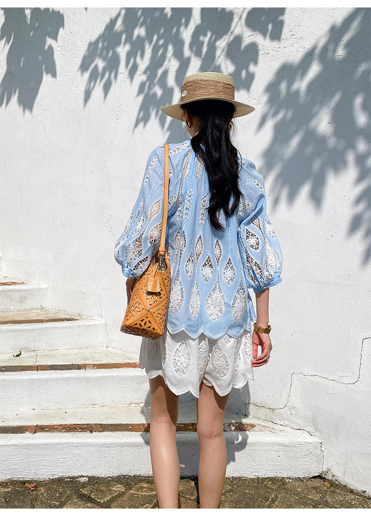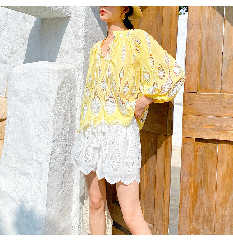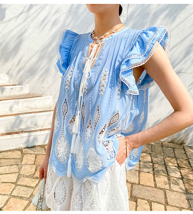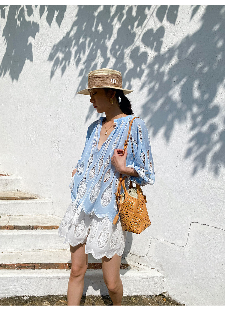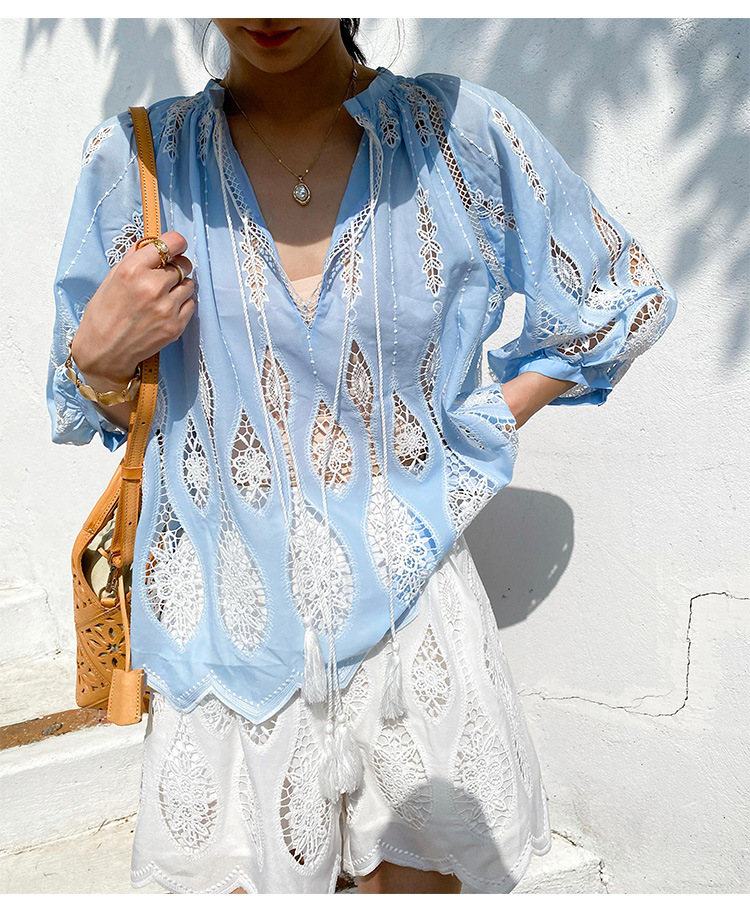 2025 여름 여성 리조트 스타일 프랑스 자수 탑 해변 휴가 셔츠 심천 Nanyou 셔츠 여성 여름 착용