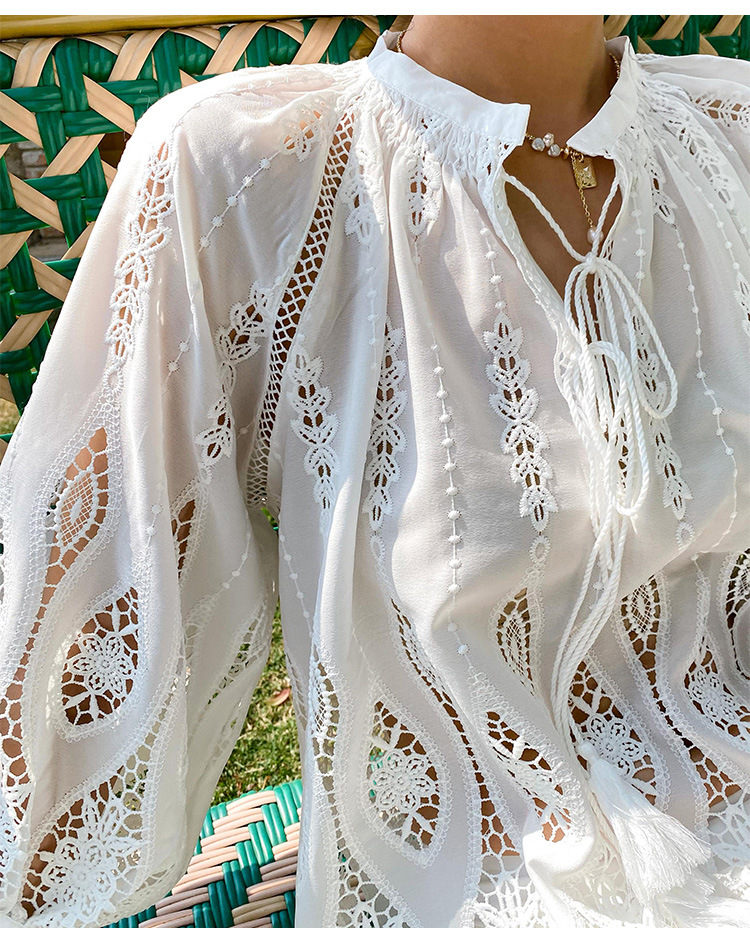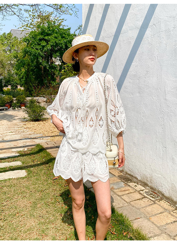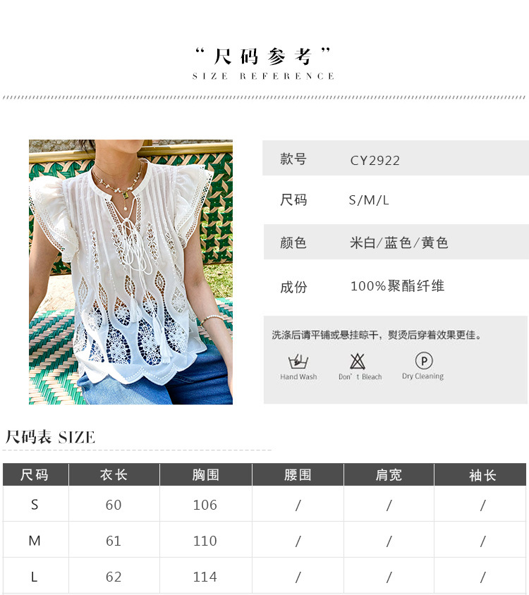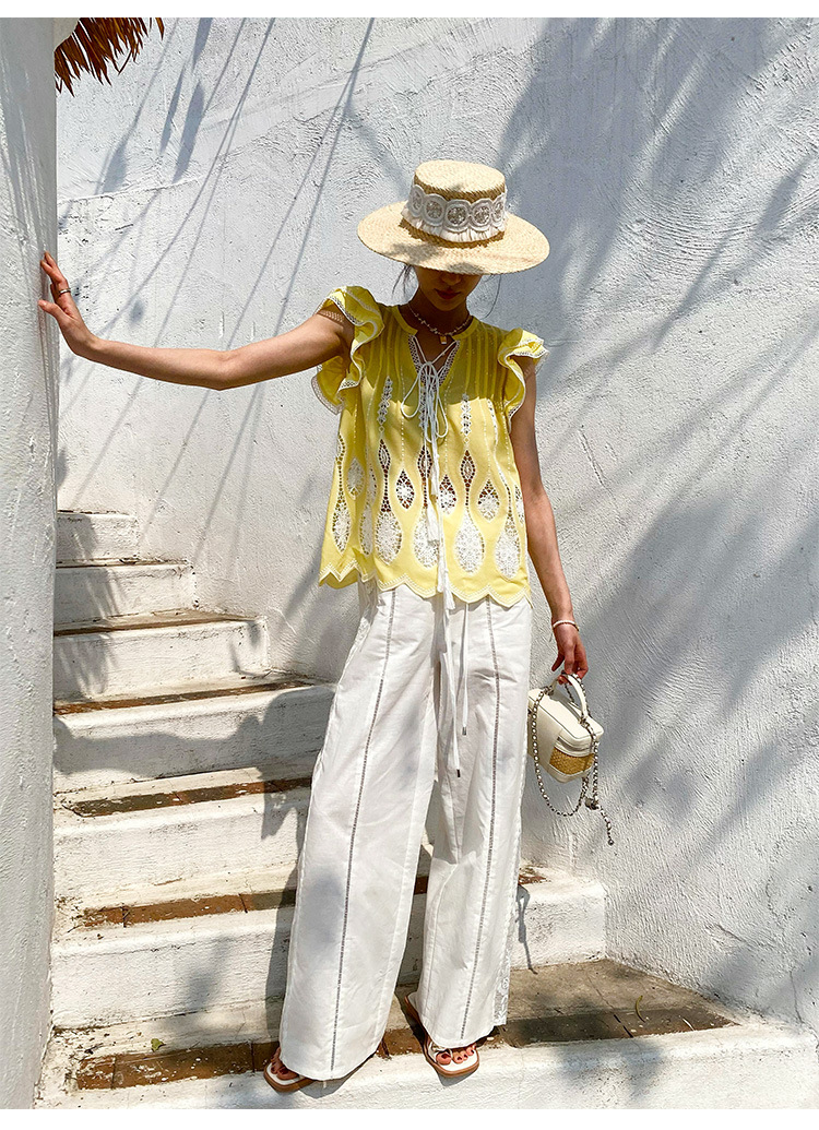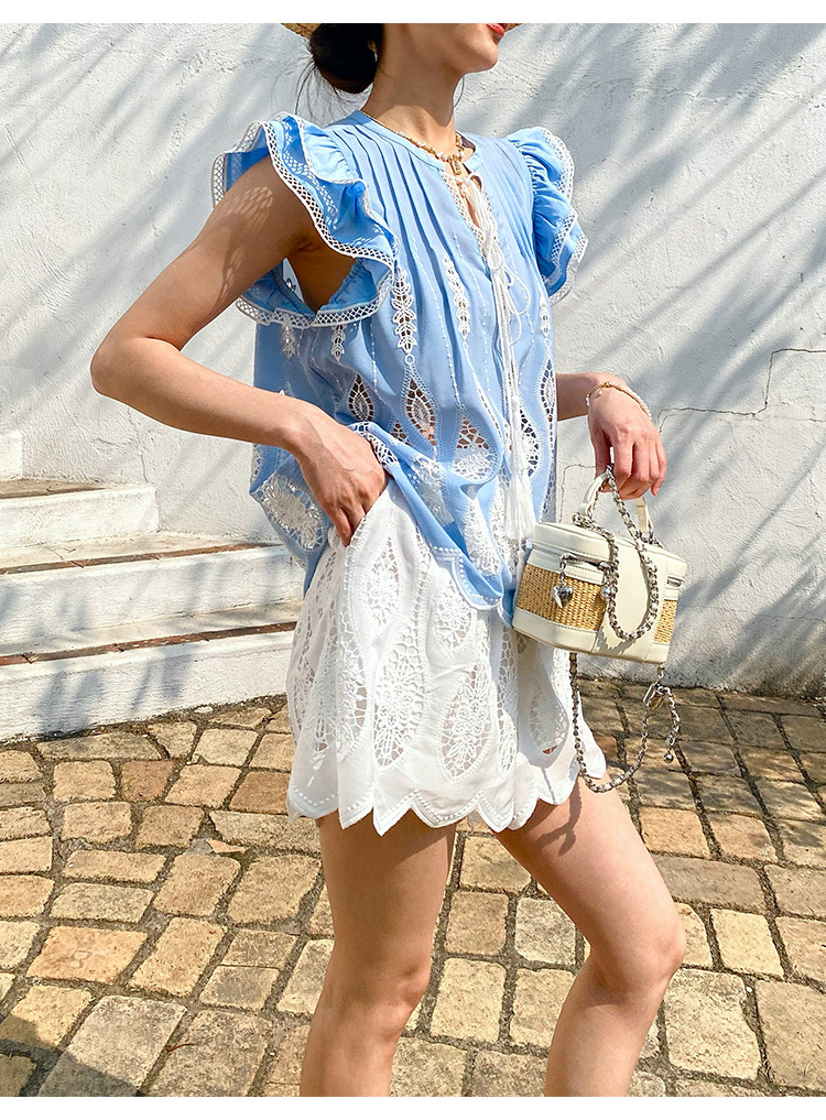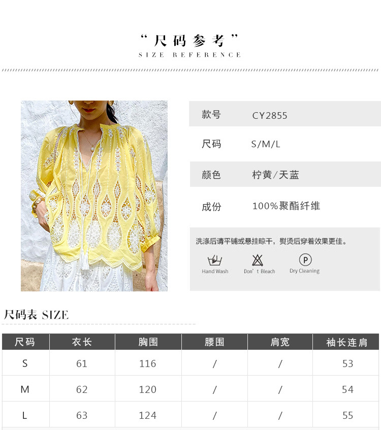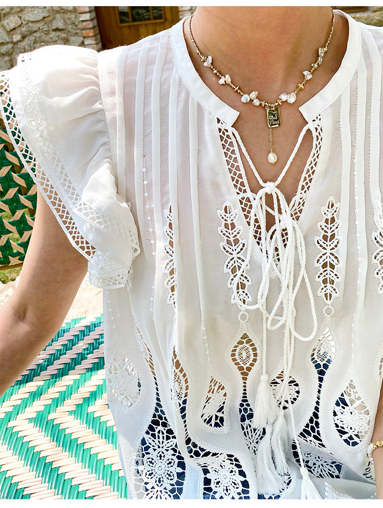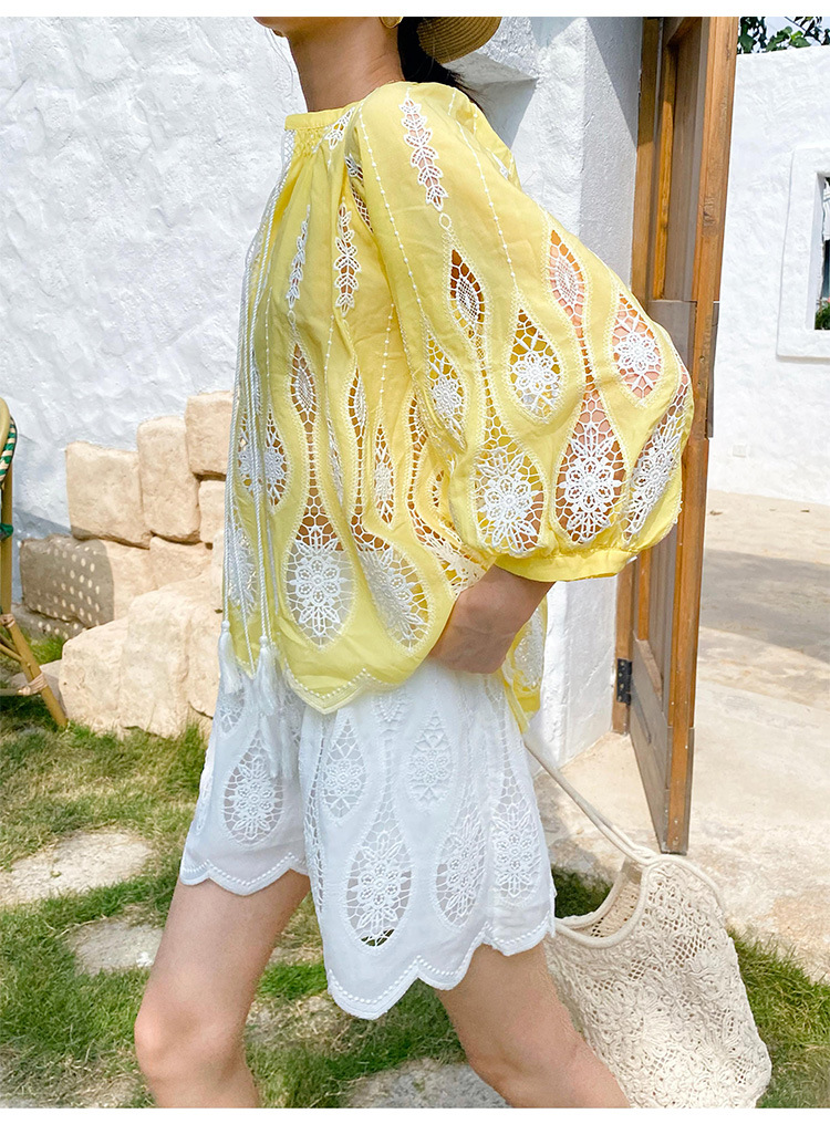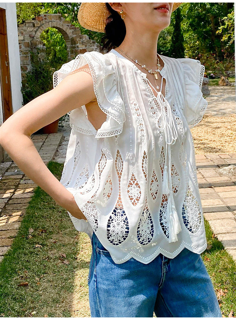 2025 여름 여성 리조트 스타일 프랑스 자수 탑 해변 휴가 셔츠 심천 Nanyou 셔츠 여성 여름 착용