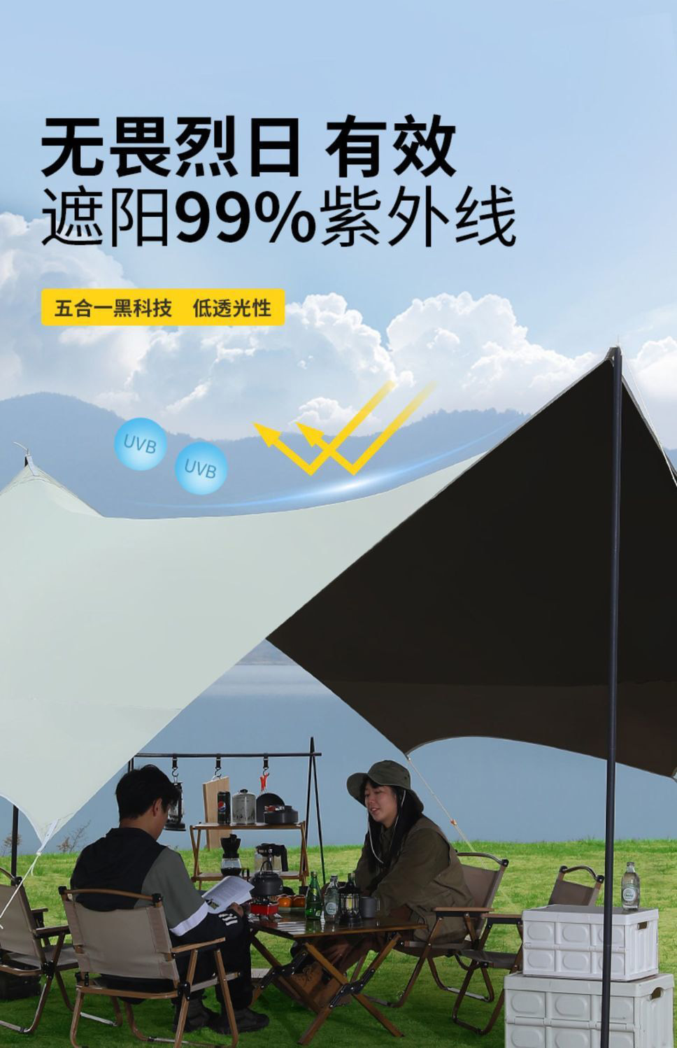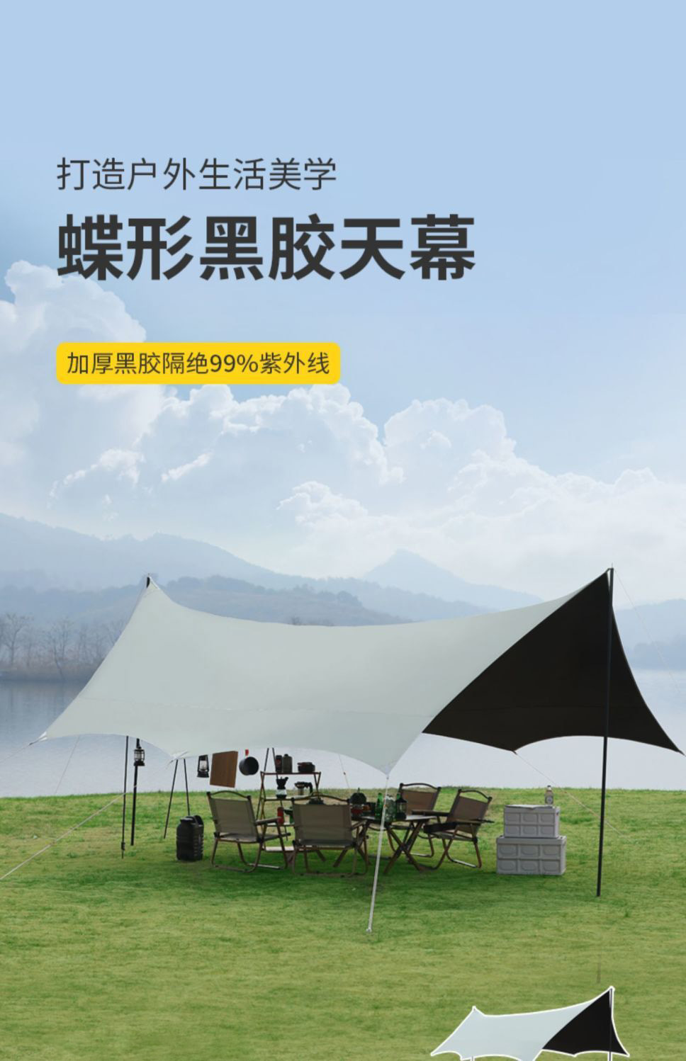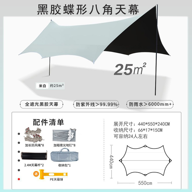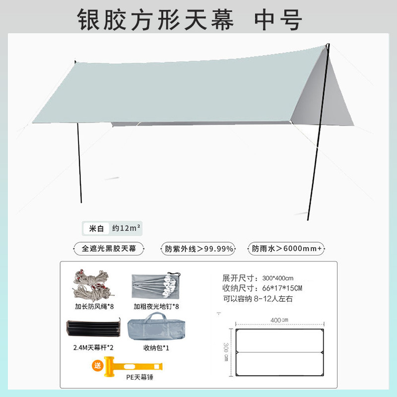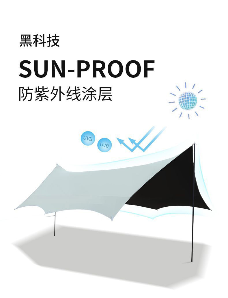 검은 고무 야외 캐노피 천 텐트 기둥 자외선 차단제 야외 캠핑 장비 방비 두꺼운 야외 캠핑 텐트 도매스토어 가기