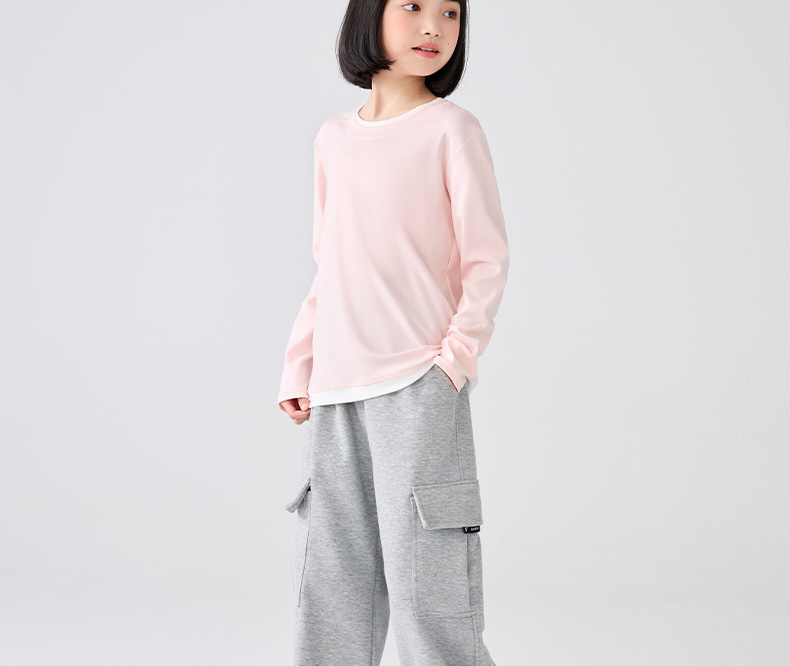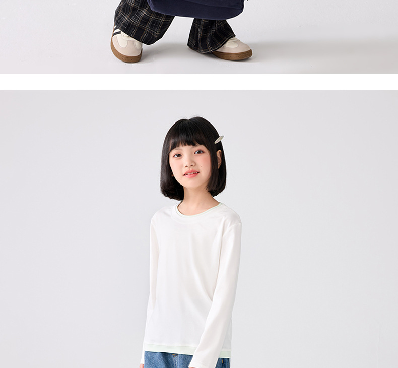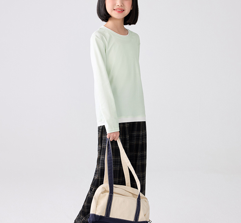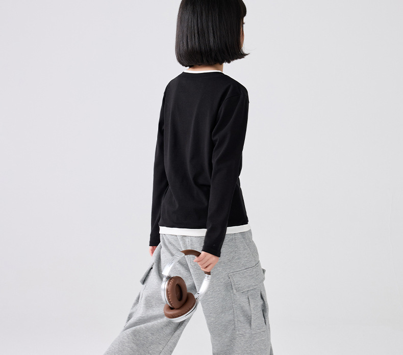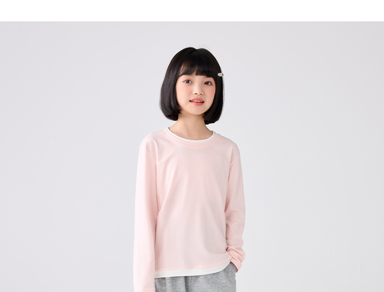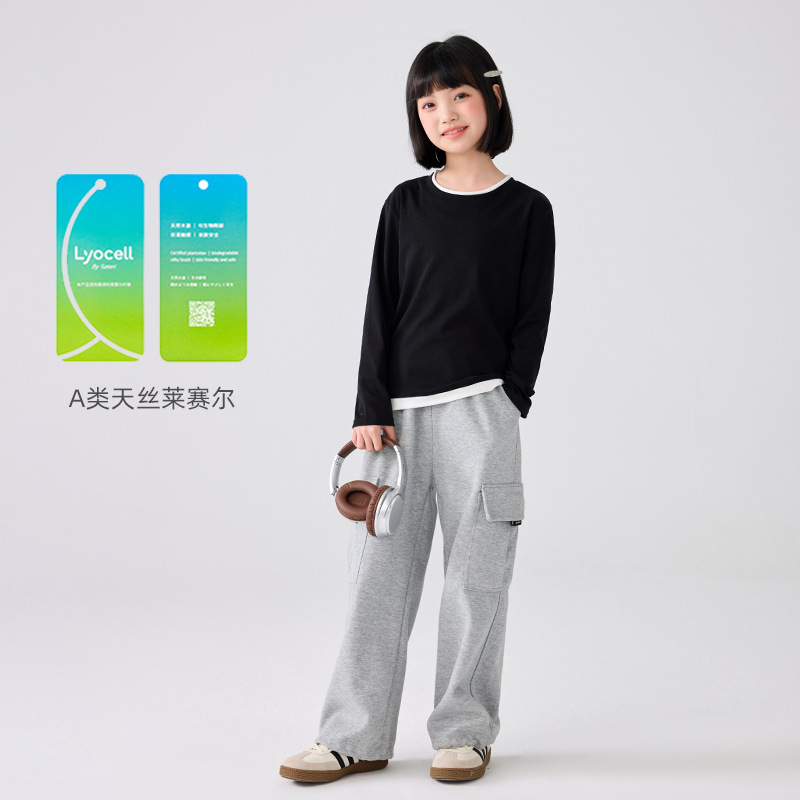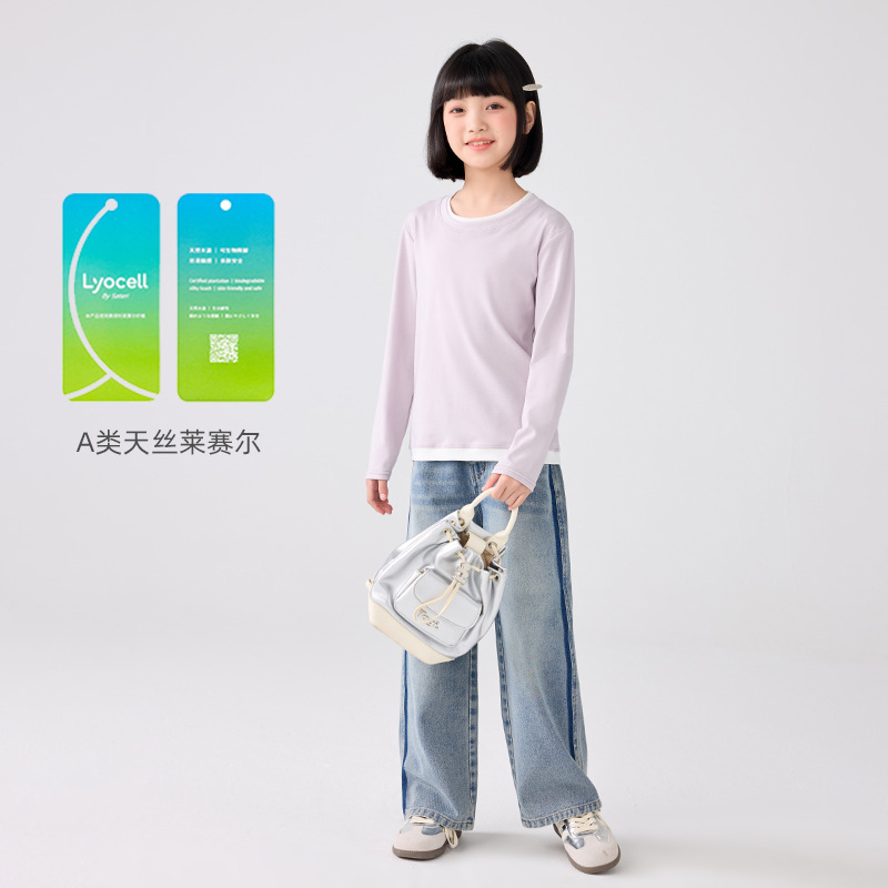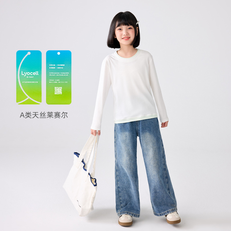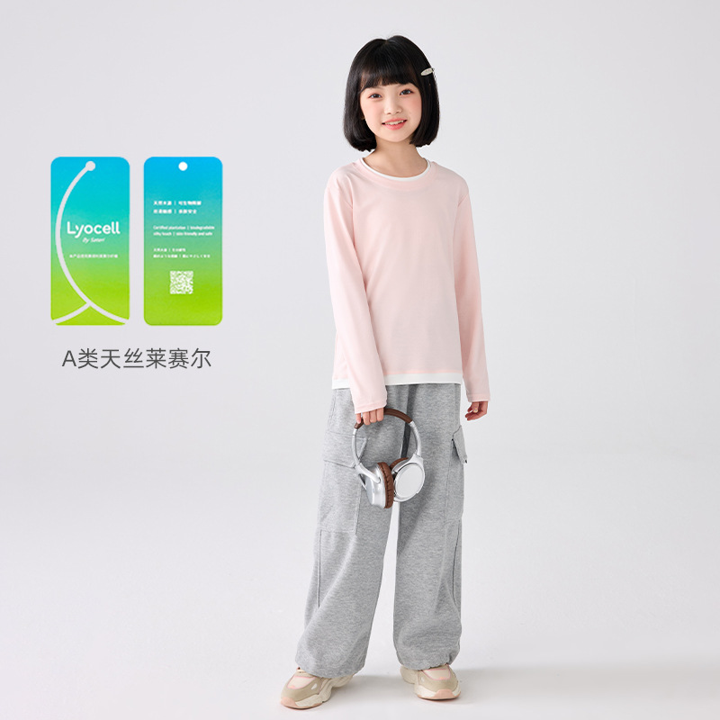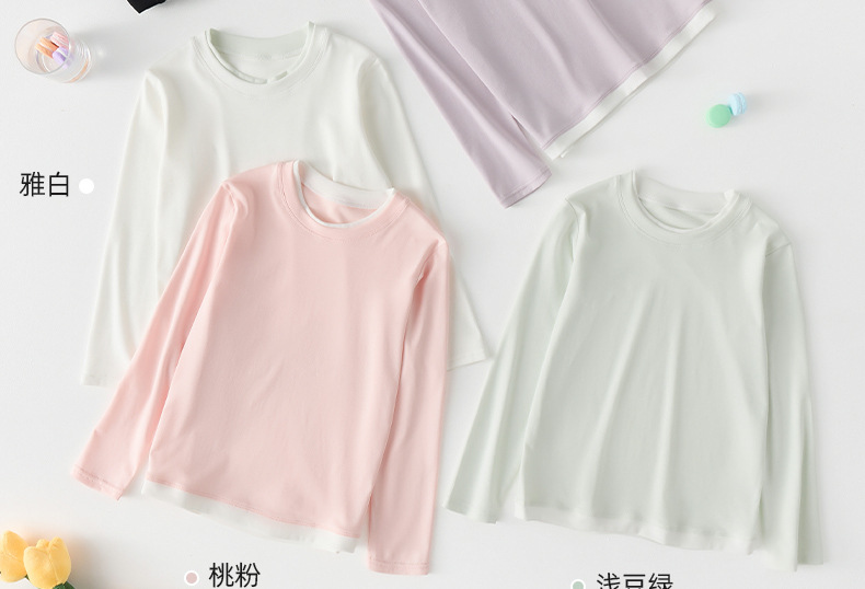 봄과 가을 소녀 텐셀 리오셀 가짜 투피스 바닥 셔츠 아동용 루즈 탑 중대형 아동 여름 긴팔 티셔츠
