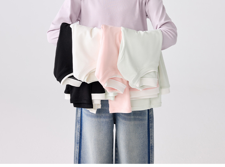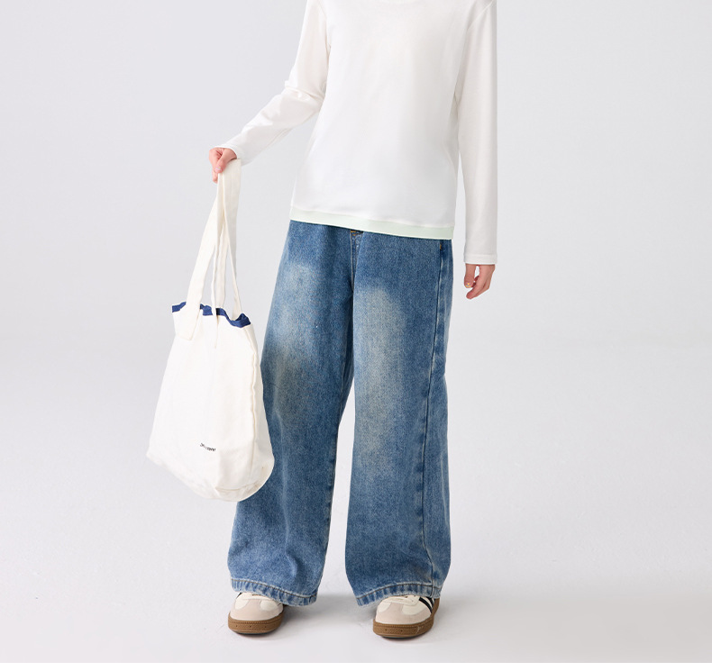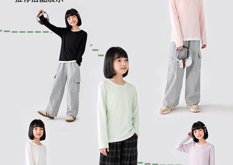 봄과 가을 소녀 텐셀 리오셀 가짜 투피스 바닥 셔츠 아동용 루즈 탑 중대형 아동 여름 긴팔 티셔츠스토어 가기