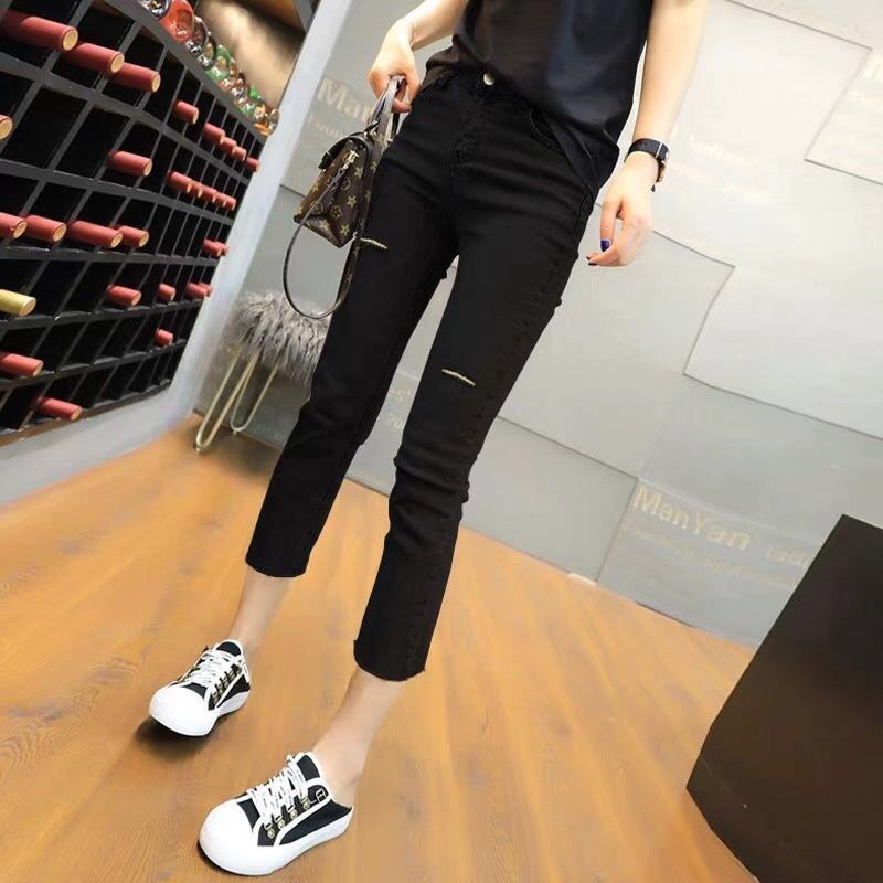검은 슬림 8 점 작은 직선 모방 데님 작은 검은 바지 단단한 스트레치 파이프 레깅스 여성의 가을스토어 가기