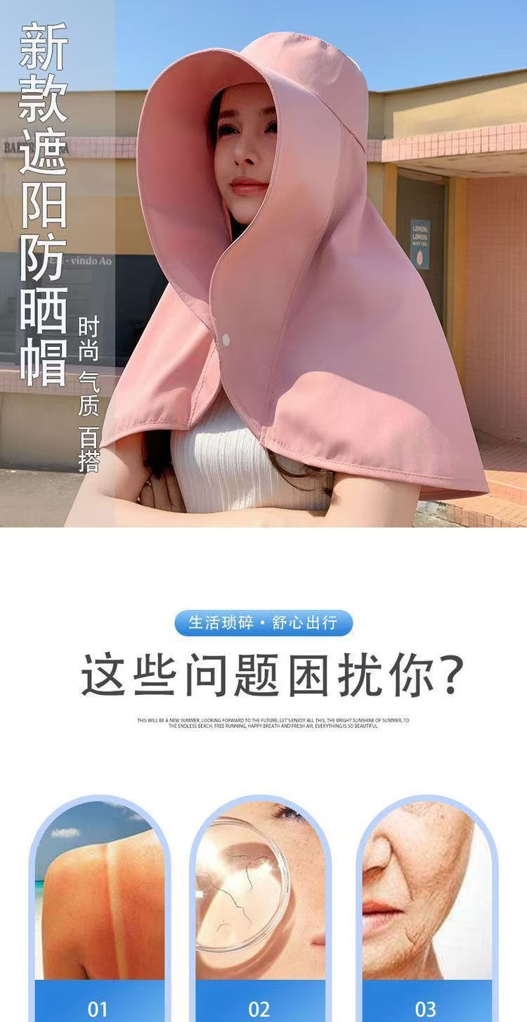 풀 페이스 썬 보호 빅 햇 브림 목도리 태양 모자 여성 목 보호 통합 안티 UV 얼굴 덮고있는 어부 모자스토어 가기