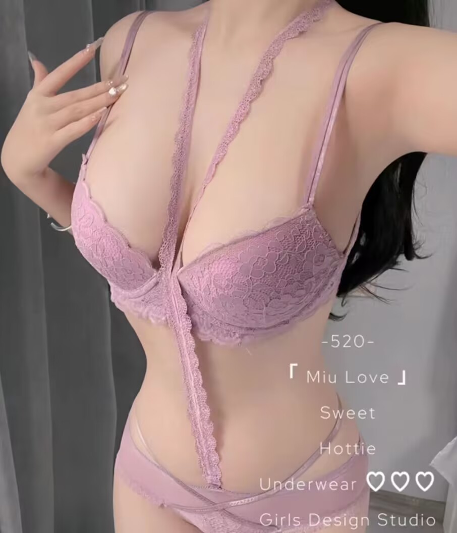 보라색 레이스 순수한 목 섹시한 브래지어 세트 심장 편안한 작은 가슴 큰 속옷스토어 가기