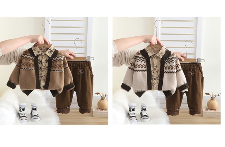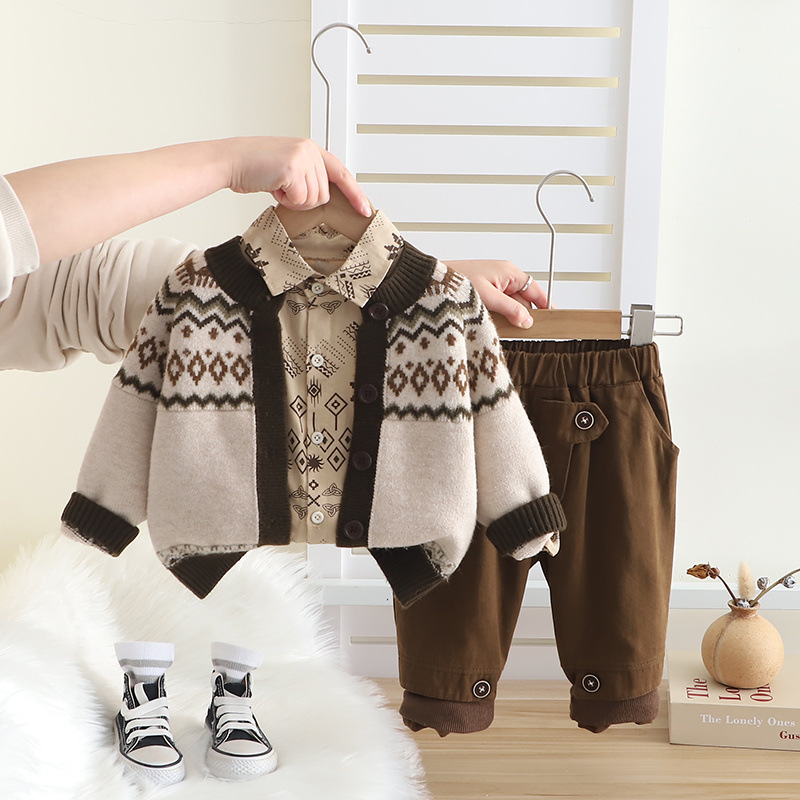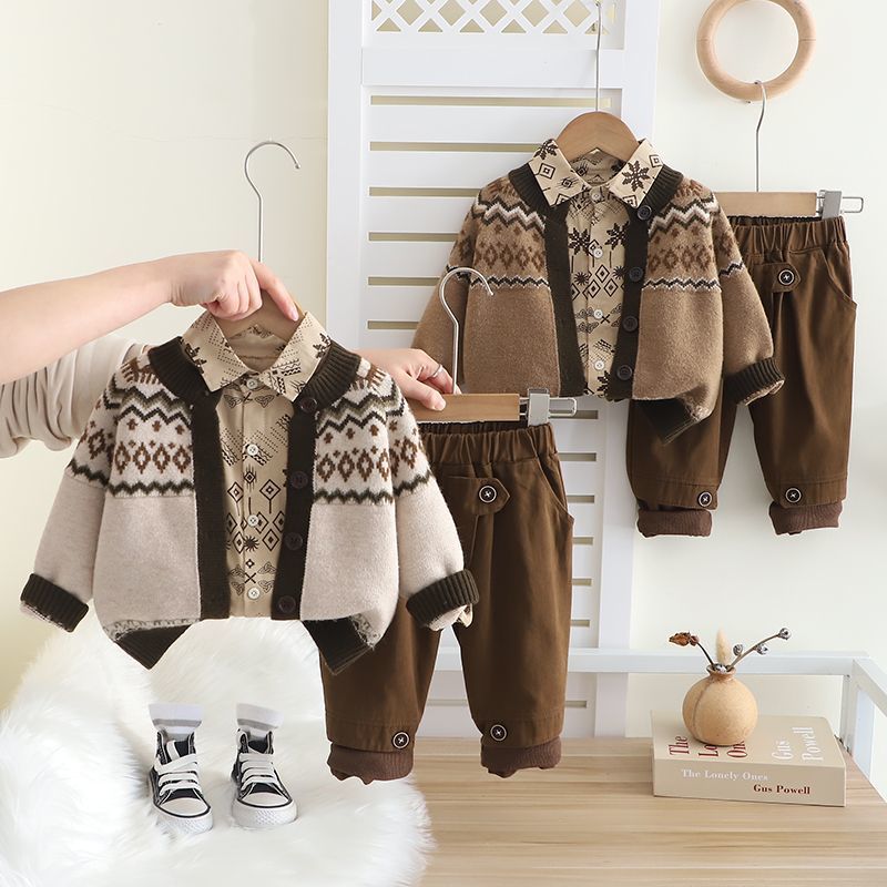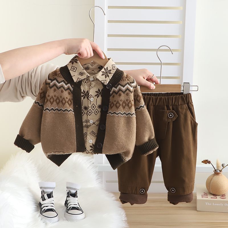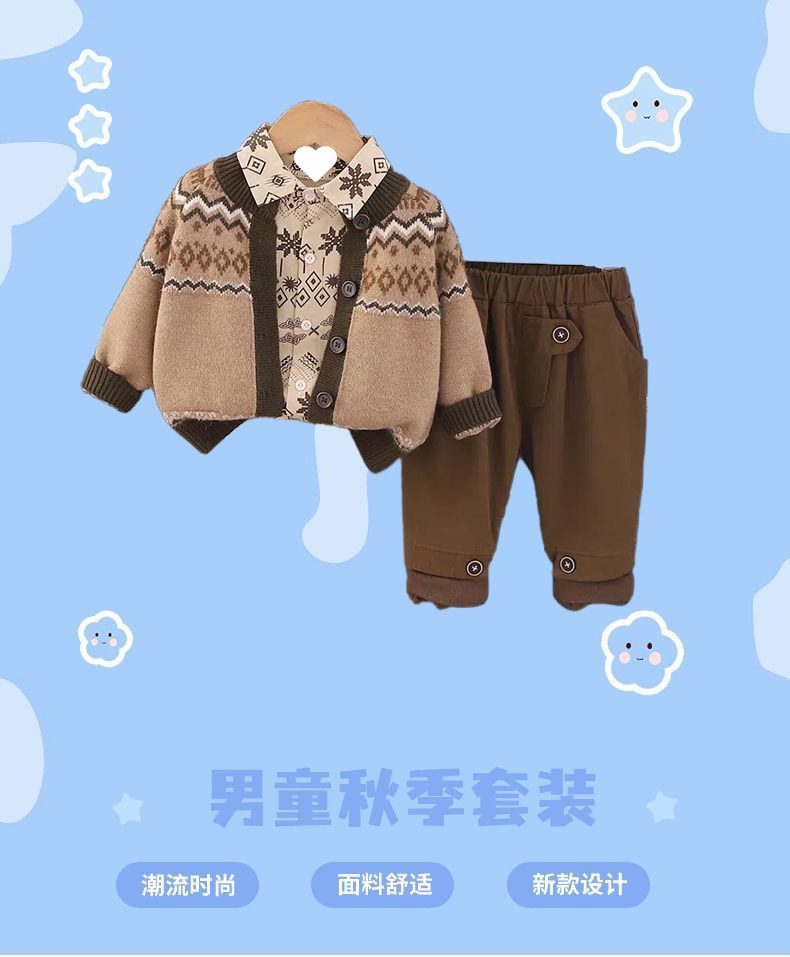 소년의 봄과 가을 세트 새로운 서양식 어린이 봄 카디건 스웨터 소년 아기 긴 소매 3 피스 세트