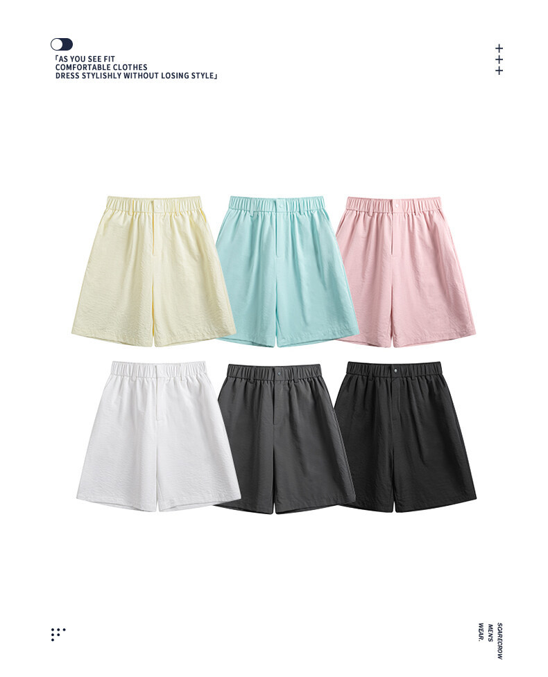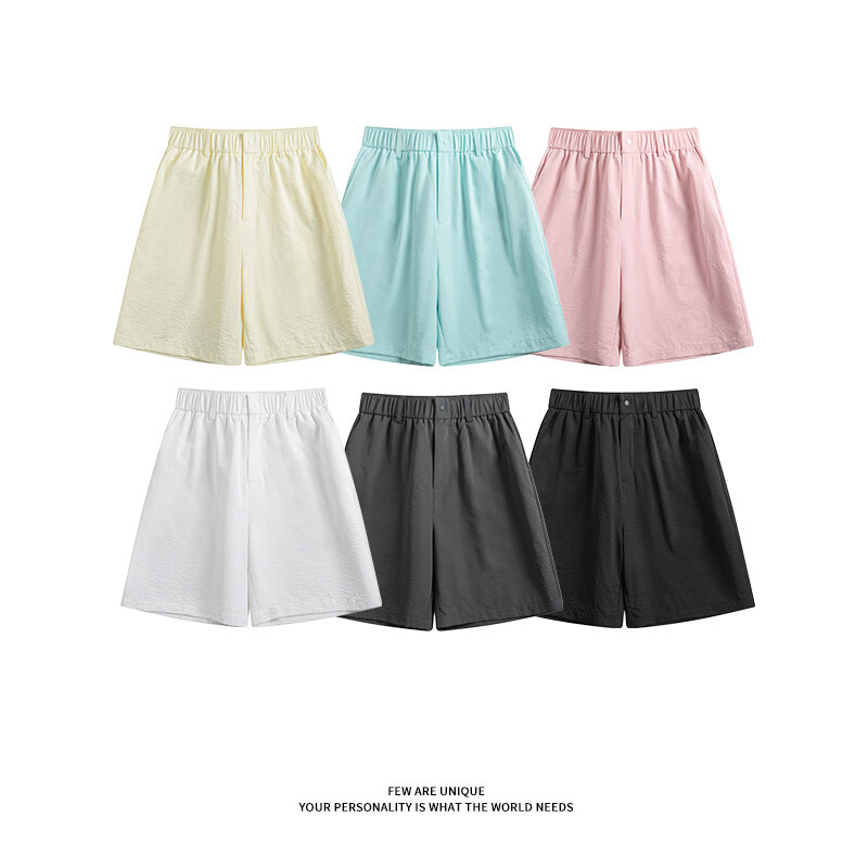 2025 여름 새로운 남성 단색 단순 느슨한 5 점 바지 플러스 사이즈 패션 캐주얼 스포츠 비치 스트레이트 바지스토어 가기