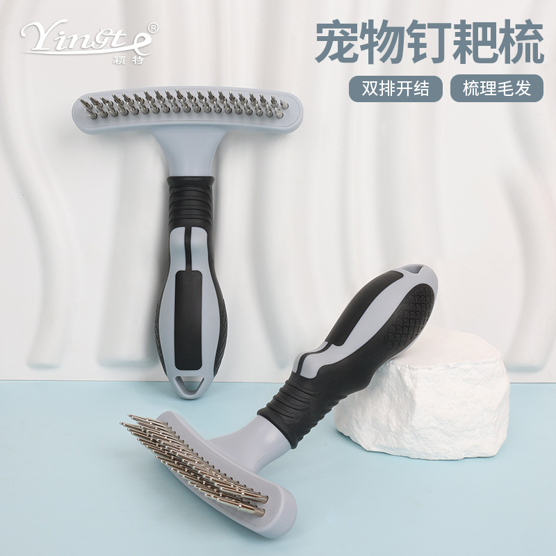애완 동물 용품 애완 동물 레이크 빗 더블 행 네일 레이크 빗 개 오픈 매듭 헤어 브러쉬 뷰티 레이크 빗