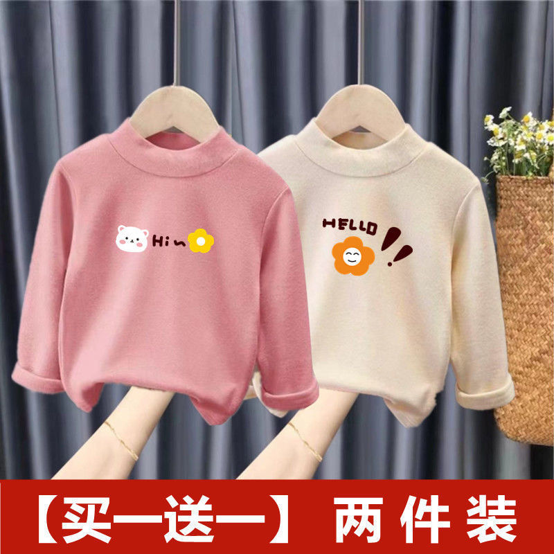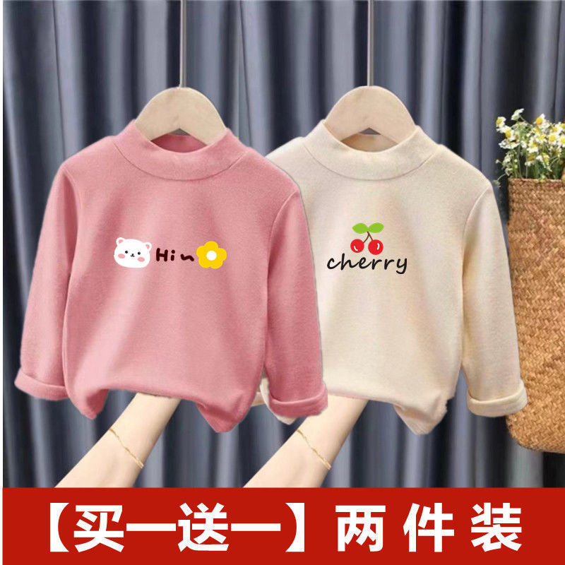 어린이 벨벳 세미 하이 칼라 베이비베이스 셔츠 2021 봄, 가을, 겨울 따뜻한 남자와 여자를위한 긴팔 티셔츠스토어 가기