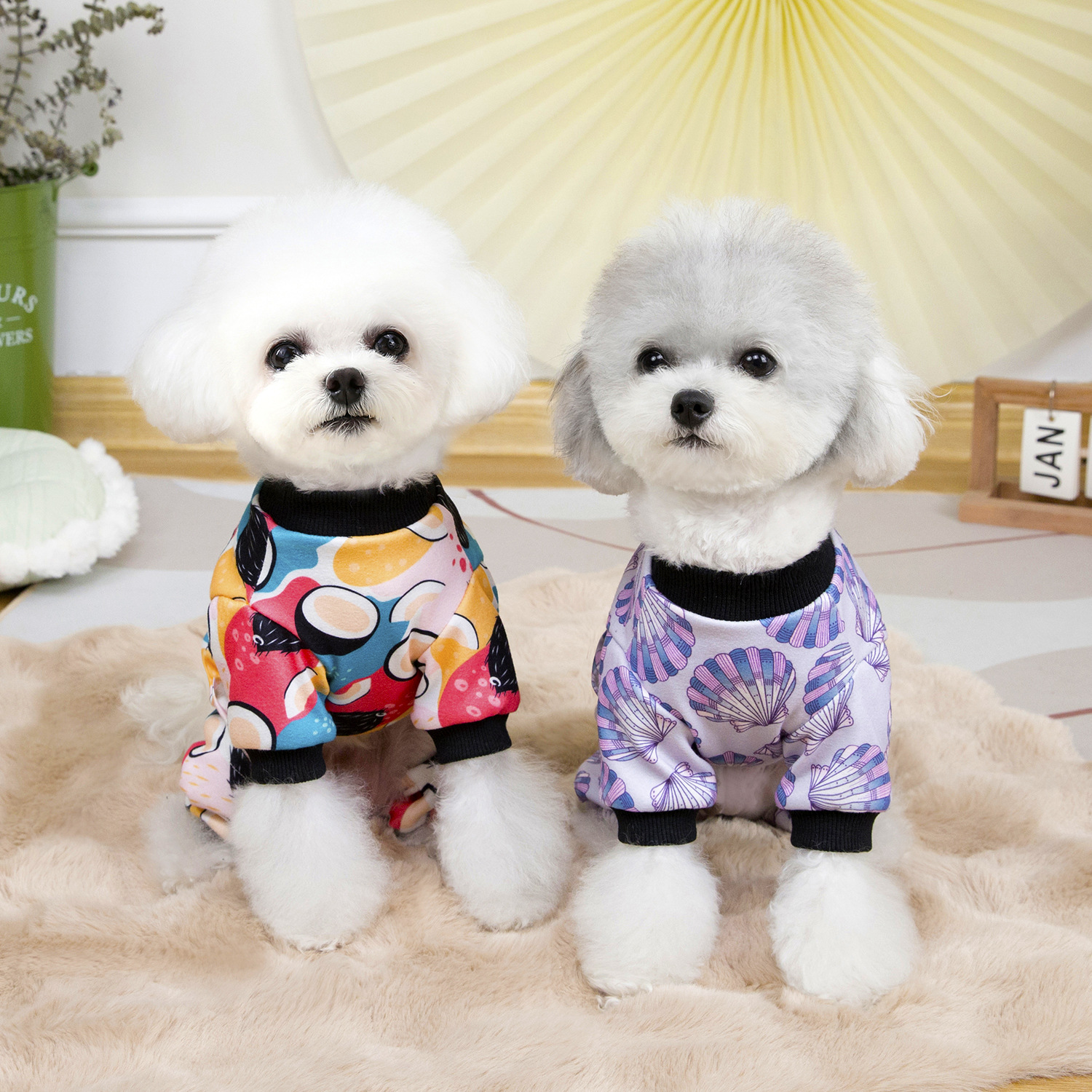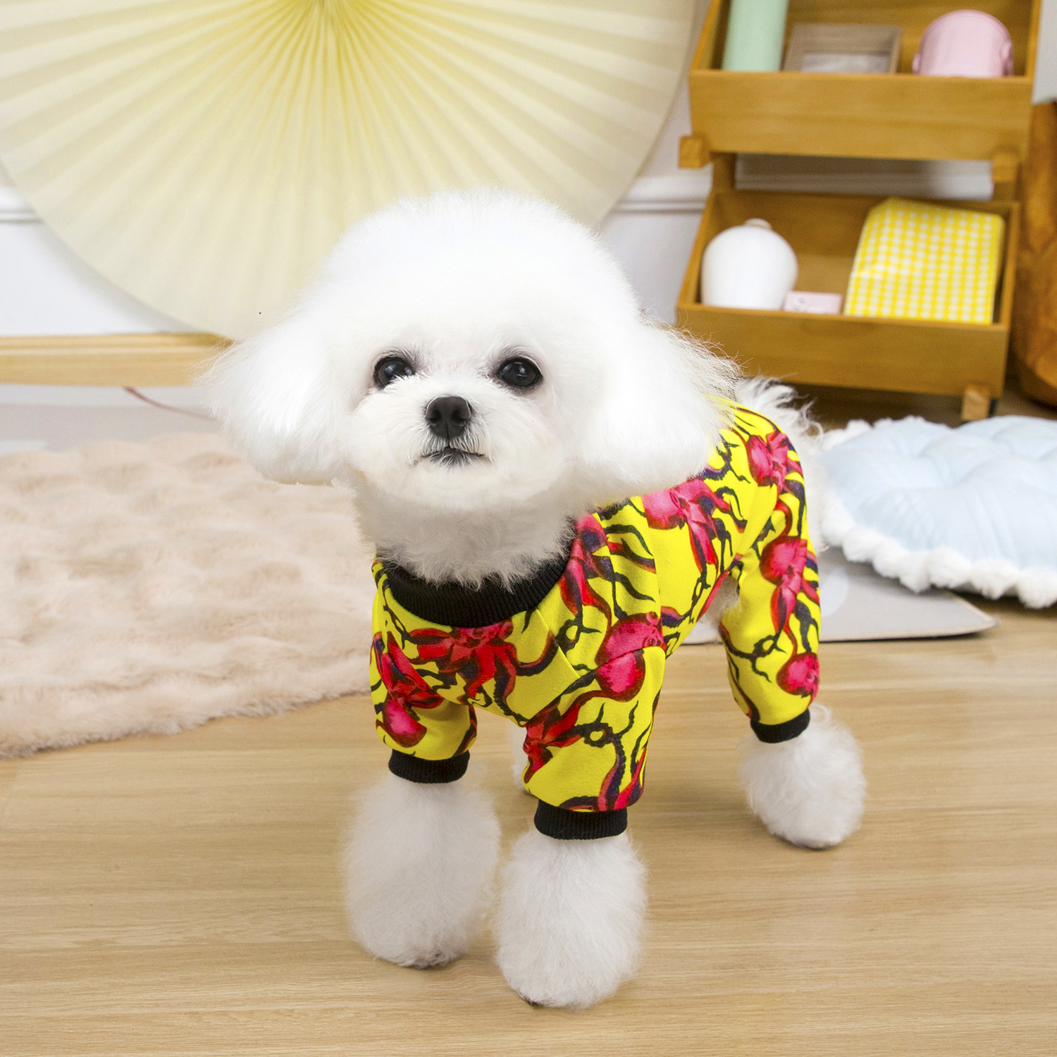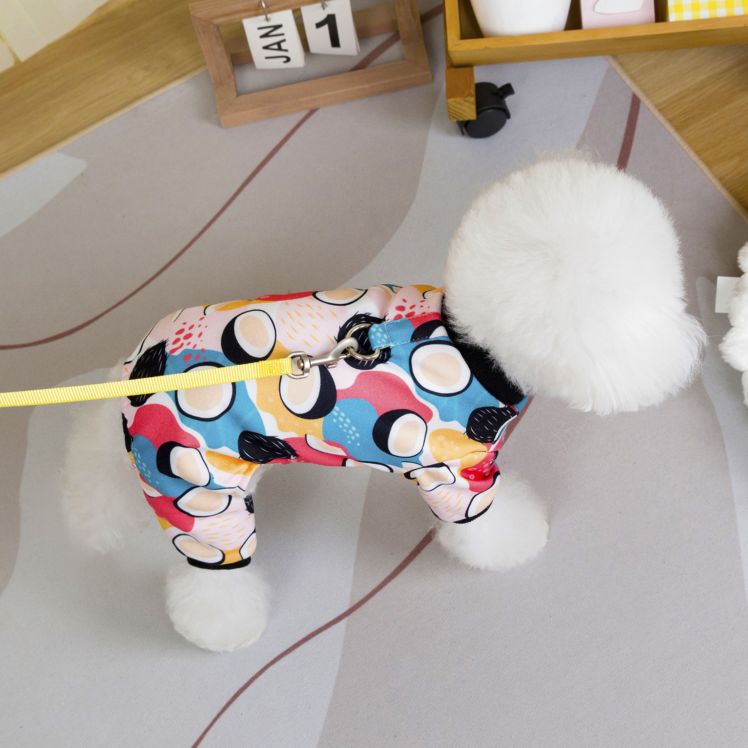 아마존 25 봄과 여름 새로운 애완 동물 네 다리 바지 만화 인쇄 고양이 개 홈 옷 견인 개 옷
