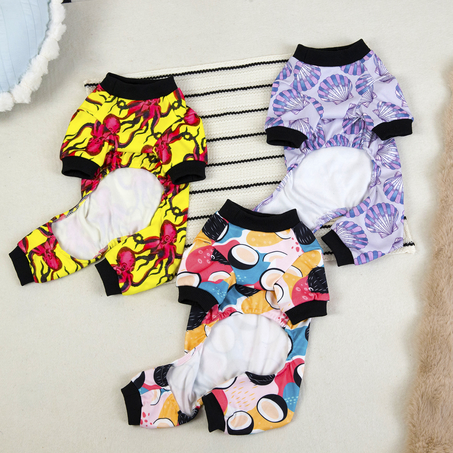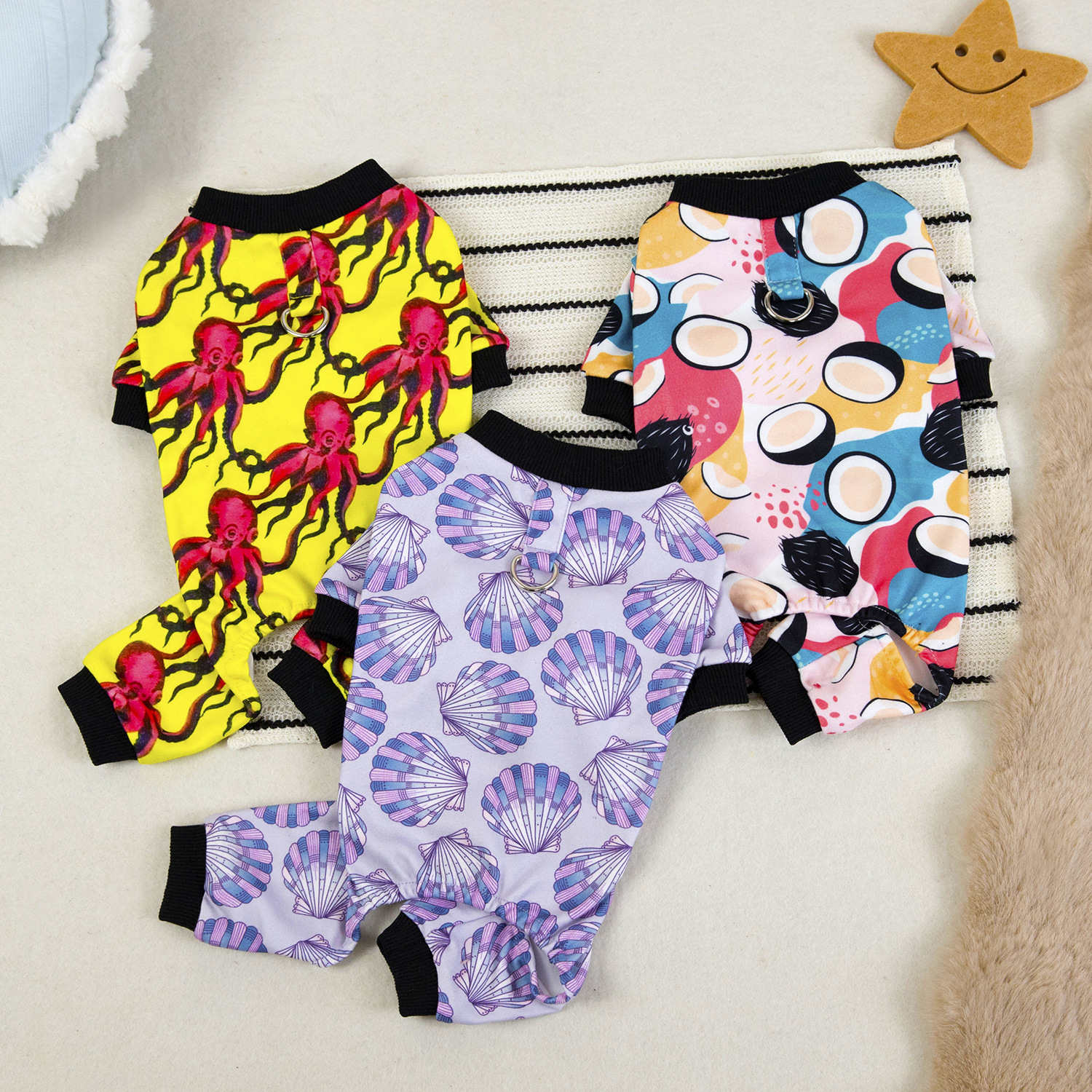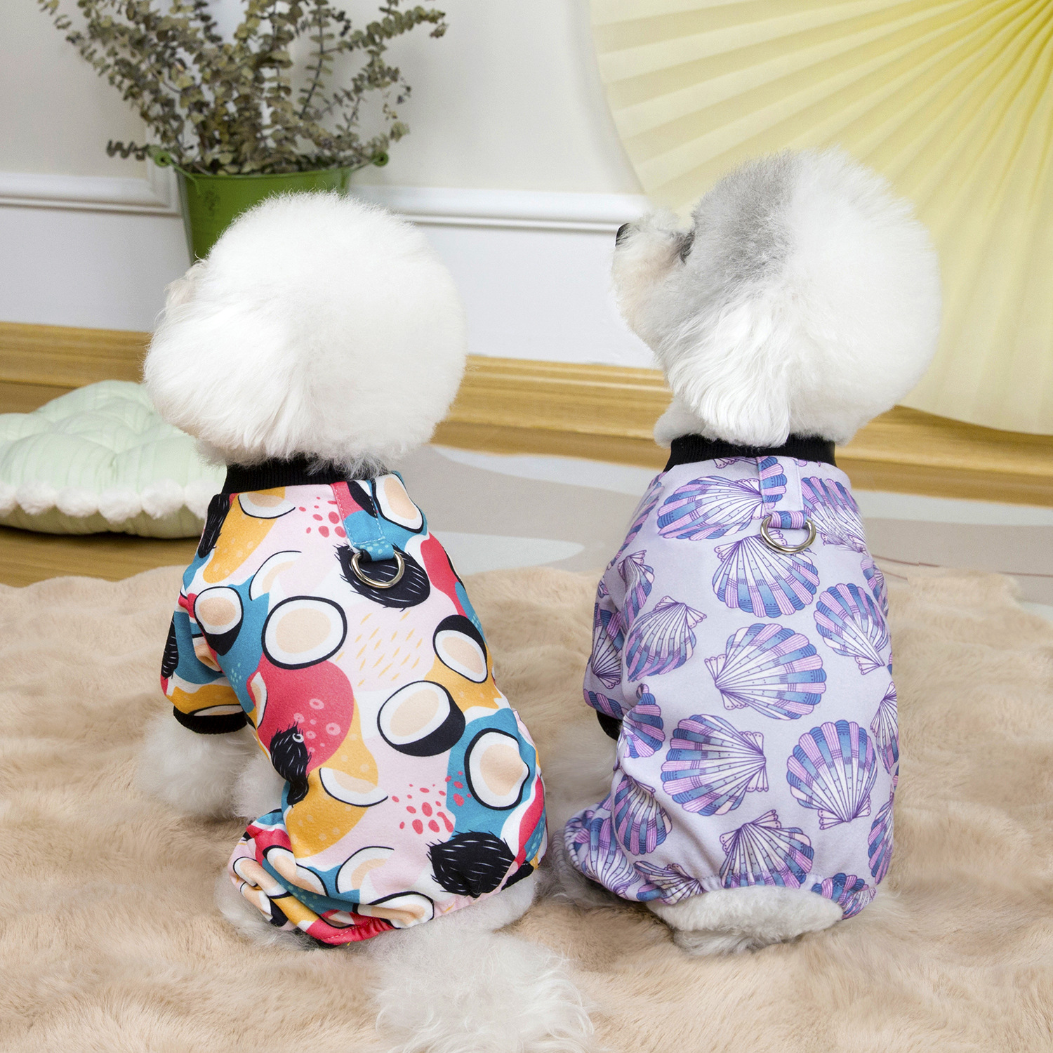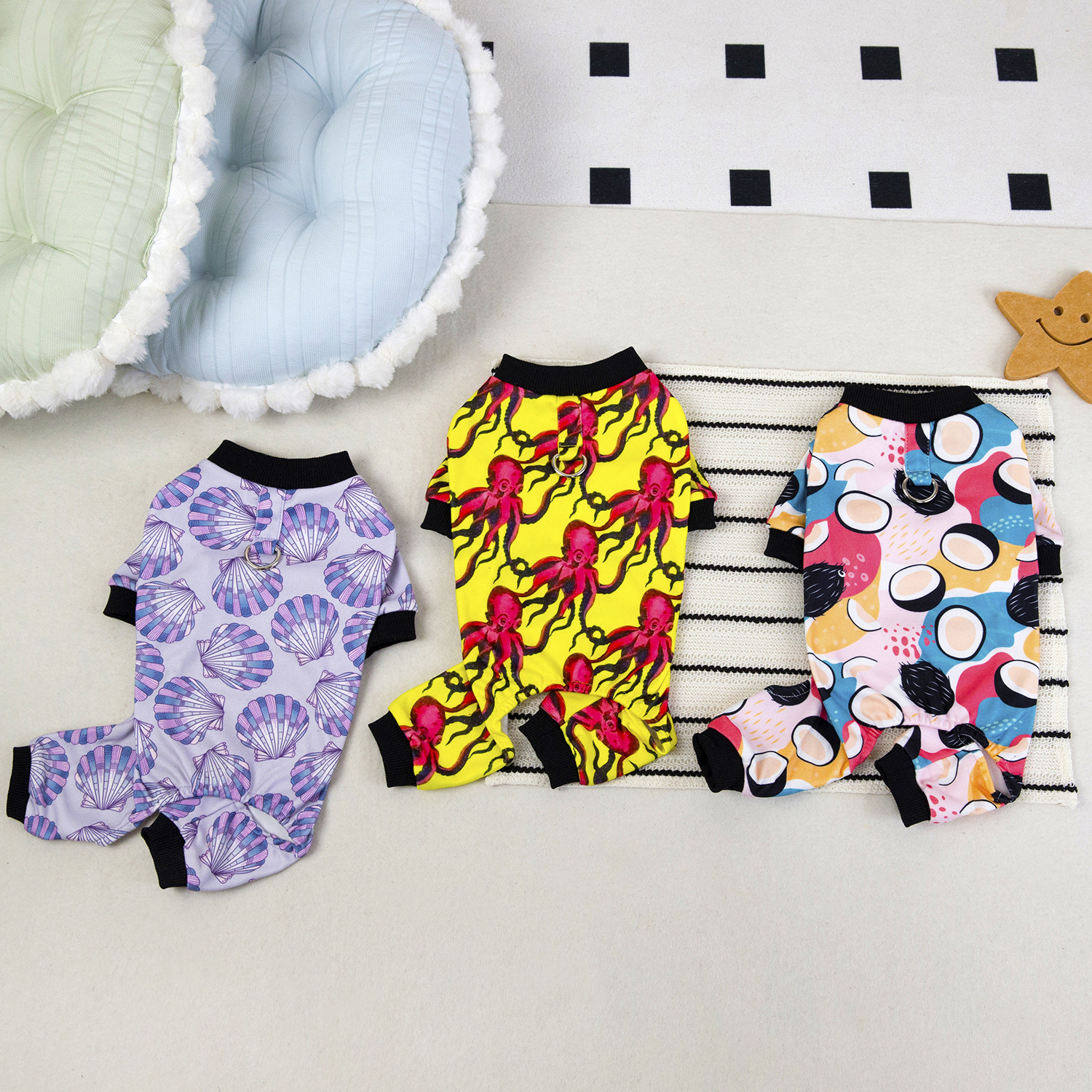 아마존 25 봄과 여름 새로운 애완 동물 네 다리 바지 만화 인쇄 고양이 개 홈 옷 견인 개 옷