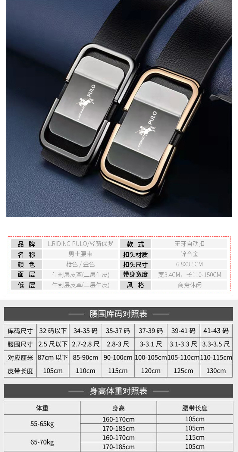 폴 정품 벨트 남성 정품 가죽 자동 버클 순수 카우 히데 벨트 청소년 중년 비즈니스 바지 캐주얼 한국 스타일스토어 가기