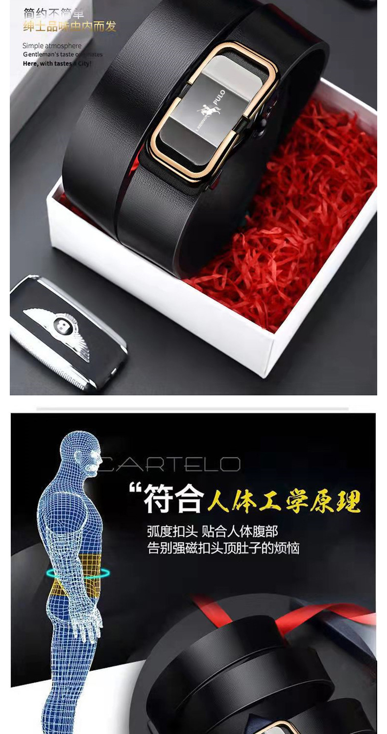 • 인기 있는 블랙 엣지 가죽 합금 버클 선물 상자