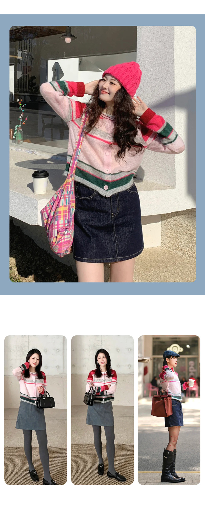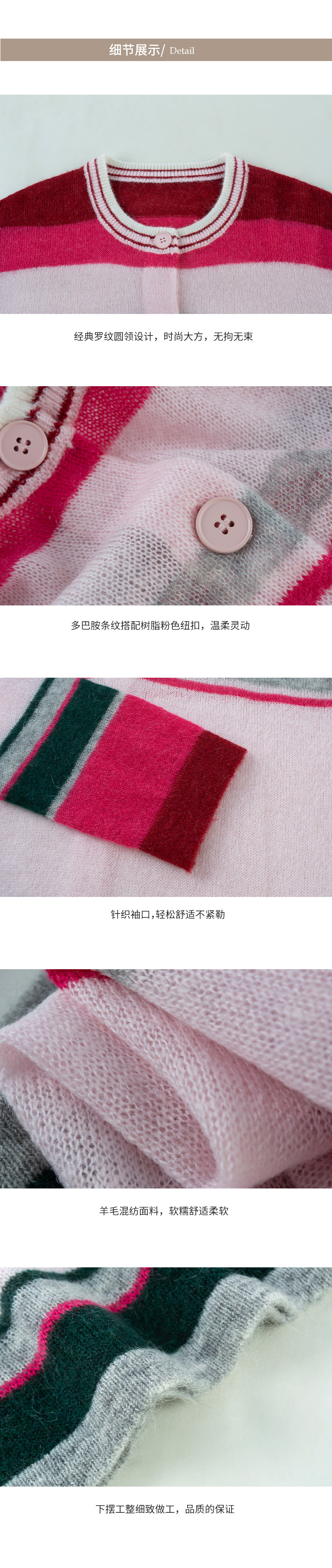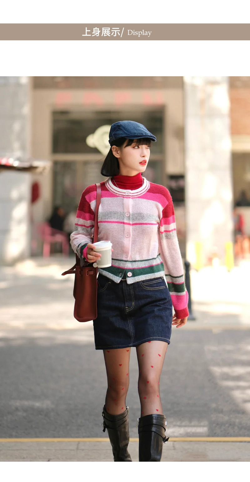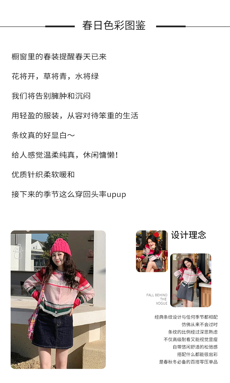 봄 2025 여성을위한 새로운 라운드 넥 카디건 탑 울 블렌드 도파민 다채로운 줄무늬 니트 스웨터스토어 가기