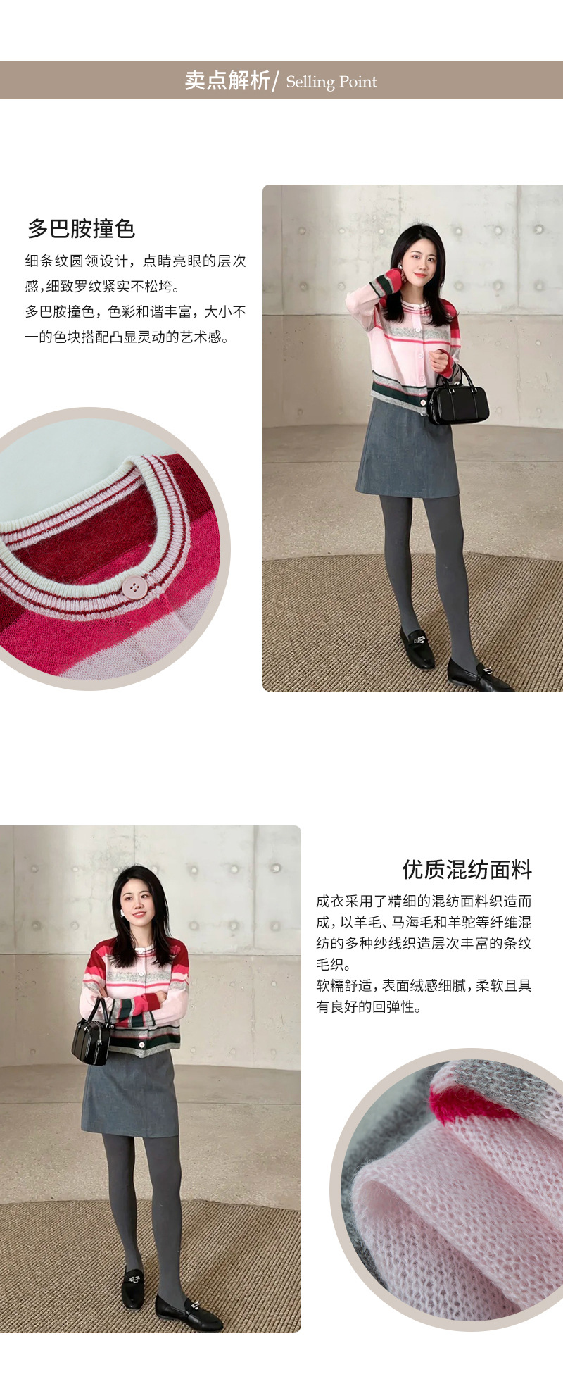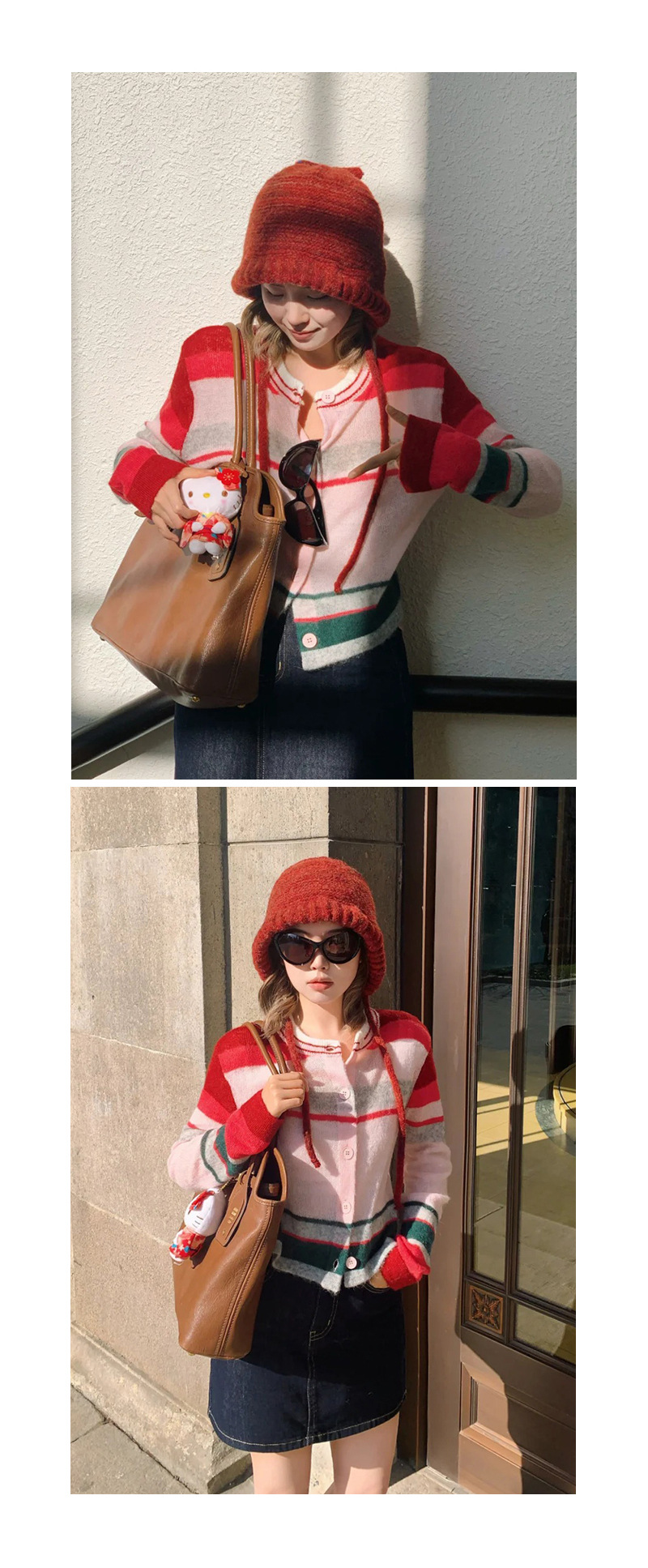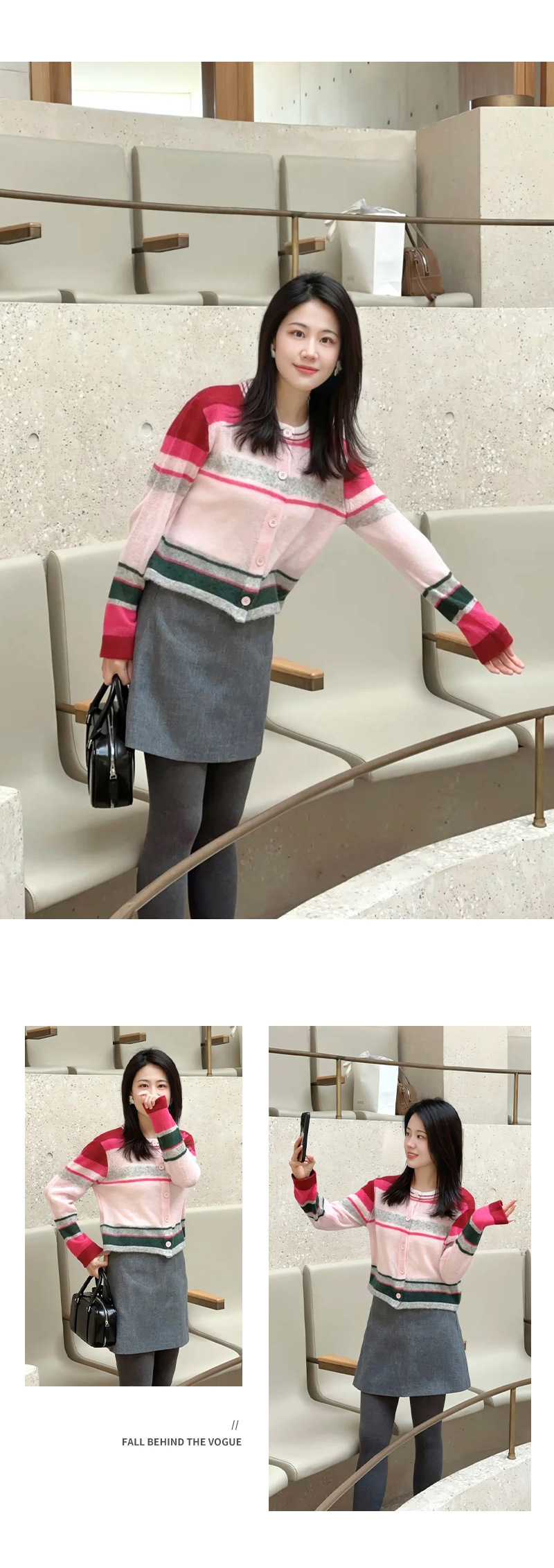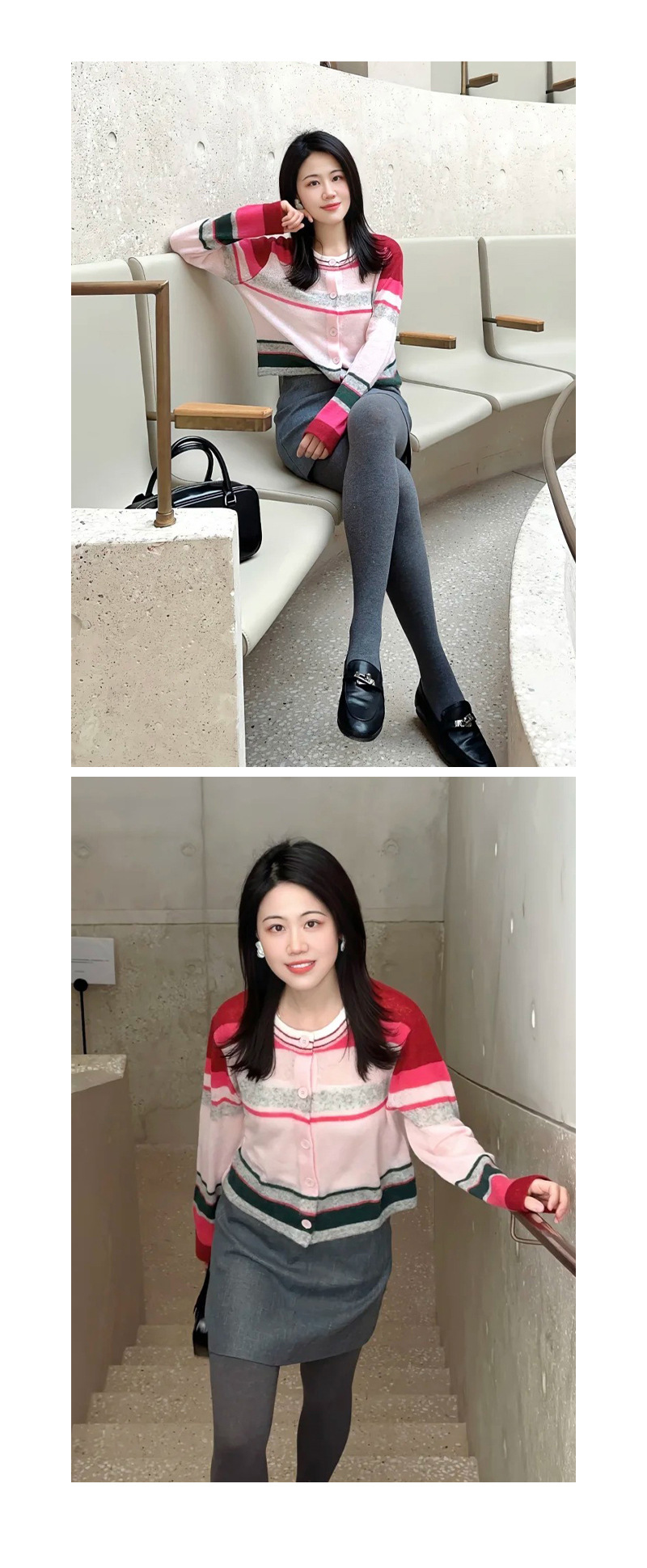 봄 2025 여성을위한 새로운 라운드 넥 카디건 탑 울 블렌드 도파민 다채로운 줄무늬 니트 스웨터스토어 가기