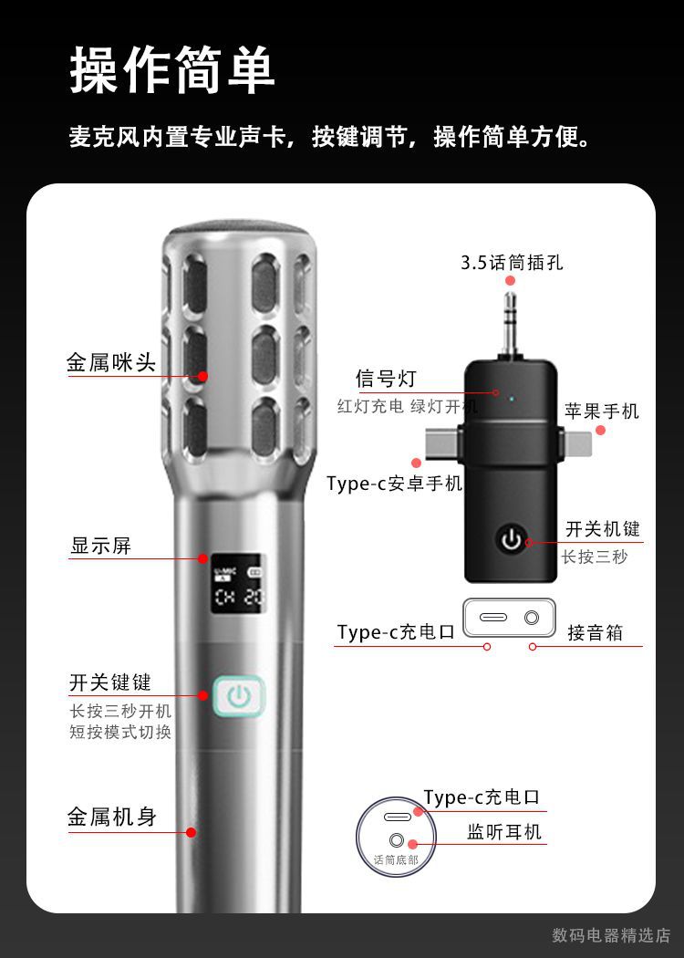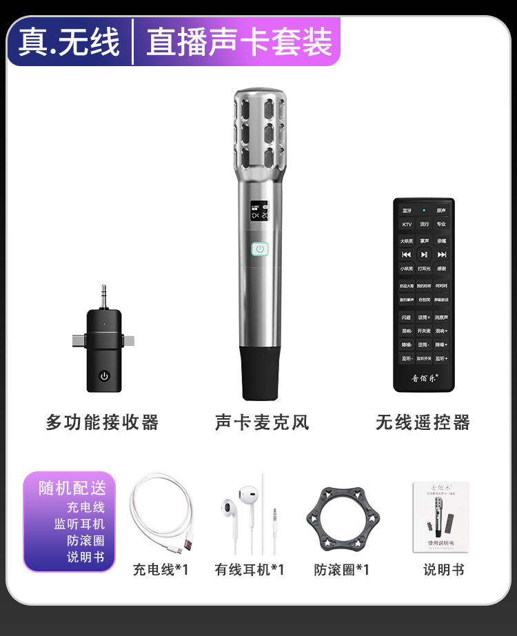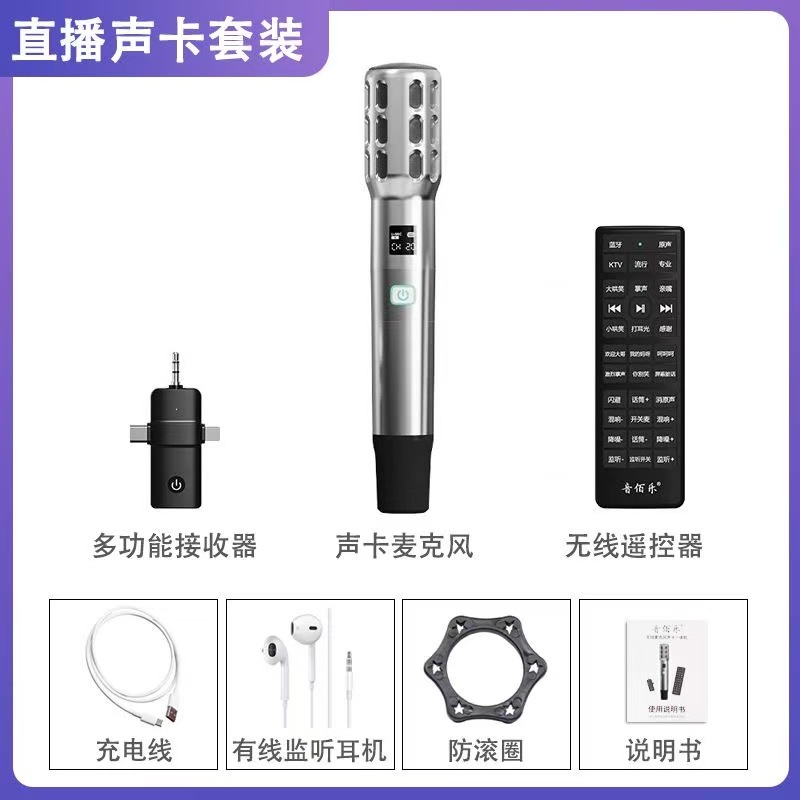 Yin Bai Le 새로운 마이크 사운드 카드 올인원 머신 1 드래그 2 더블 전문 야외 노래 라이브 방송 유니버설스토어 가기